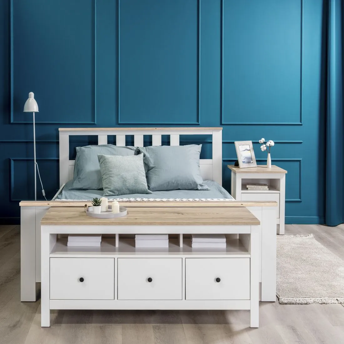 2.08.04.070.16 САГА кровать двойная 160х200 темно-бирюзовая/ясень