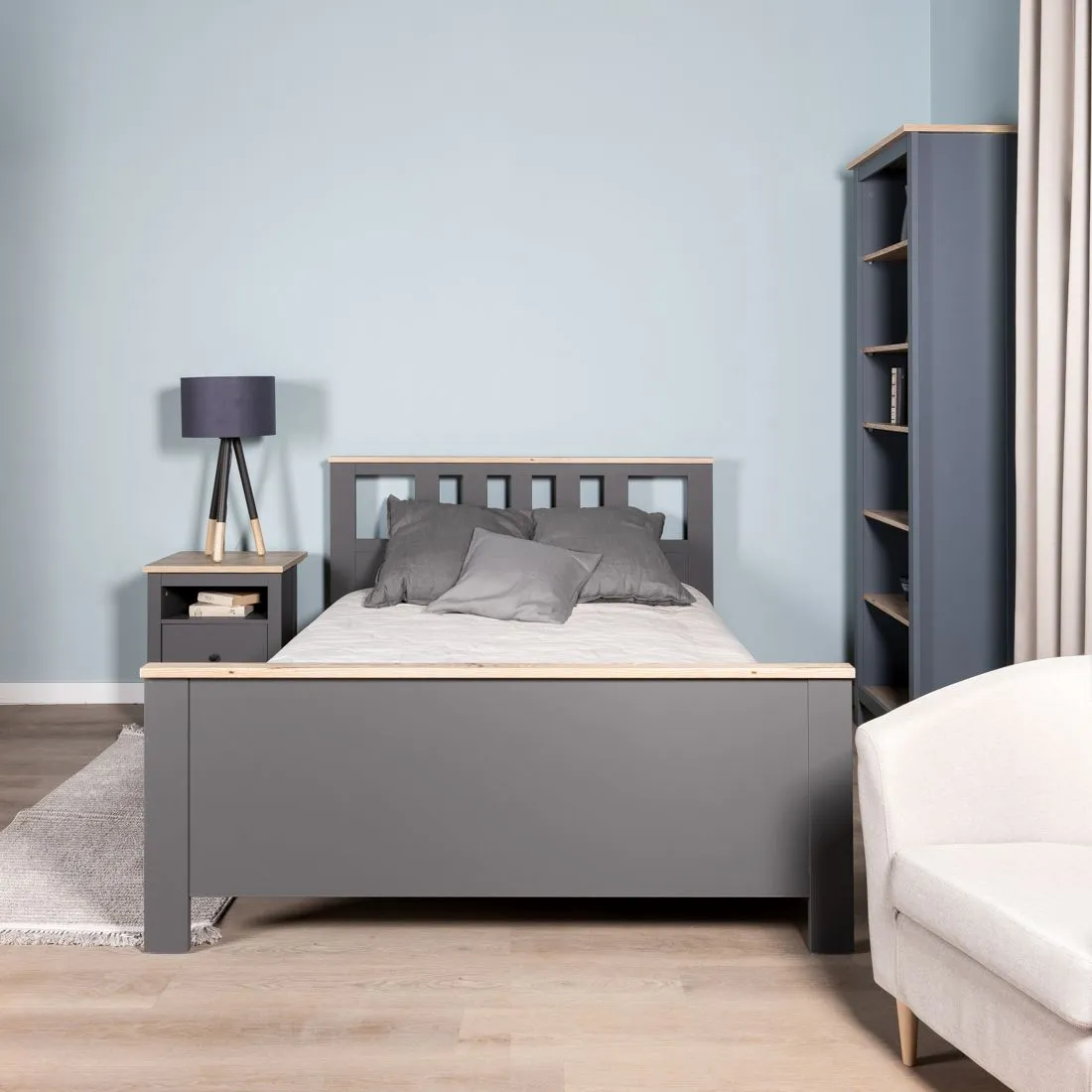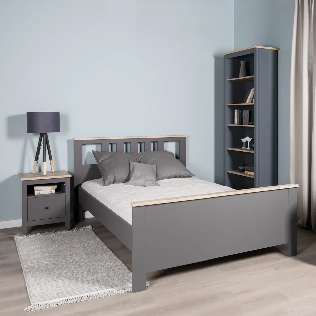 —2.08.04.060.15 САГА кровать двойная 140х200 серая/ясень