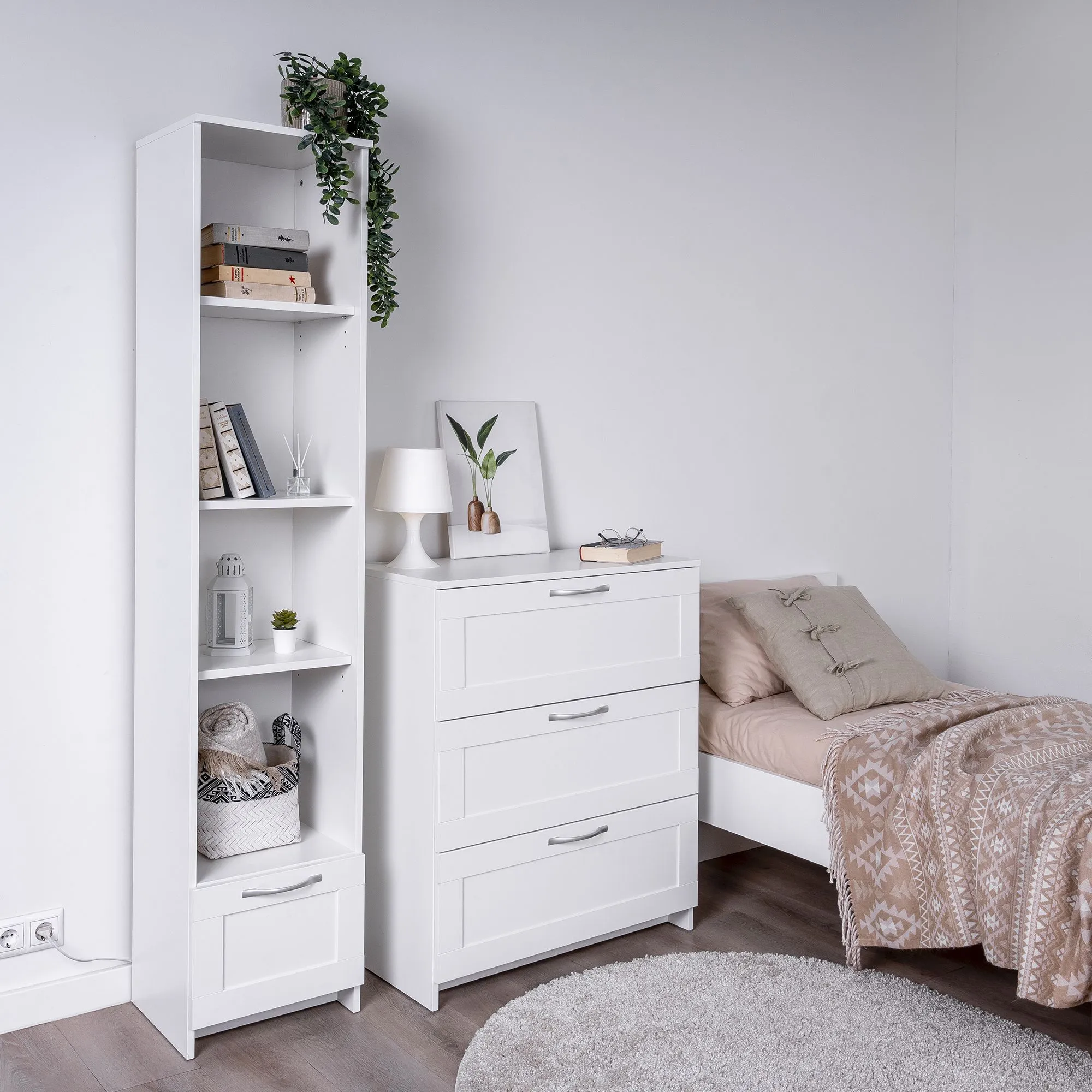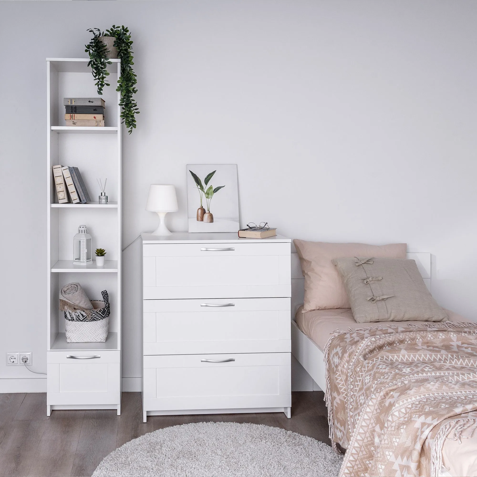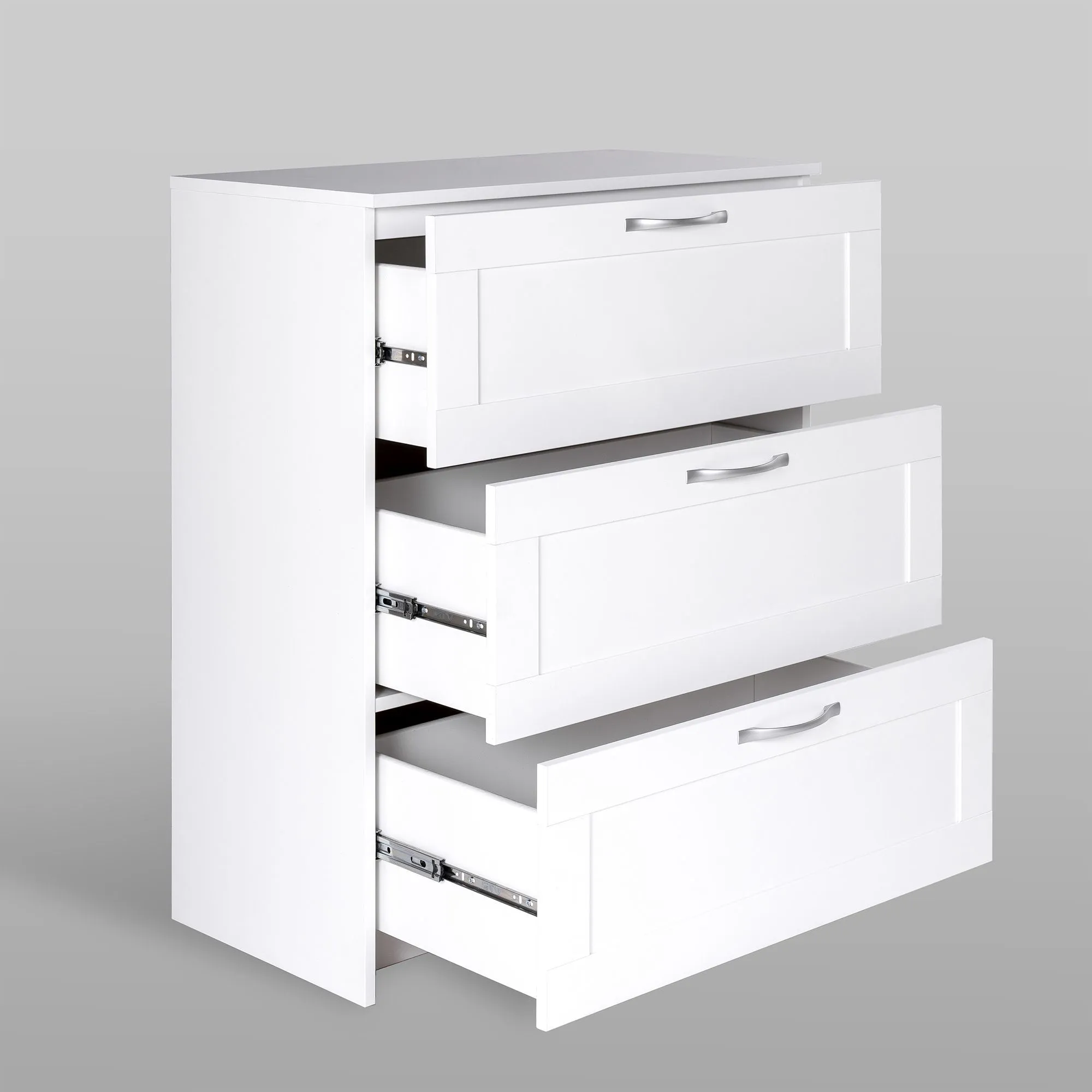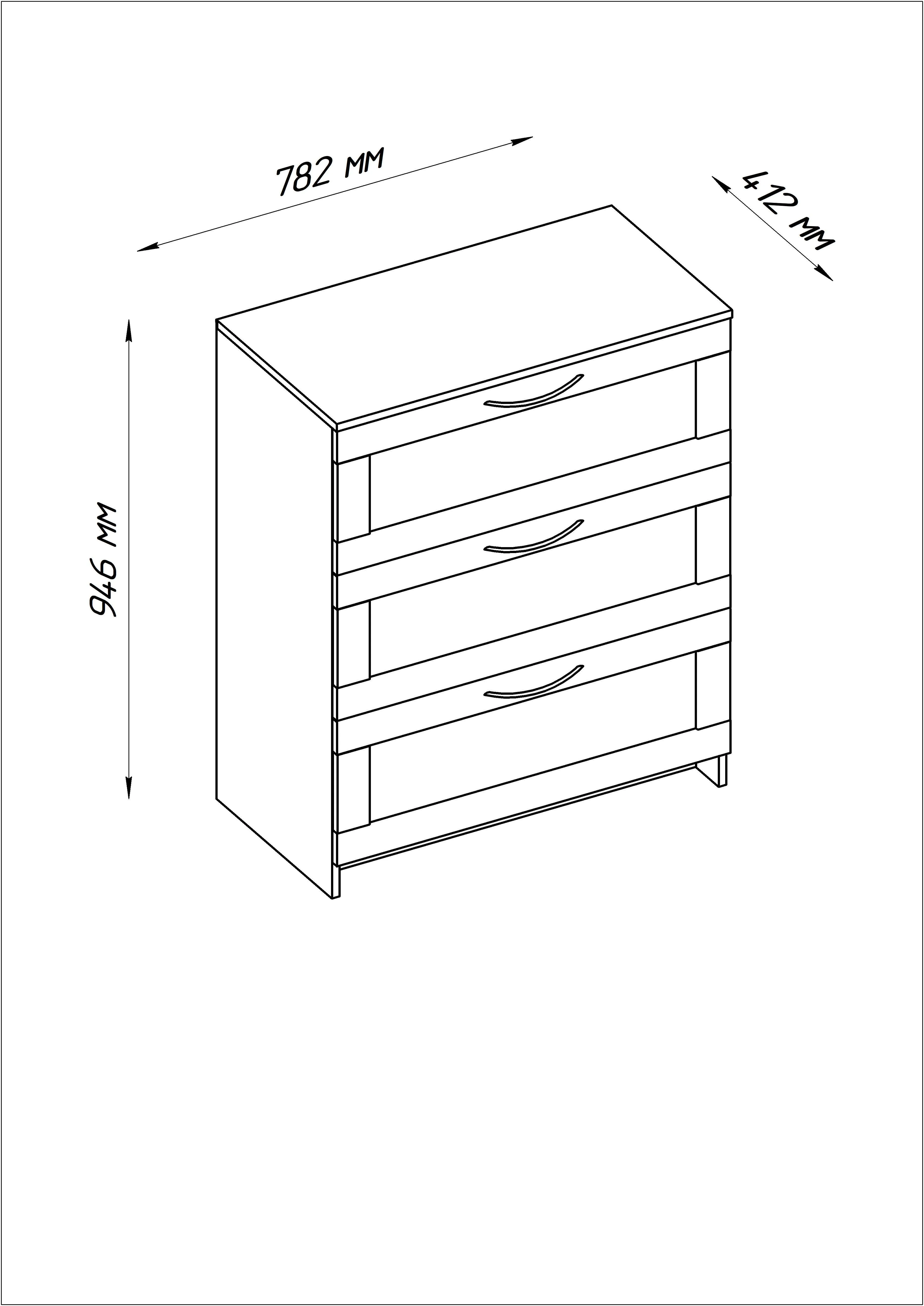 Комод СИРИУС с тремя наружными выдвижными ящиками, 782х412х946, цвет Белый. Изготовлен из кашированного ДСП толщиной 16 мм. Крепится к стене. Гарантийный срок для жилых помещений 24 месяца, для общественных помещений - 18 месяцев.