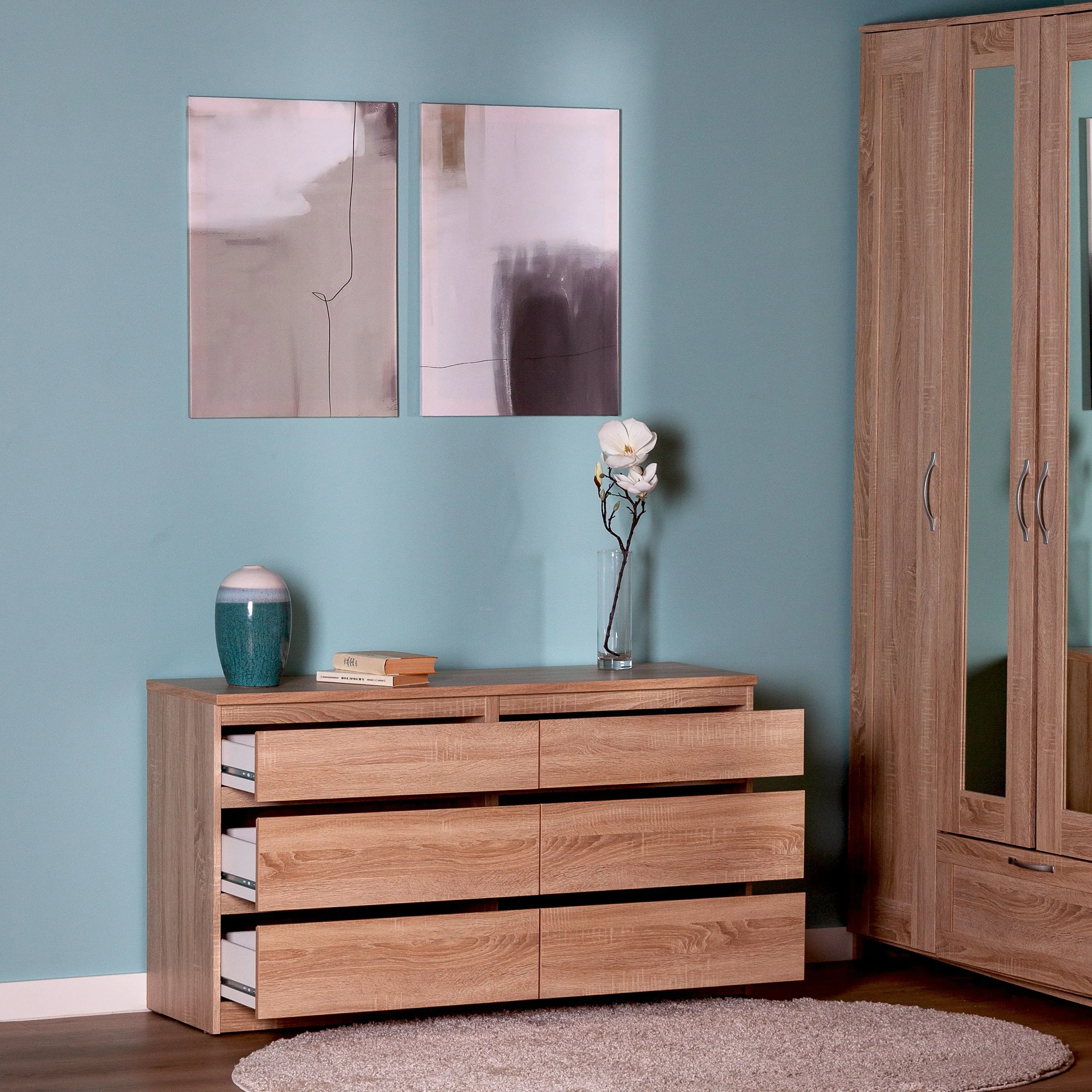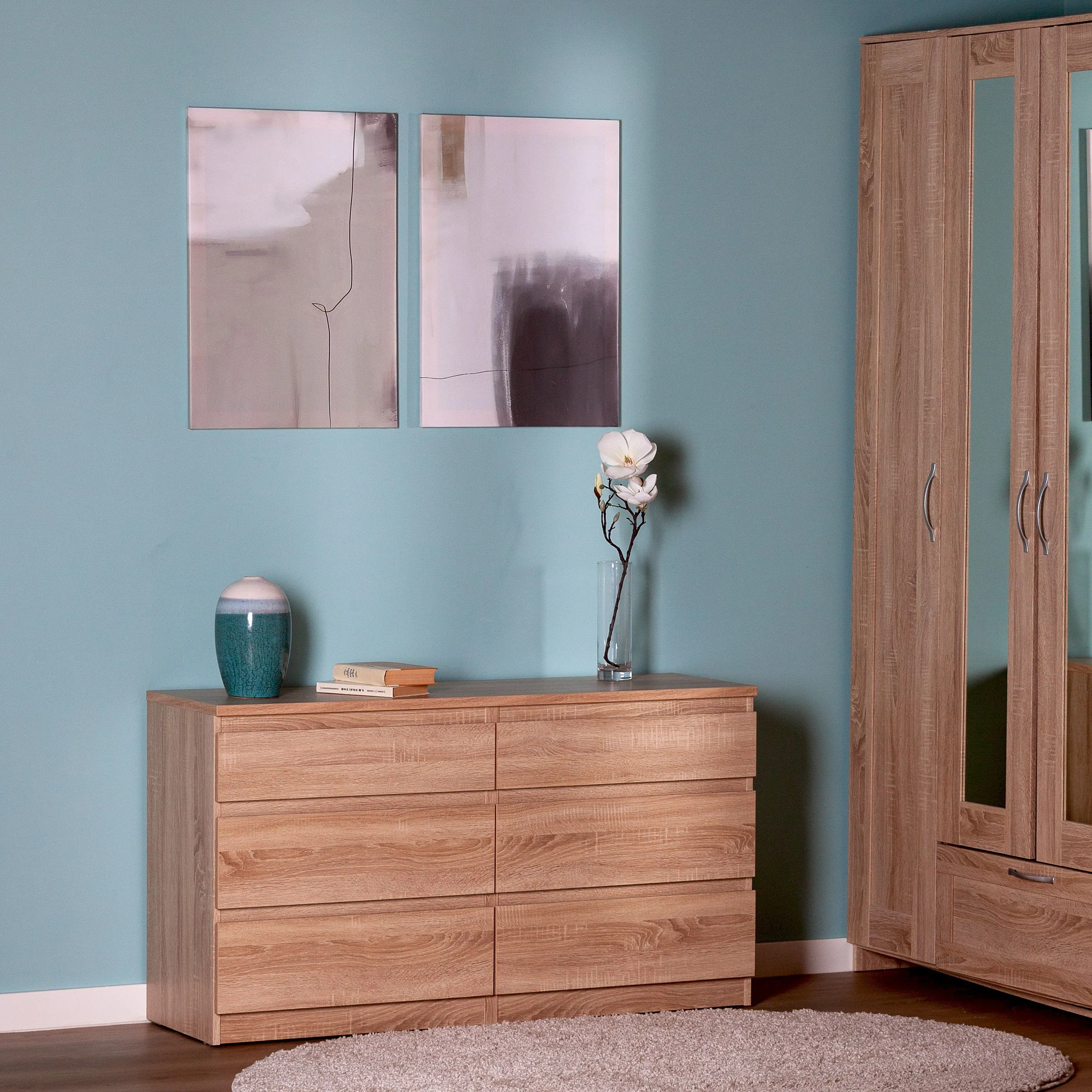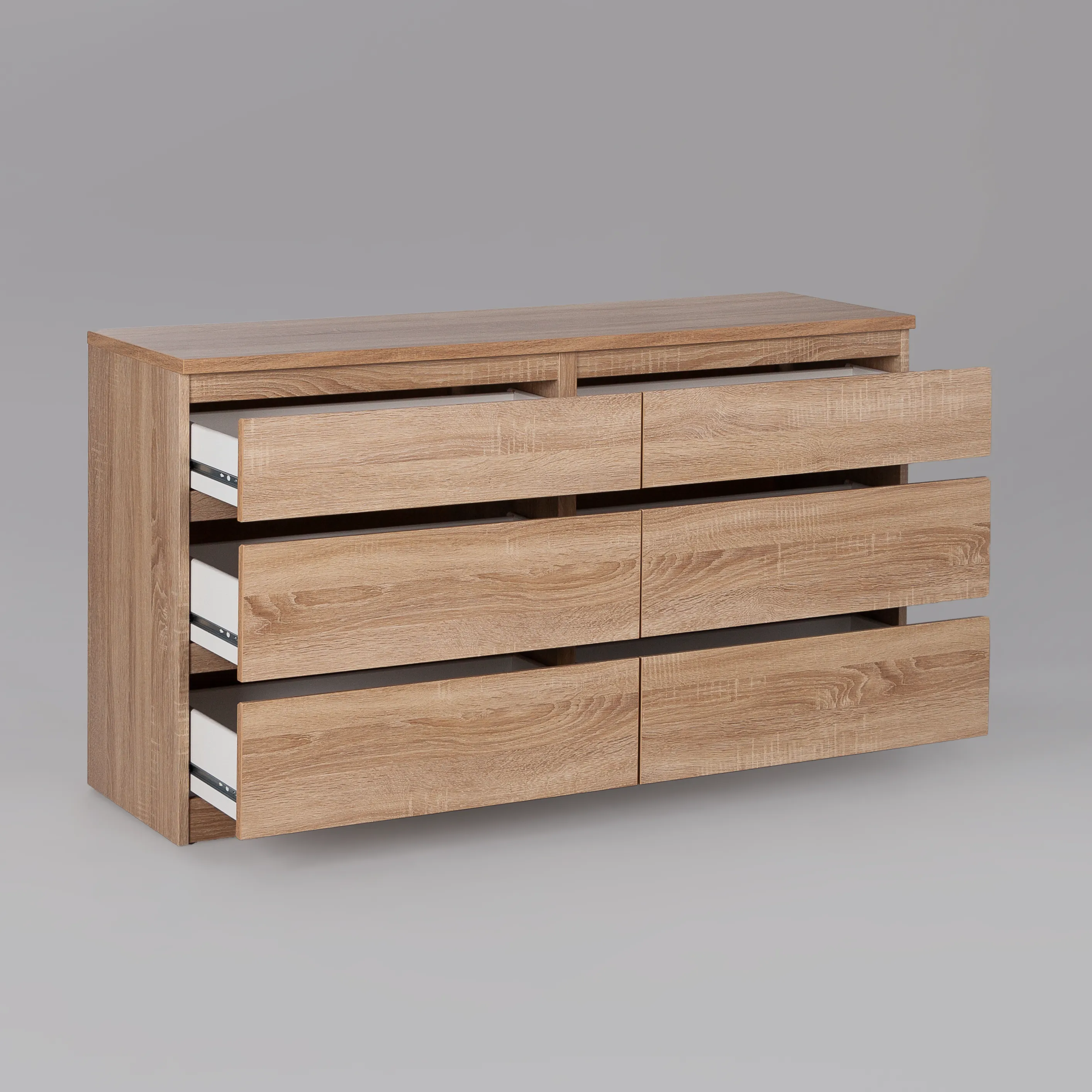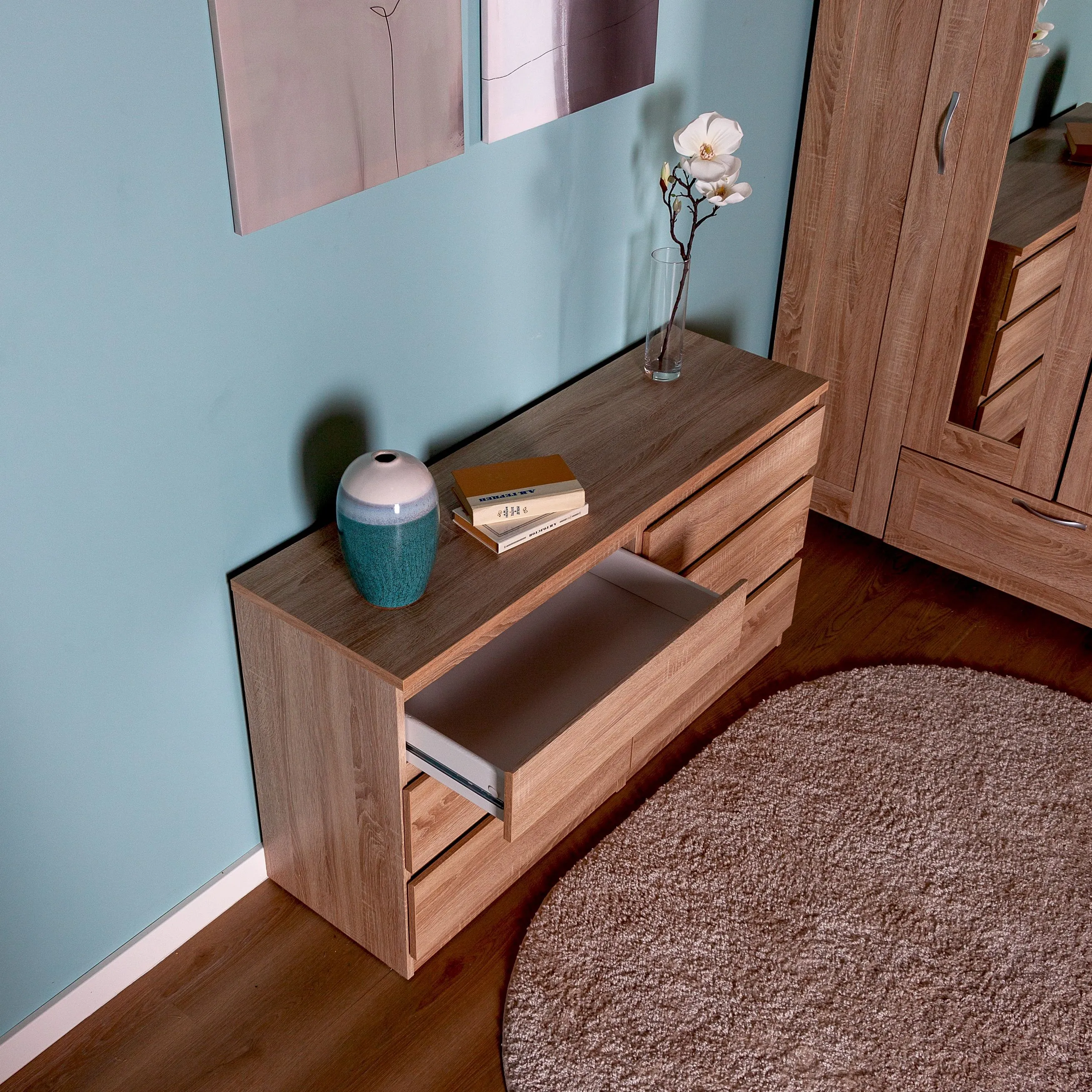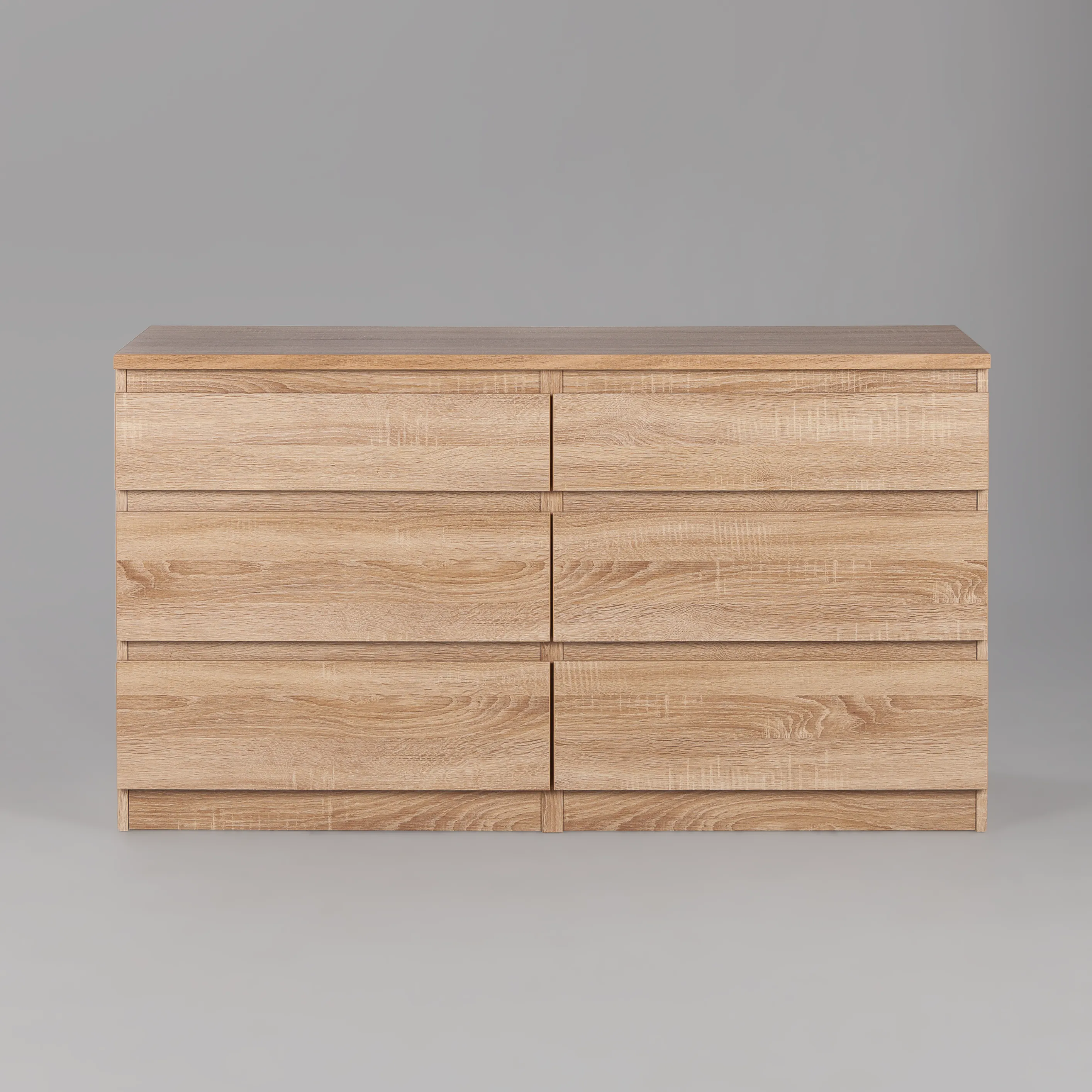 Комод КАСТОР с шестью наружными выдвижными ящиками, 1297х396х716, цвет Дуб Сонома. Изготовлен из кашированного ДСП толщиной 16 мм. Крепится к стене. Гарантийный срок для жилых помещений 24 месяца, для общественных помещений - 18 месяцев.