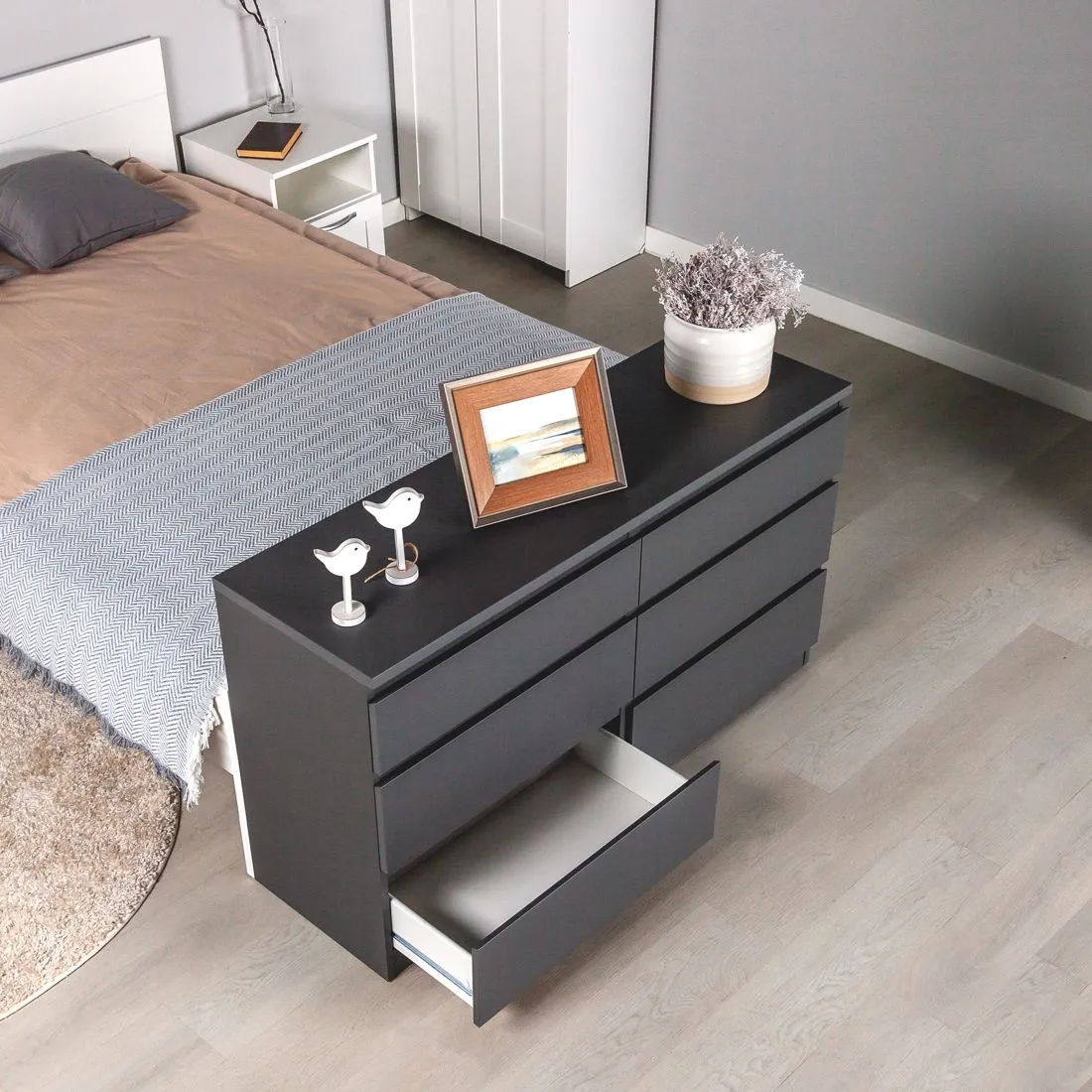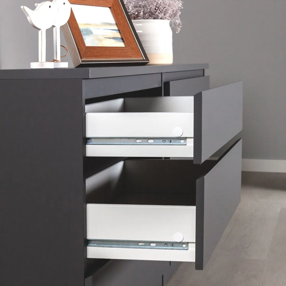 Комод КАСТОР с шестью наружными выдвижными ящиками, 1297х396х716, цвет Серый. Изготовлен из кашированного ДСП толщиной 16 мм. Крепится к стене. Гарантийный срок для жилых помещений 24 месяца, для общественных помещений - 18 месяцев.