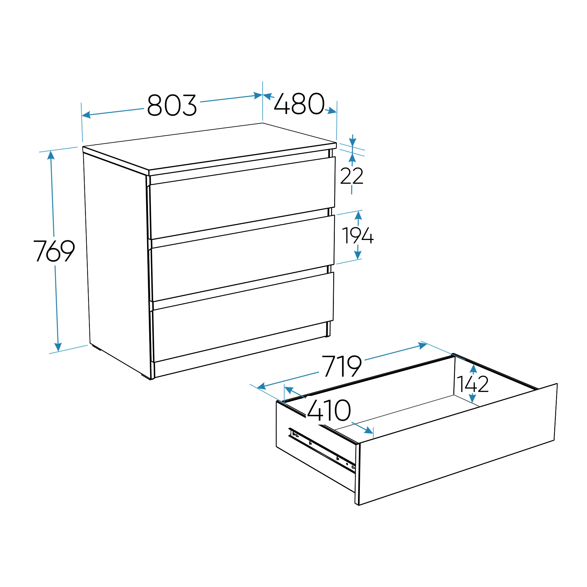 2.05.02.040.1 МАЛЬТА комод 3 ящика 80х76 белый RU
