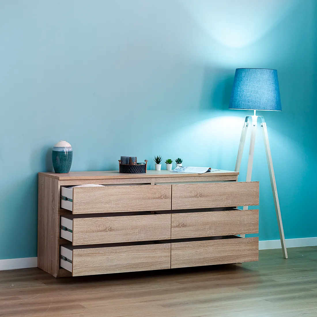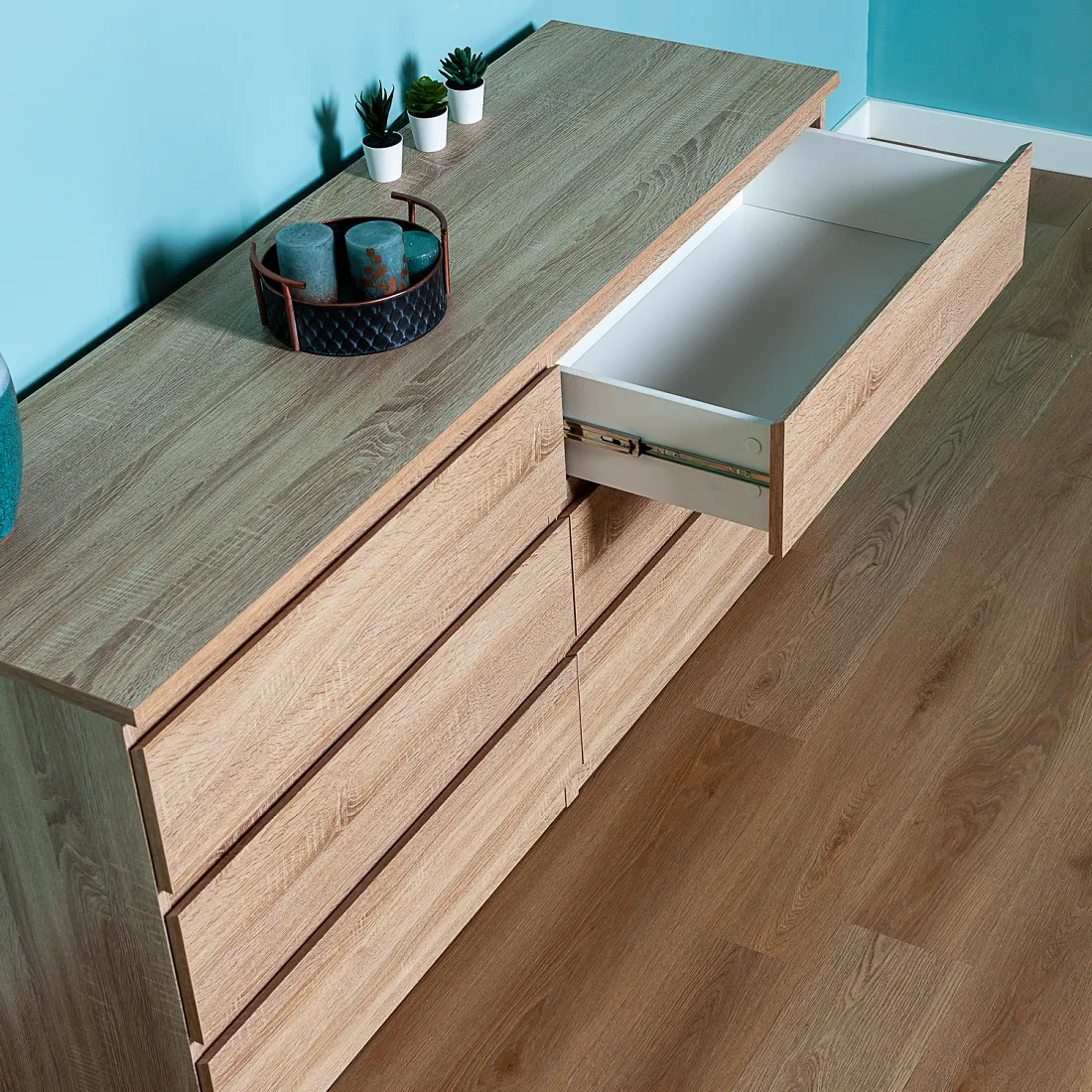 Комод МАЛЬТА с шестью выдвижными ящиками, 1603х480х764, цвет Дуб Сонома. Крепится к стене. Гарантийный срок для жилых помещений 24 месяца, для общественных помещений - 18 месяцев.