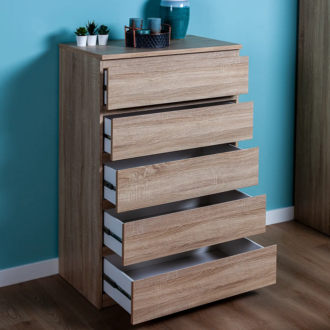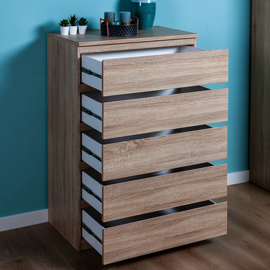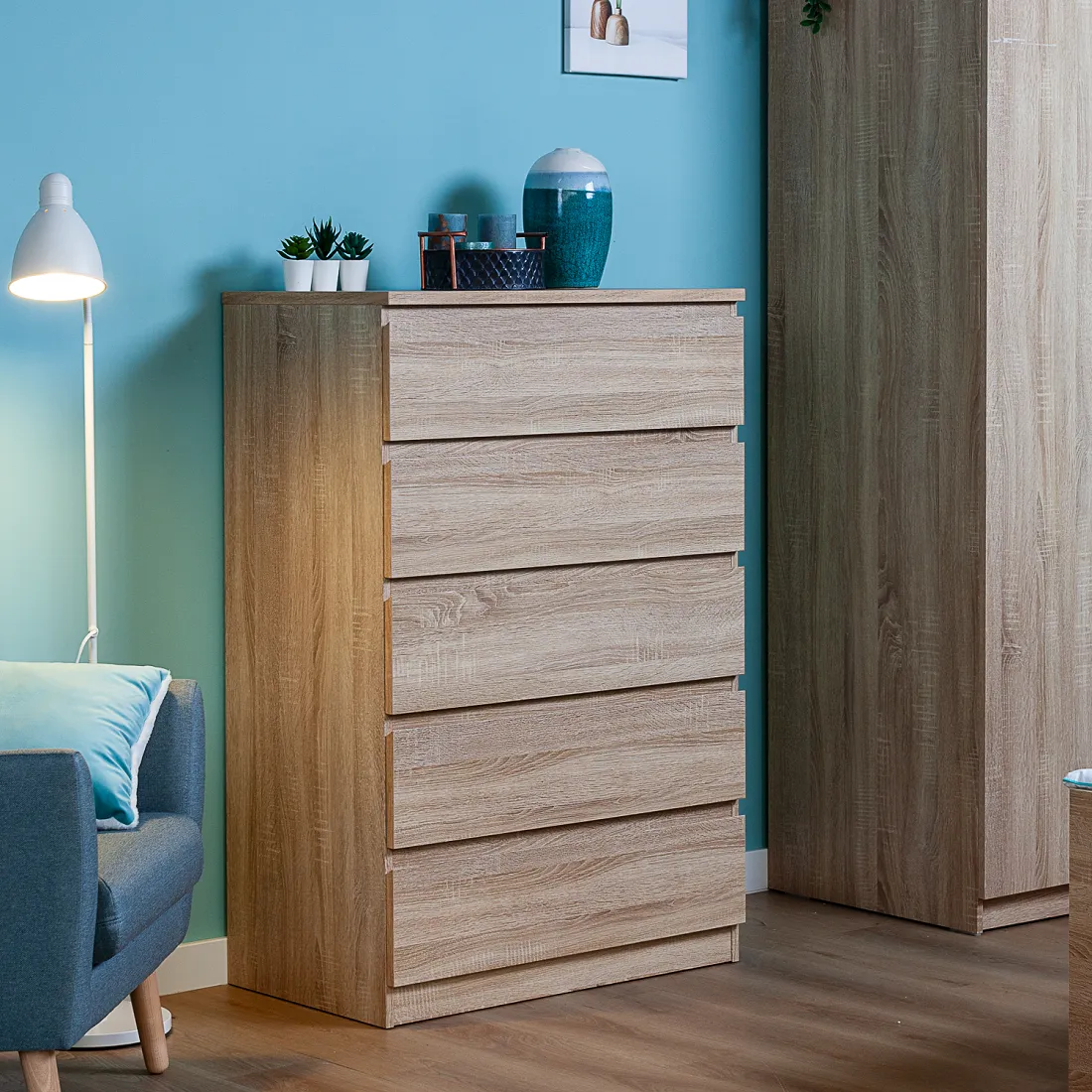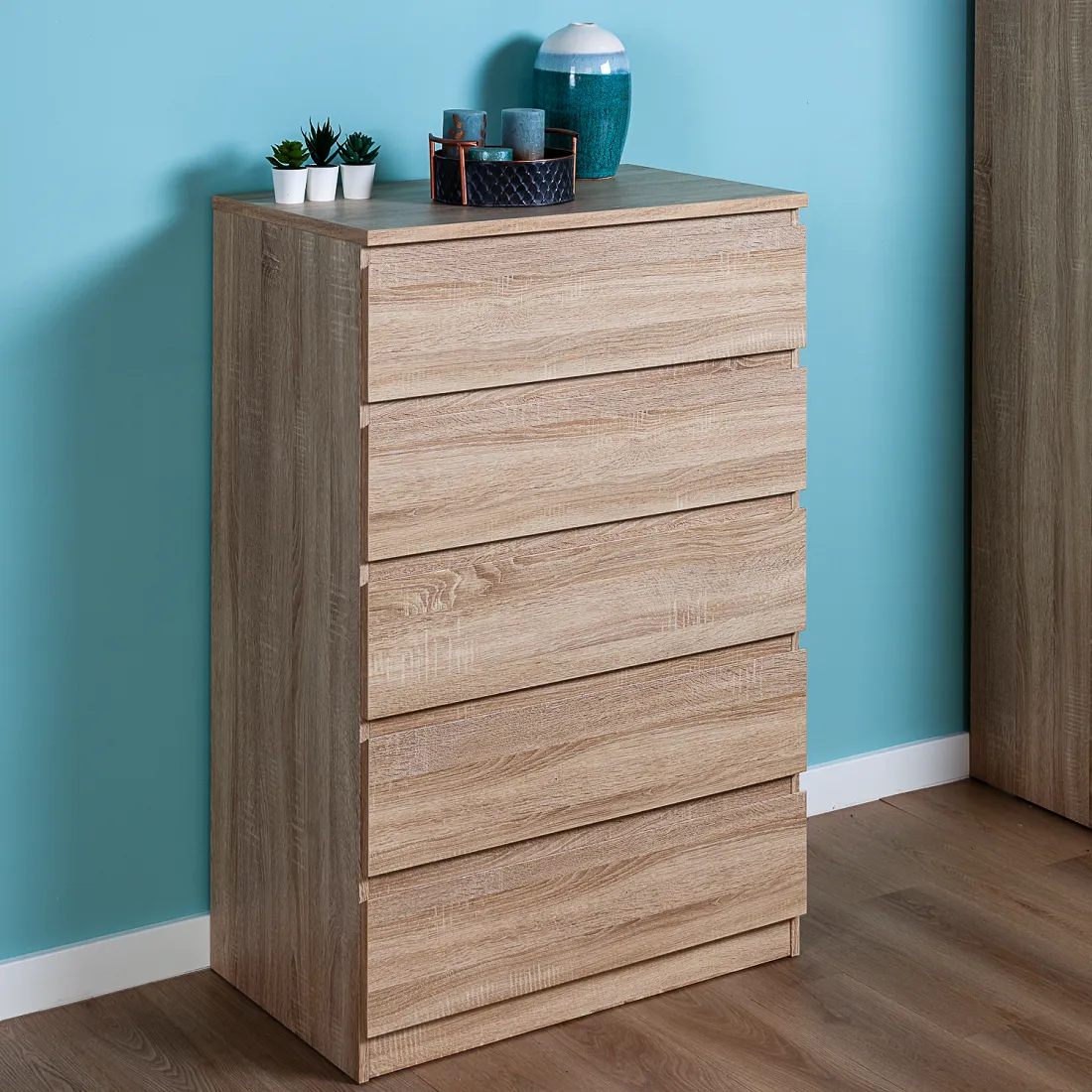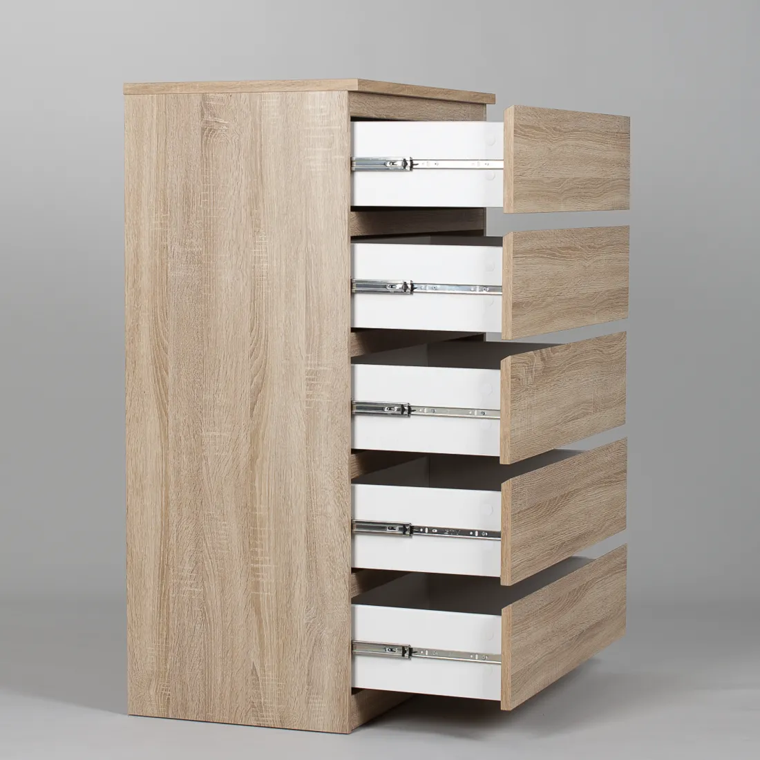 Комод МАЛЬТА с пятью выдвижными ящиками, 803х480х1212, цвет Дуб Сонома. Крепится к стене. Гарантийный срок для жилых помещений 24 месяца, для общественных помещений - 18 месяцев.