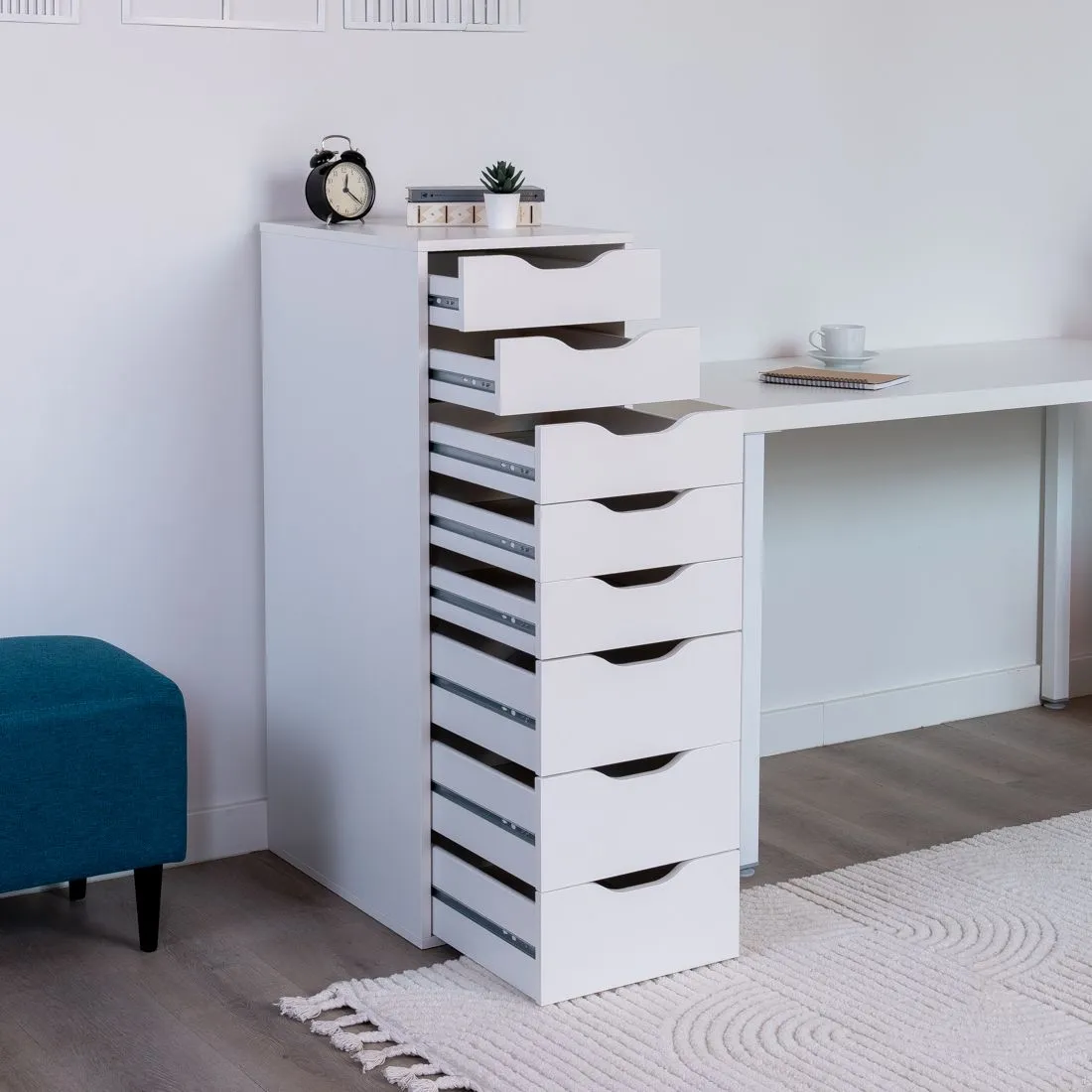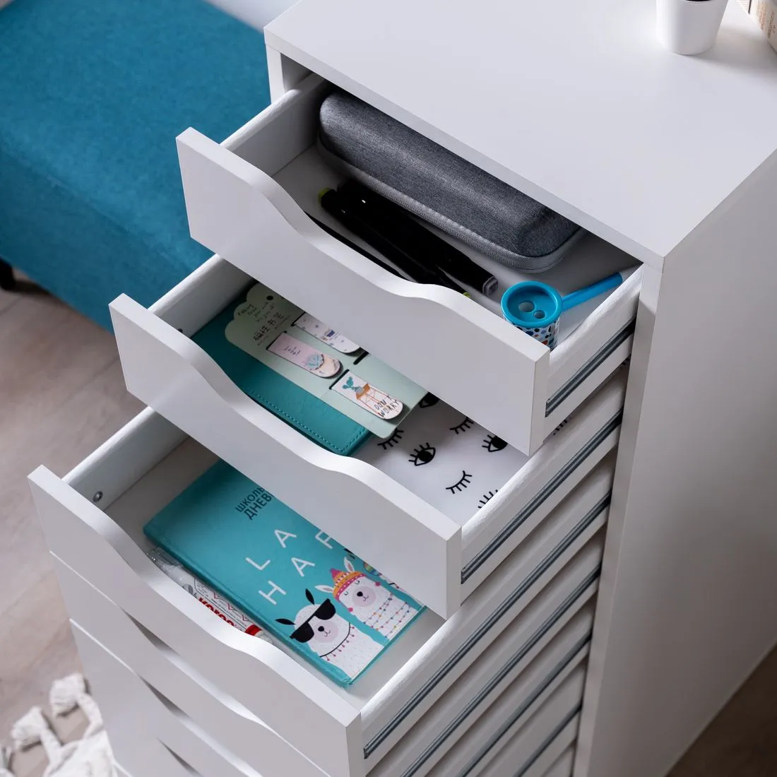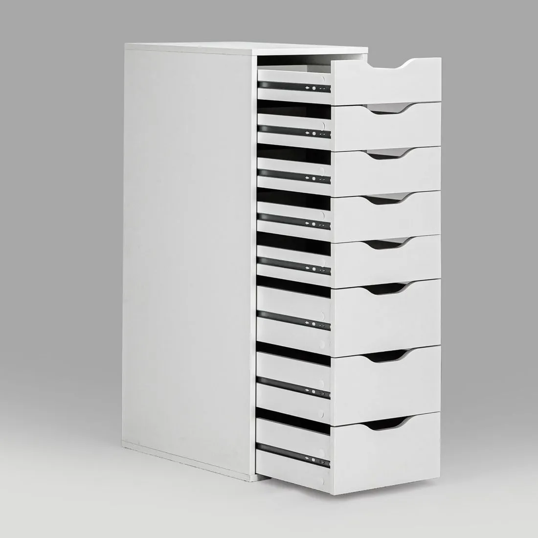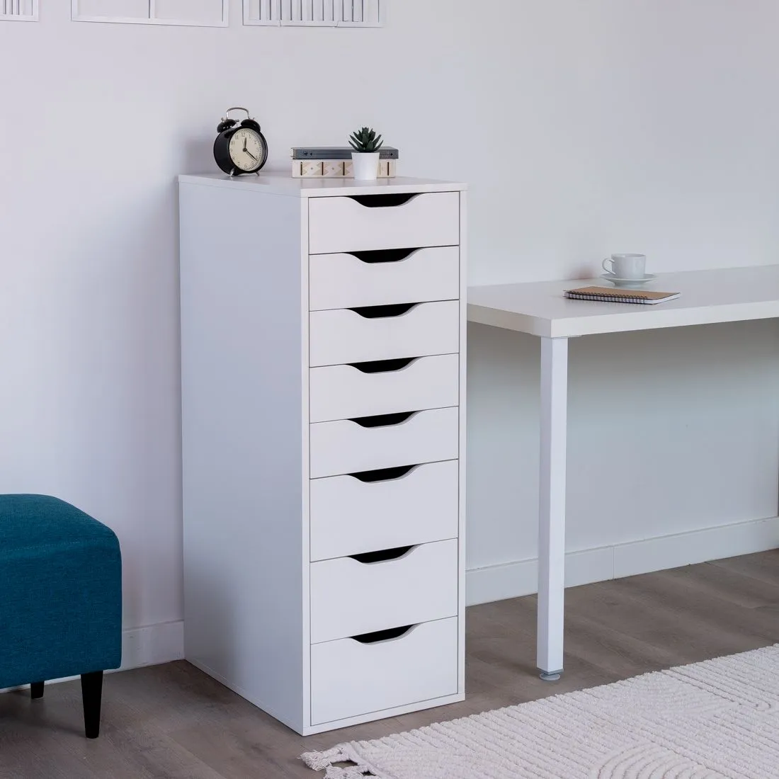 Комод Ингар 8, 36x102x53, цвет Белый. Высокий узкий комод с восьмью выдвижными ящиками. Конструкция: ДСП, поверхность, декорированная бумага, окраска УФ материалами. Фасады ящиков без ручек, с вырезами для удобного выдвижения. Ящики переменной высоты позволяют использовать их для хранения разнообразных предметов. Гарантийный срок для жилых и общественных помещений 24 месяца.