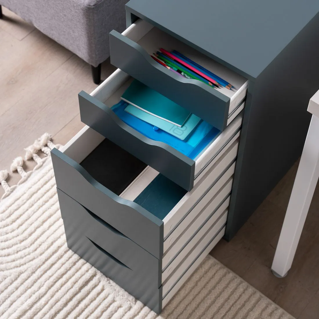 S01026 Ингар 5 комод 36x71x53, серо-бирюзовый
