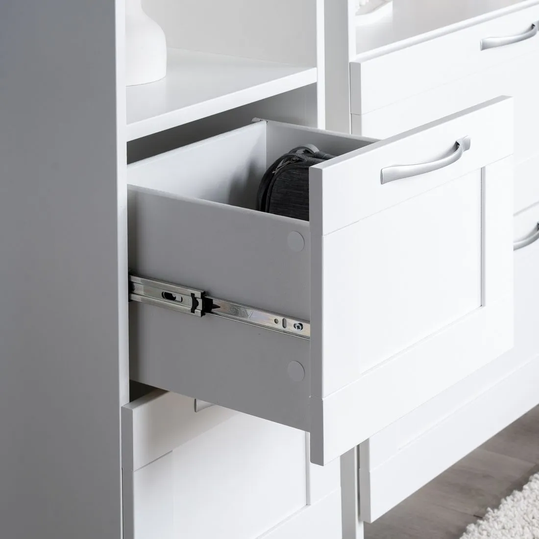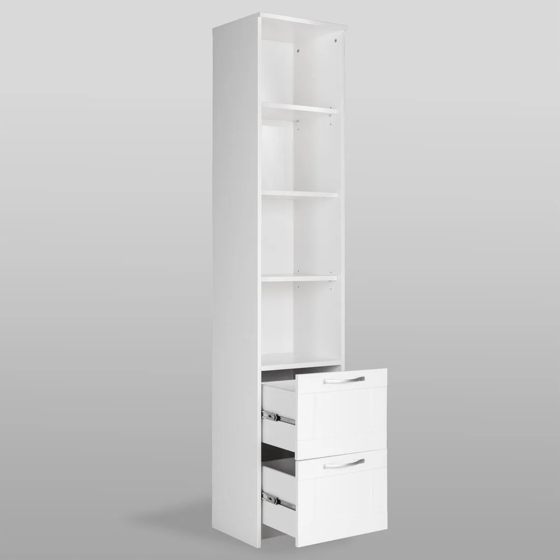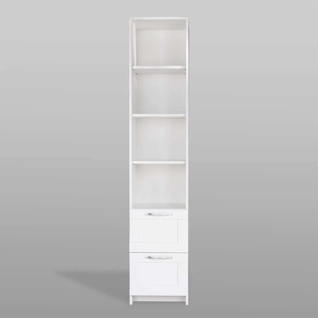 Стеллаж СИРИУС узкий с четырьмя полками сверху и двумя выдвижными ящиками снизу, 392х348х1900, цвет Белый. Изготовлен из кашированного ДСП толщиной 16 мм. Крепится к стене. Гарантийный срок для жилых помещений 24 месяца, для общественных помещений - 18 месяцев.