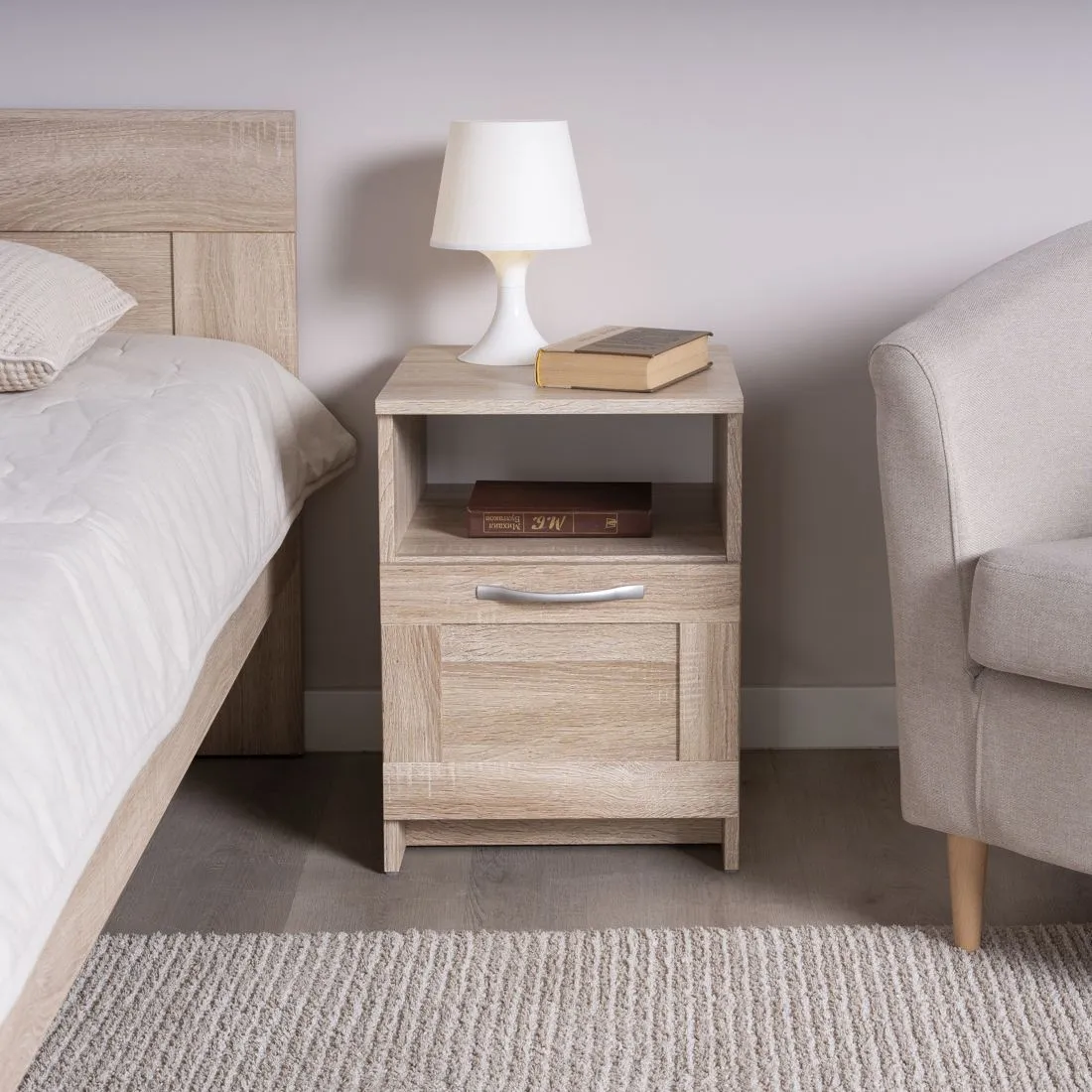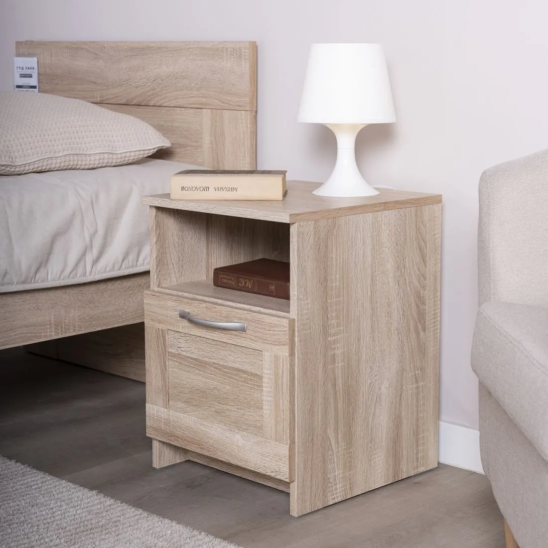 Тумба СИРИУС с нишей и наружным выдвижным ящиком, 412х391х531, цвет Дуб Сонома. Изготовлена из кашированного ДСП толщиной 16 мм. Крепится к стене. Гарантийный срок для жилых помещений 24 месяца, для общественных помещений - 18 месяцев.