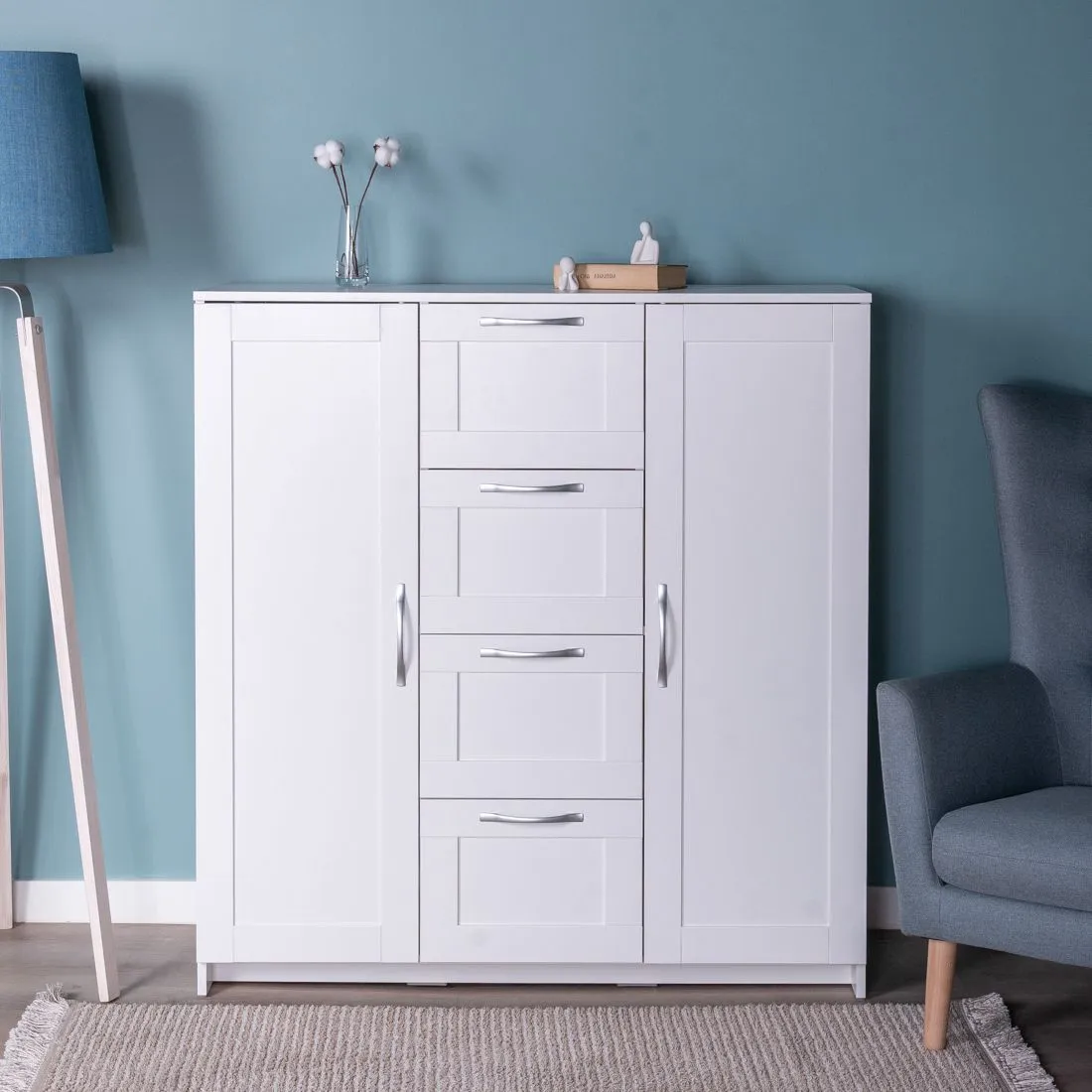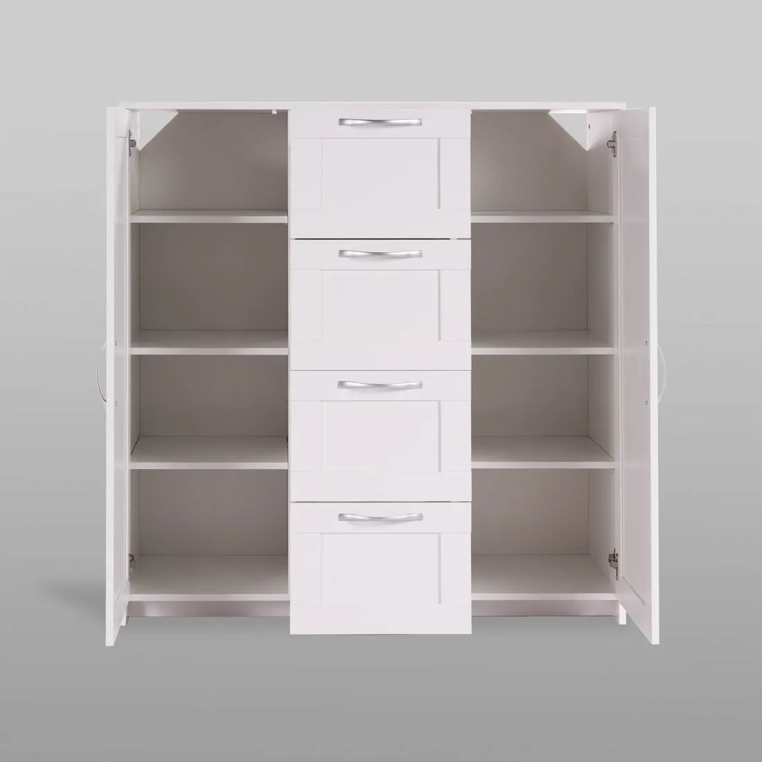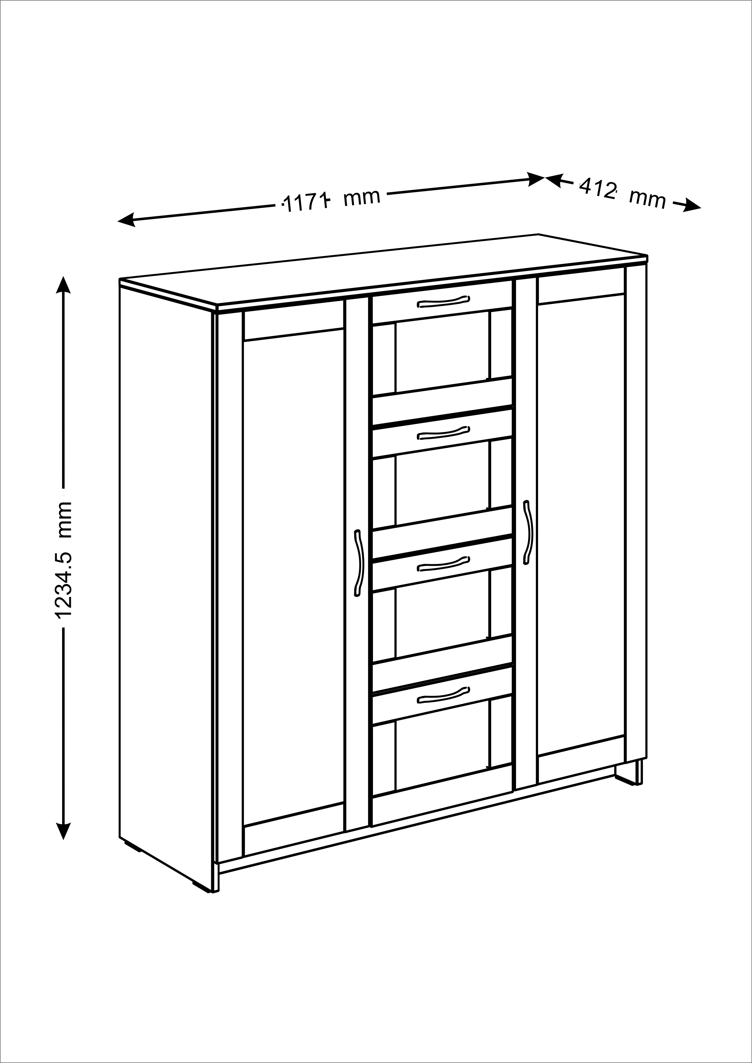Тумба СИРИУС двухдверная с четырьмя наружными выдвижными ящиками, 1171х412х1234, цвет Белый. Изготовлена из кашированного ДСП толщиной 16 мм. Крепится к стене. Гарантийный срок для жилых помещений 24 месяца, для общественных помещений - 18 месяцев.