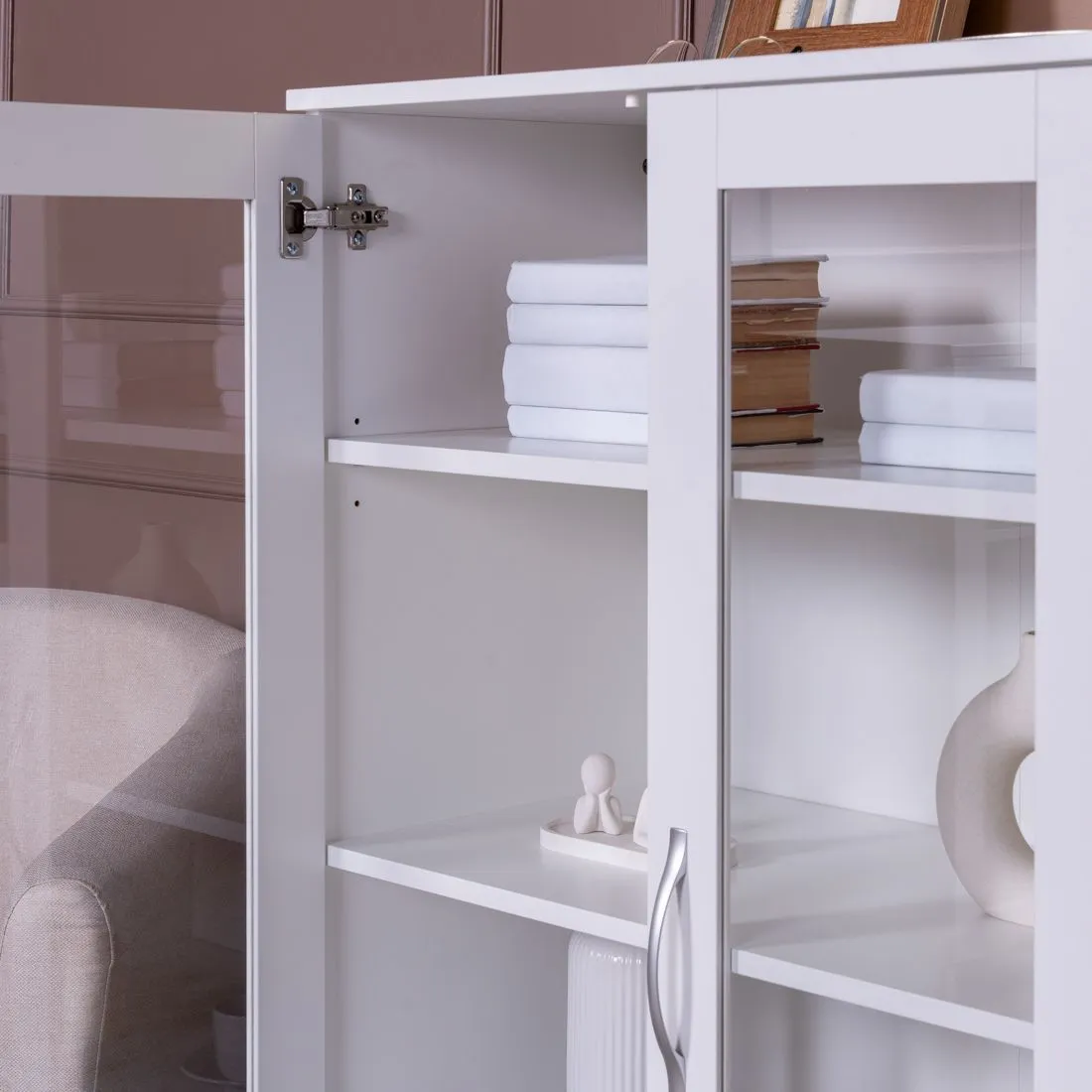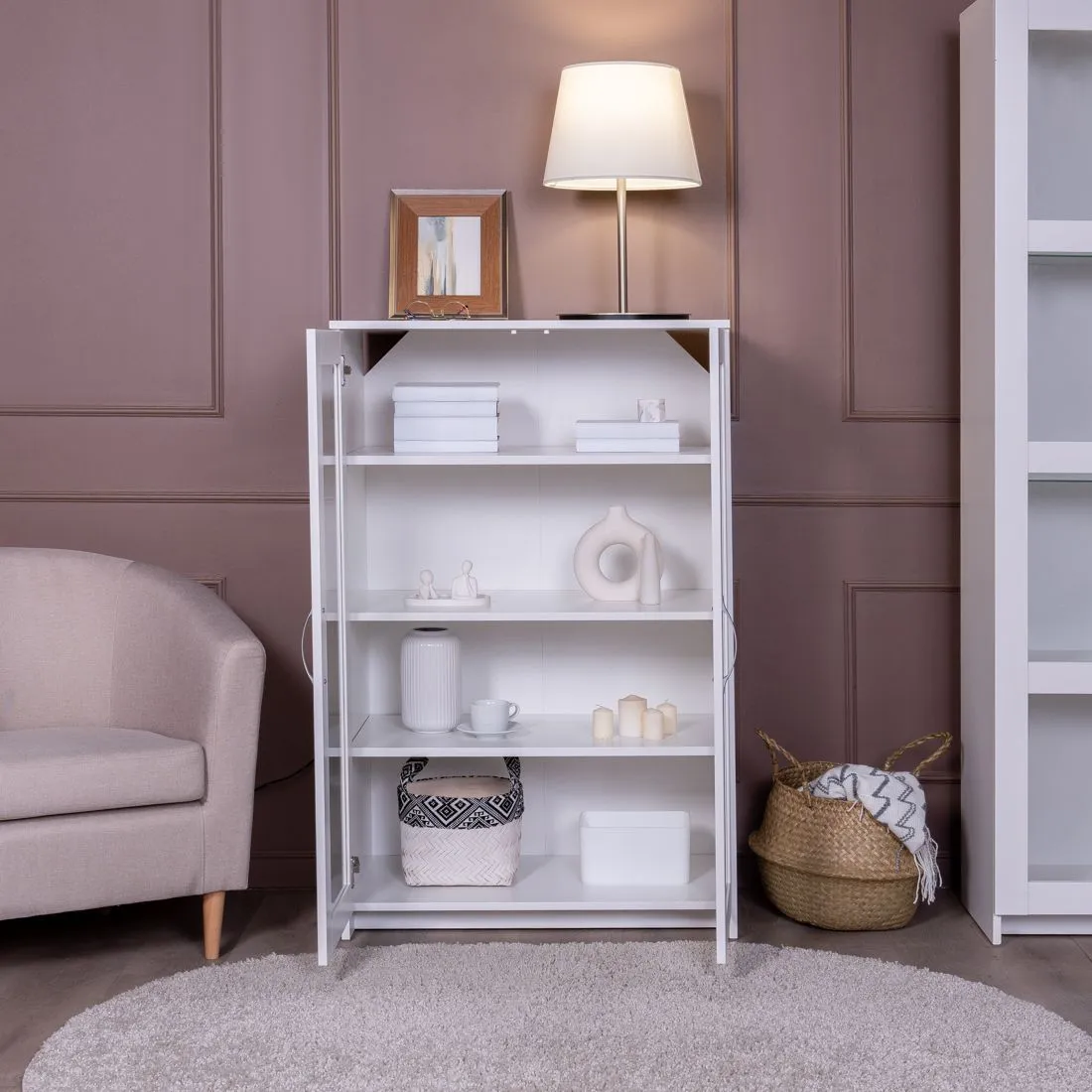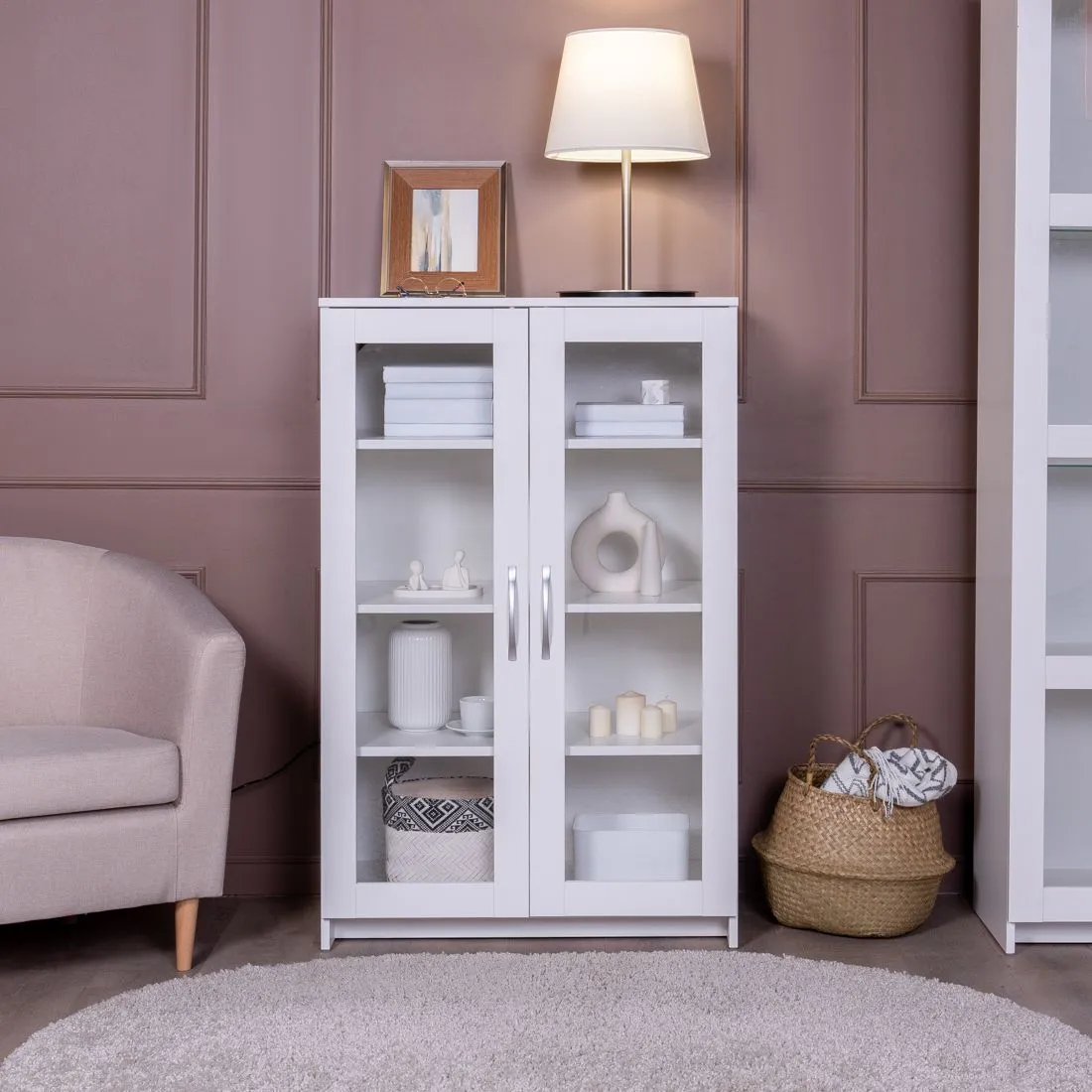 Тумба СИРИУС с двумя стеклянными дверьми, 782х412х1234, цвет Белый.  Изготовлена из кашированного ДСП толщиной 16 мм. Крепится к стене. Гарантийный срок для жилых помещений 24 месяца, для общественных помещений - 18 месяцев.