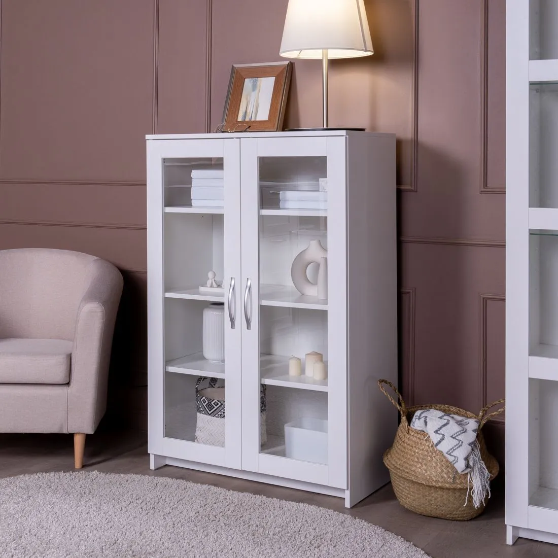 2.02.03.390.1 СИРИУС тумба 2 двери со стеклом 78х123 белая RU