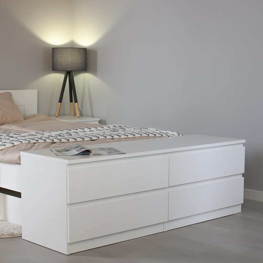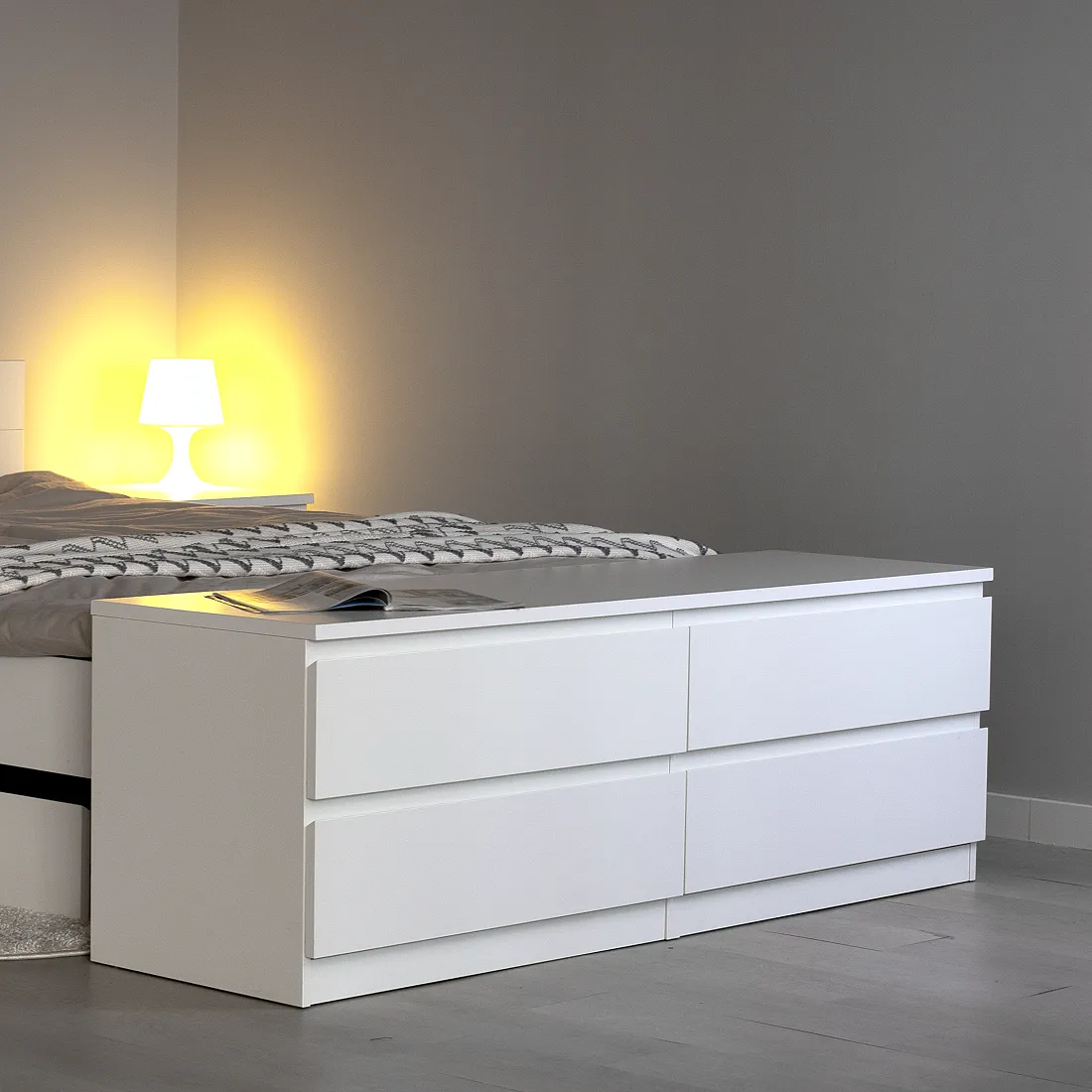 Комод МАЛЬТА с четырьмя выдвижными ящиками, 1603х480х540, цвет Белый. Крепится к стене. Гарантийный срок для жилых помещений 24 месяца, для общественных помещений - 18 месяцев.