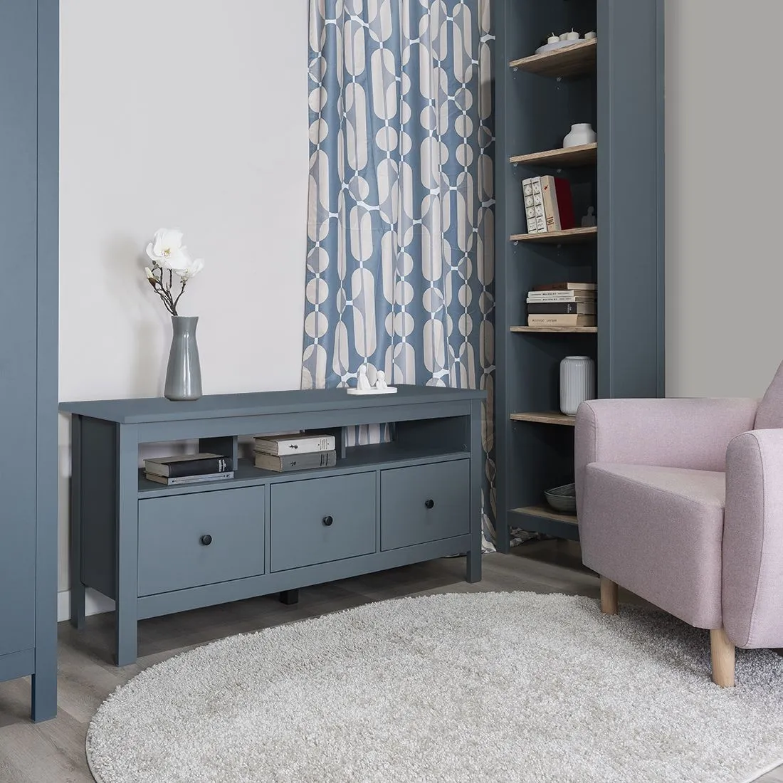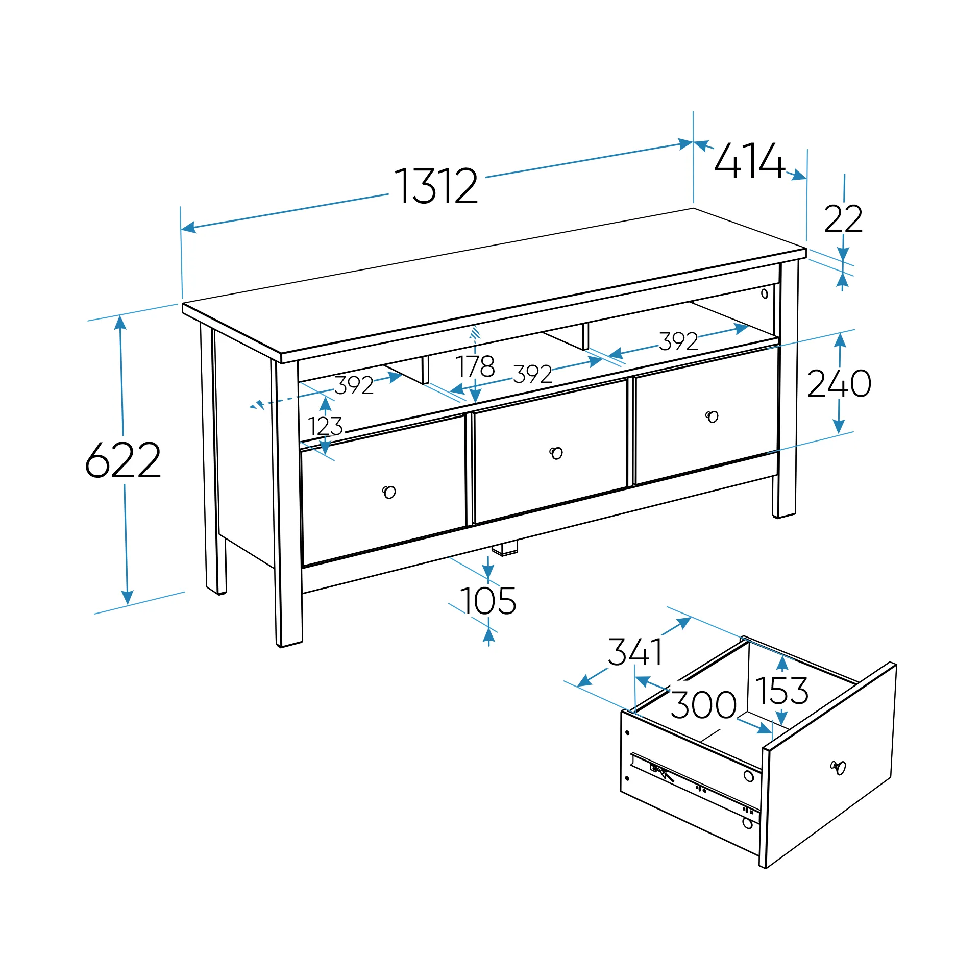 Тумба под телевизор 130 см с тремя ящиками САГА