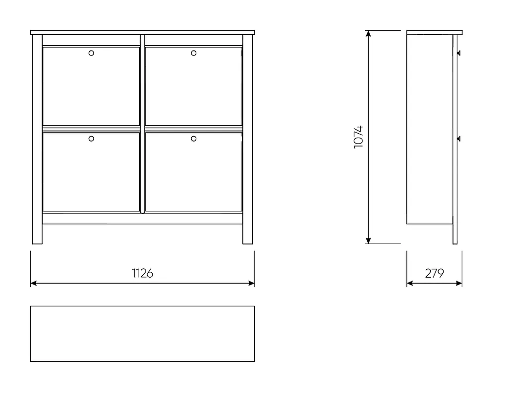 Тумба для обуви пристенная,  с четырьмя отсеками САГА, шириной 113 см