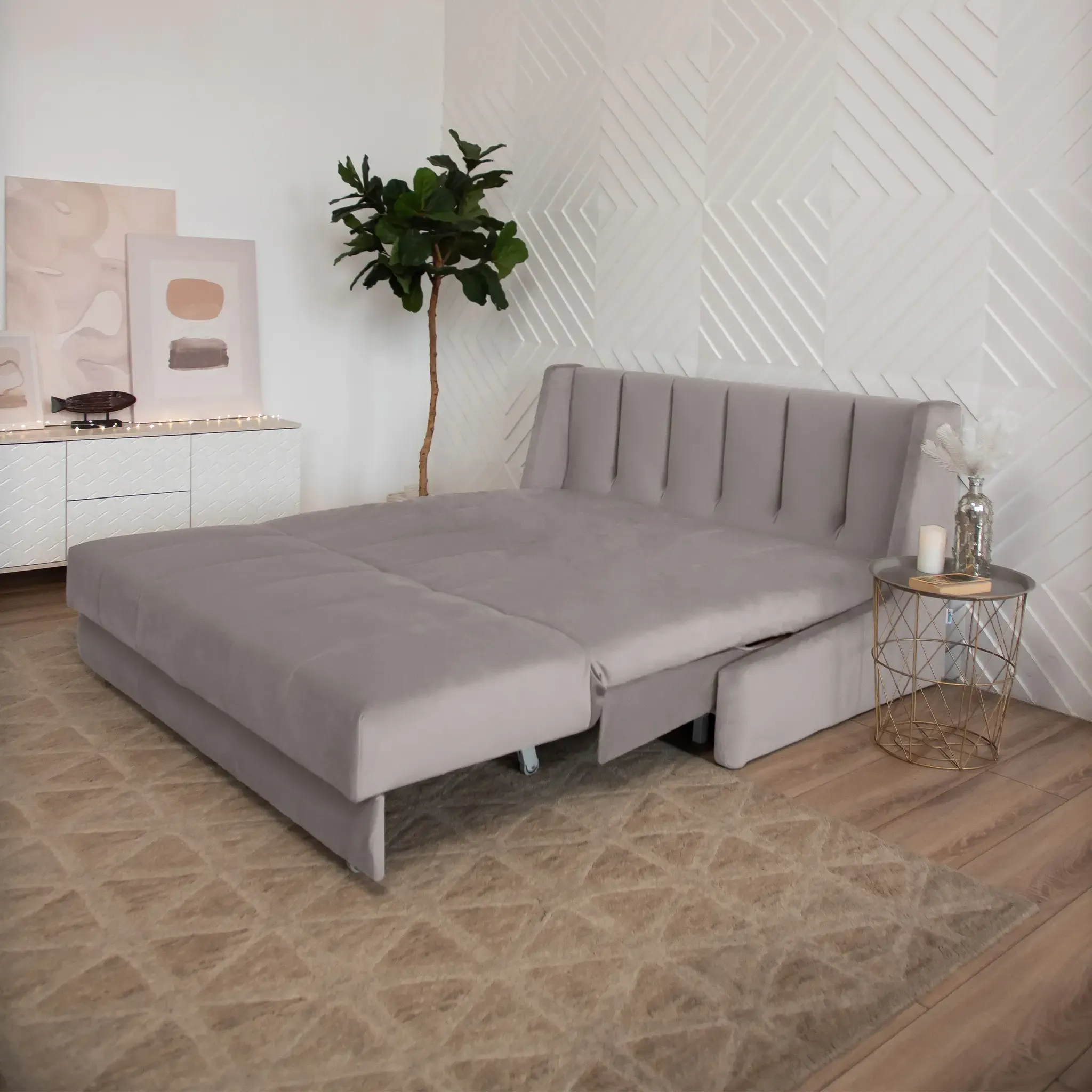 Уникальная разработка D1 - это складная кровать 3в1, созданная для тех, кто ценит комфорт и рациональное использование пространства. В собранном виде — это компактный диван, в разложенном — ровное бесшовное спальное место с полноценным ортопедическим матрасом.