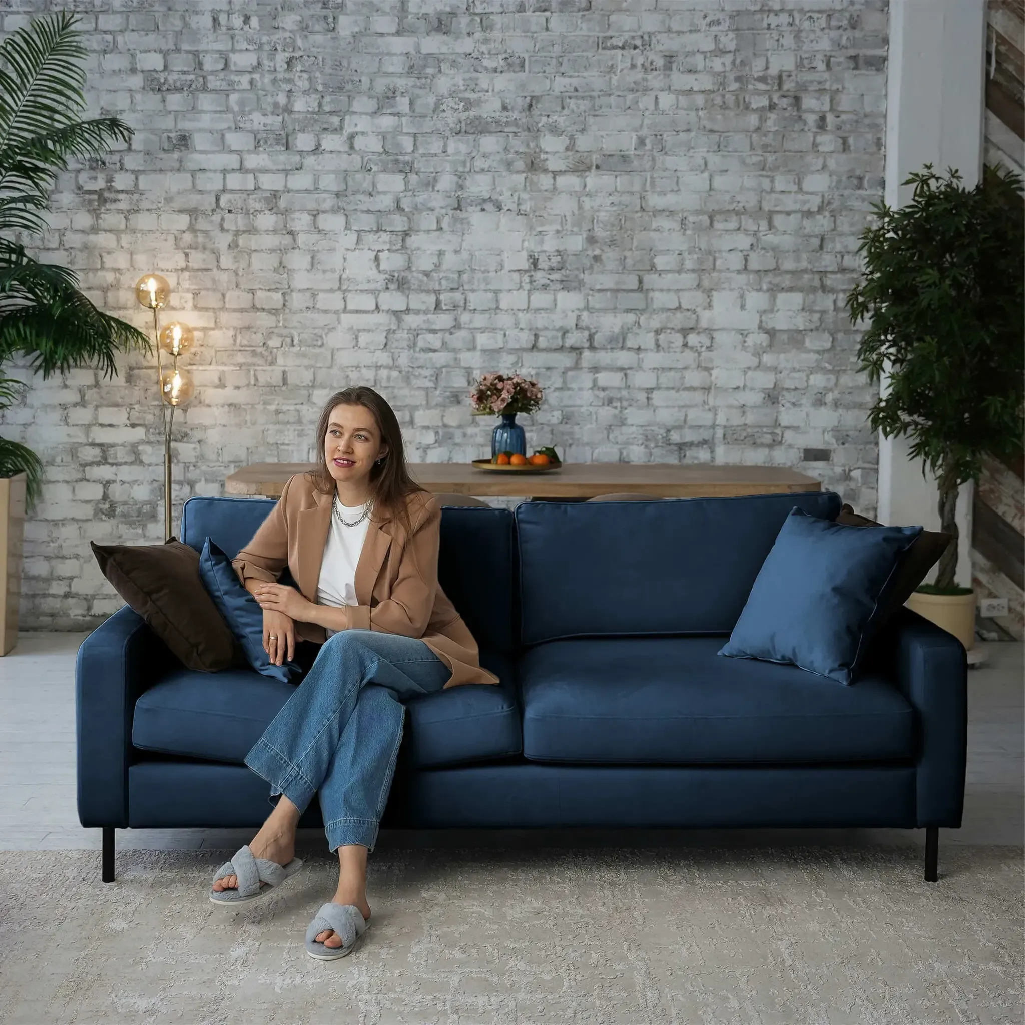 Диван «Хорошее настроение» входит в премиальную линейку интерьерной мебели D1. «Хорошее настроение» — это современный лаконичный дизайн, особенное удобство использования и высокое качество материалов. Почему вам понравится диван «Хорошее настроение»: Гарантия 18 месяцев: мы уверены в качестве своей продукции.Внутри дивана находится гипоаллергенный высокоэластичный наполнитель «Аселекс», который сохраняет заданную форму годами.Обивка велюр Premier: красивая тактильно приятная ткань с эффектом легкой чистки.Высокие ножки облегчают уборку под диваном. Подушки в комплекте: мягкость и уют для максимального комфорта. Диван «Хорошее настроение» — это новый уровень комфорта и надёжности.  Характеристики  Габариты: 215х108х79 см Высота сиденья: 47 см Вес: 100 кг Нераскладной интерьерный диван Возможность выбора обивки Прочный каркас из фанеры  Фабрика D1 является российским производителем мебели. Мы осуществляем полный производственный цикл всего представленного ассортимента. Все используемые материалы и комплектующие сертифицированы и соответствуют САНПиН. На всю нашу продукцию мы даём гарантию 18 месяцев.