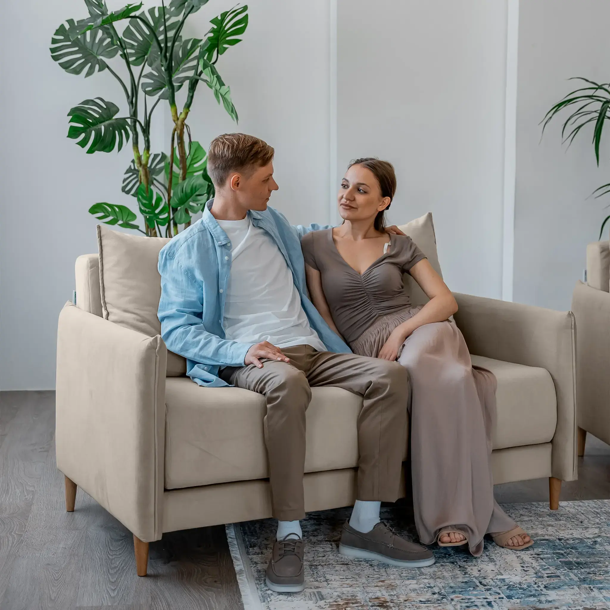 НОВЫЕ ЭМОЦИИ Диван прямой, латте, банкетка справа