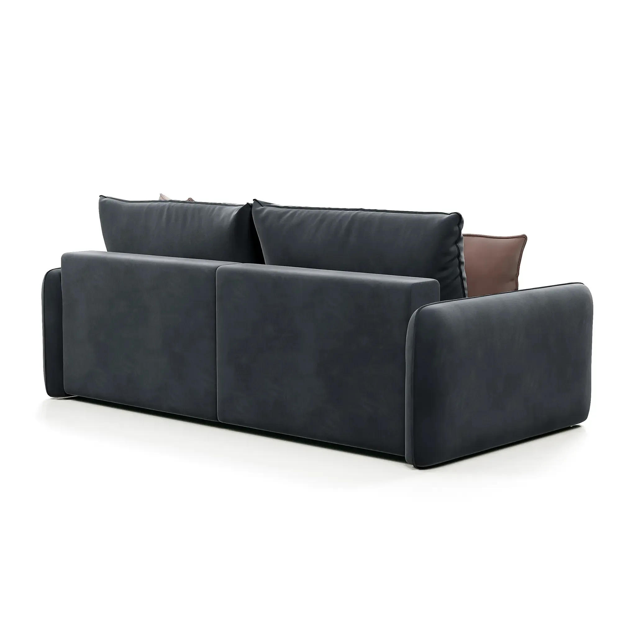Обивка дивана - мягкий бархатистый премиальный велюр. Тонкая динамика узора обивки создаёт в пространстве ощущение лёгкости и движения.