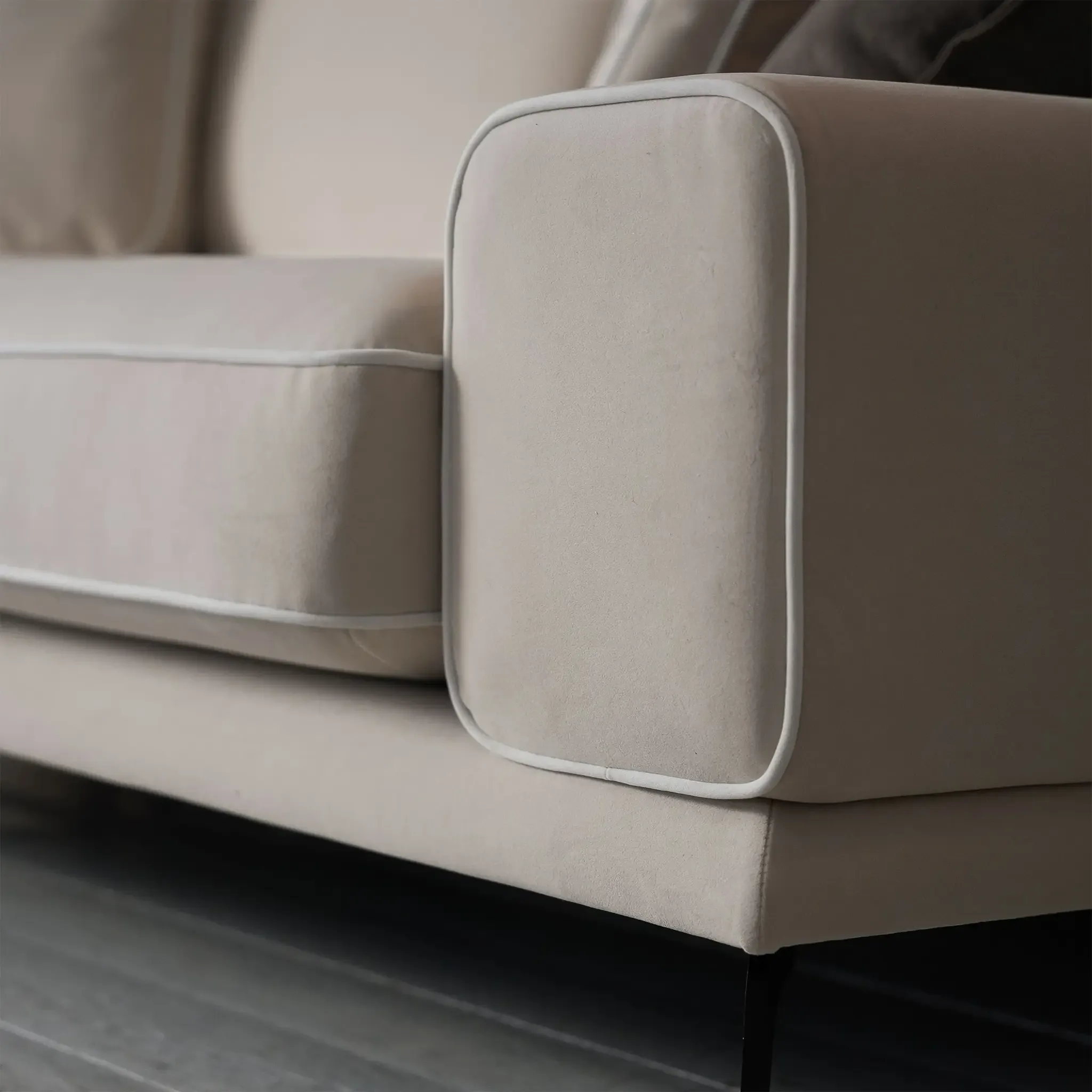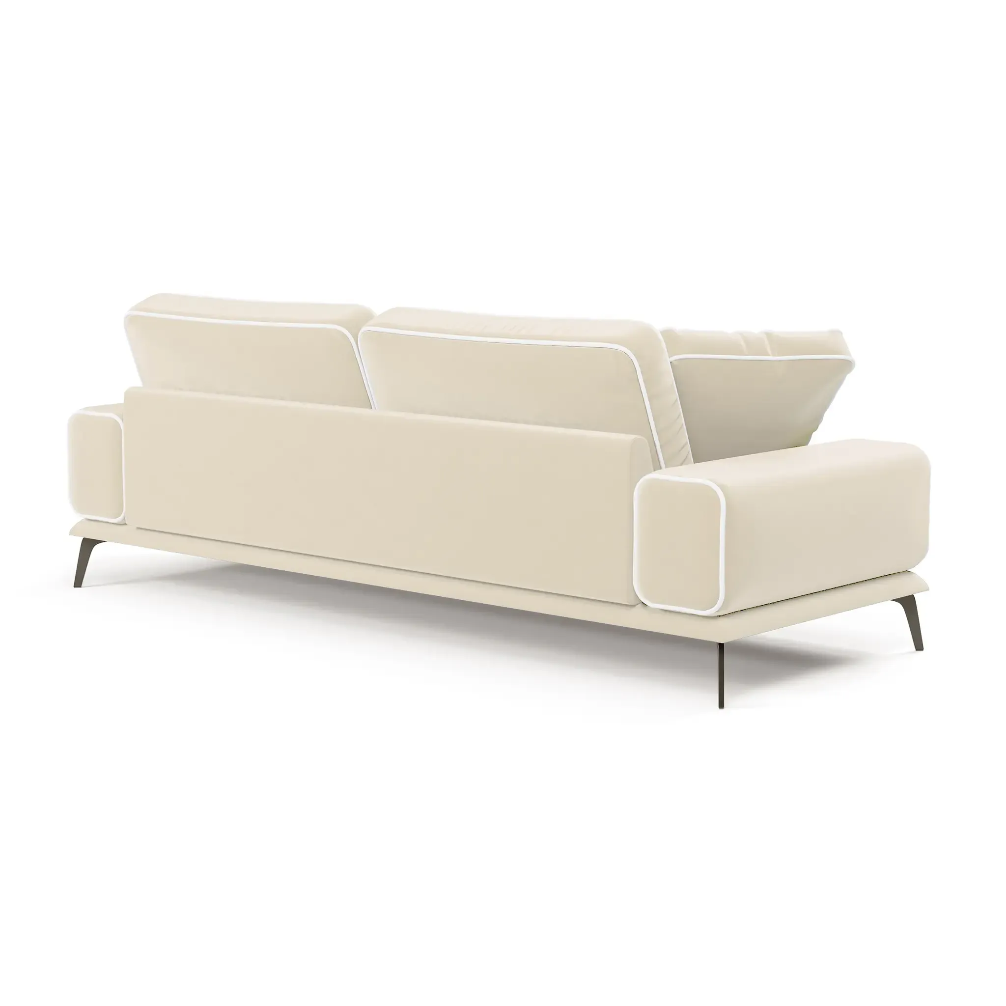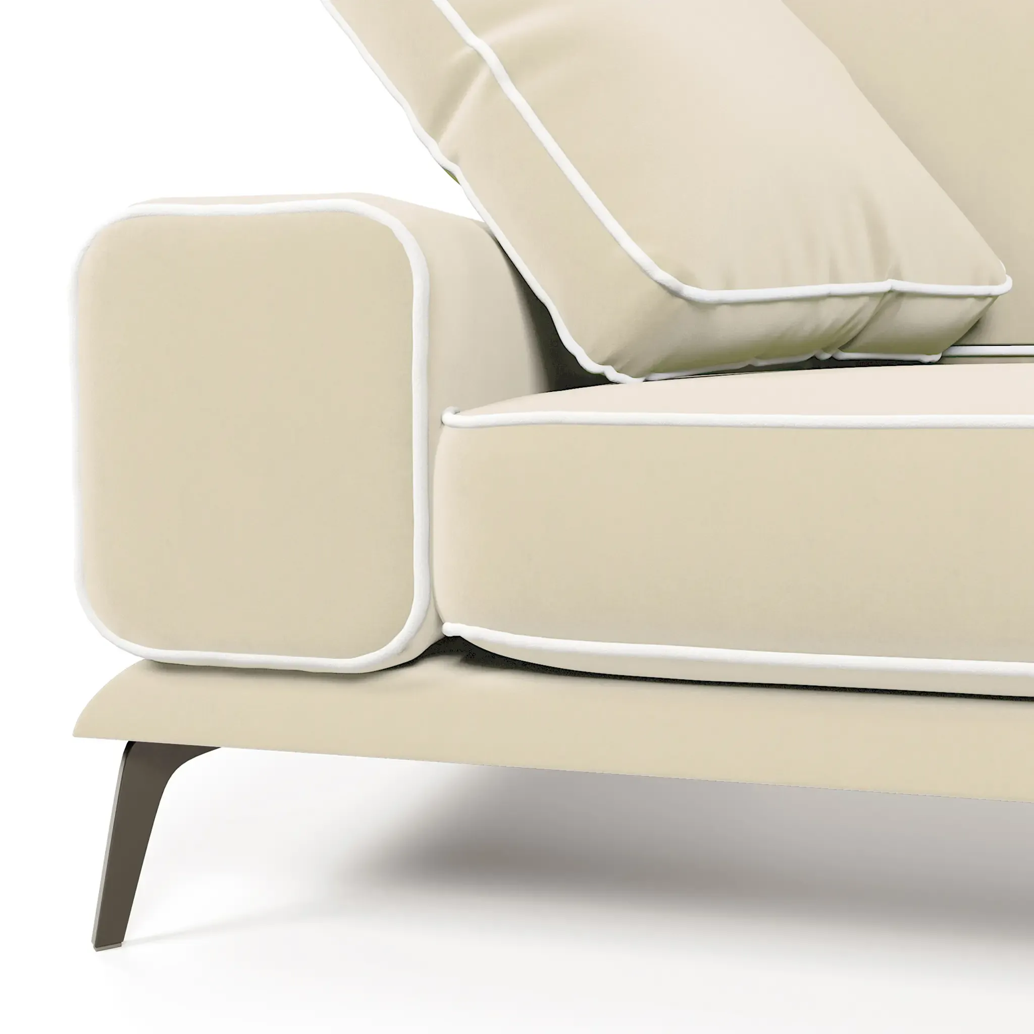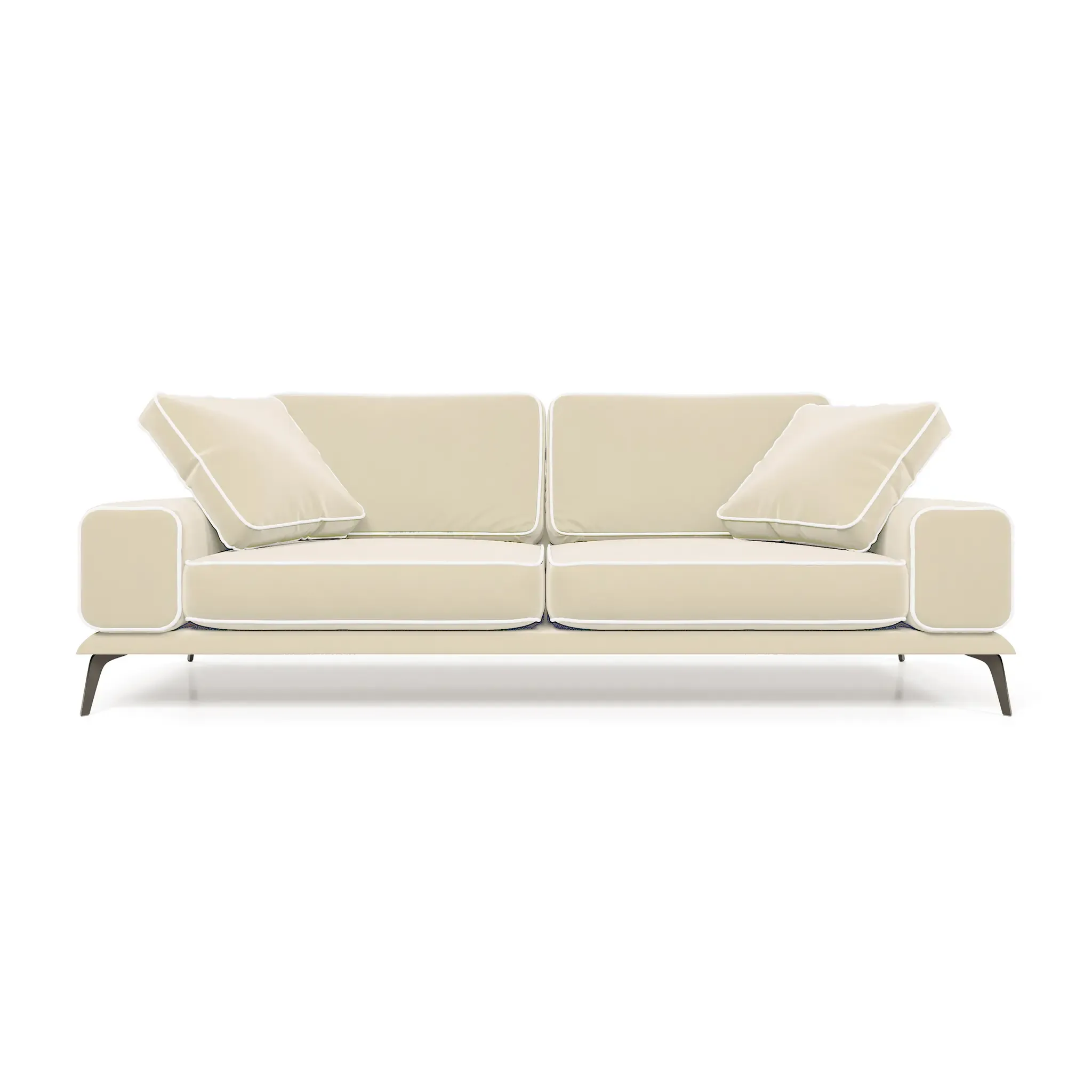 Диван Солнечное побережье отличается легкостью и воздушностью благодаря высоким ножкам, которые меняют визуальное восприятие объемов, создавая современный и стильный образ. Сбалансированный дизайн с широкими подлокотниками и пышными подушками создает ощущение комфорта и уюта. Почему вам понравится диван «Солнечное побережье»:  Гарантия 18 месяцев: мы уверены в качестве своей продукции. Внутри дивана находится гипоаллергенный высокоэластичный наполнитель «Аселекс», который сохраняет заданную форму годами. Обивка велюр Novus от Chistetika: технология Waterproof делает ткань устойчивой к влаге и, благодаря этому, обивка долговечна и проста в уходе. Высокие ножки облегчают уборку под диваном. Подушки в комплекте: мягкость и уют для максимального комфорта.  Ширина дивана делает его идеальным выбором для владельцев малогабаритных квартир, желающих добавить комфорт и уют в свое пространство. Мягкие подушки обеспечивают тепло и уют, а разнообразие обивочных тканей помогает подобрать идеальный вариант для вашего интерьера. Спинка и сиденье выполнены из высокоэластичного полиуретана, а прочные металлические ножки обеспечивают дополнительную устойчивость. Характеристики  Габариты: 230х107х87 см Высота сиденья: 42 см Максимальная нагрузка: 220 кг Нераскладной интерьерный диван Прочный каркас из высококачественной фанеры  Фабрика D1 является российским производителем мебели. Мы осуществляем полный производственный цикл всего представленного ассортимента. Все используемые материалы и комплектующие сертифицированы и соответствуют САНПиН. На всю нашу продукцию мы даём гарантию 18 месяцев.