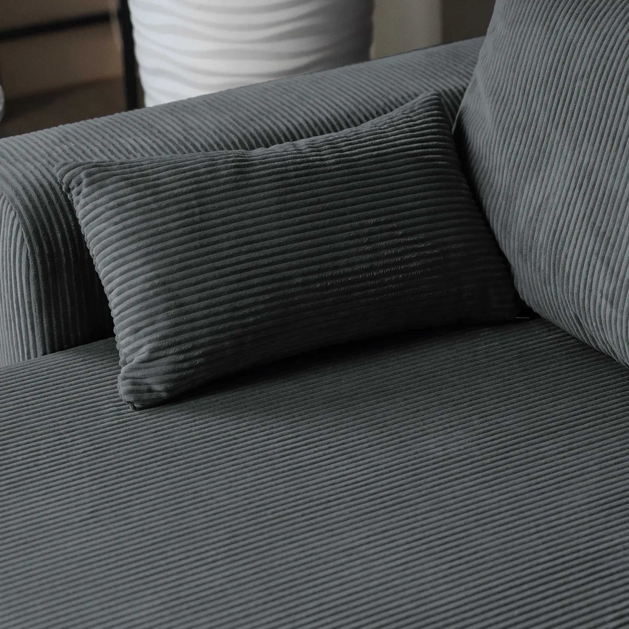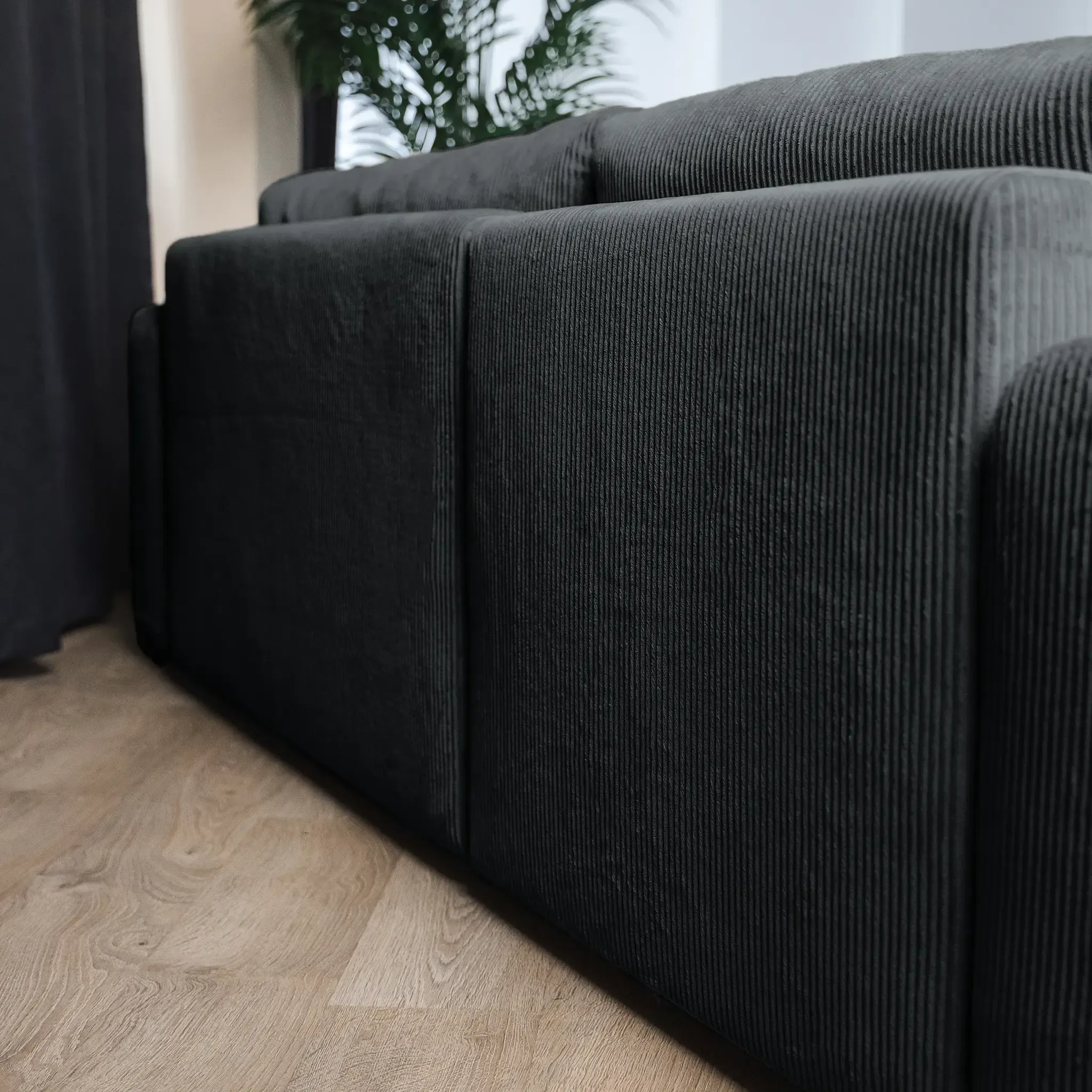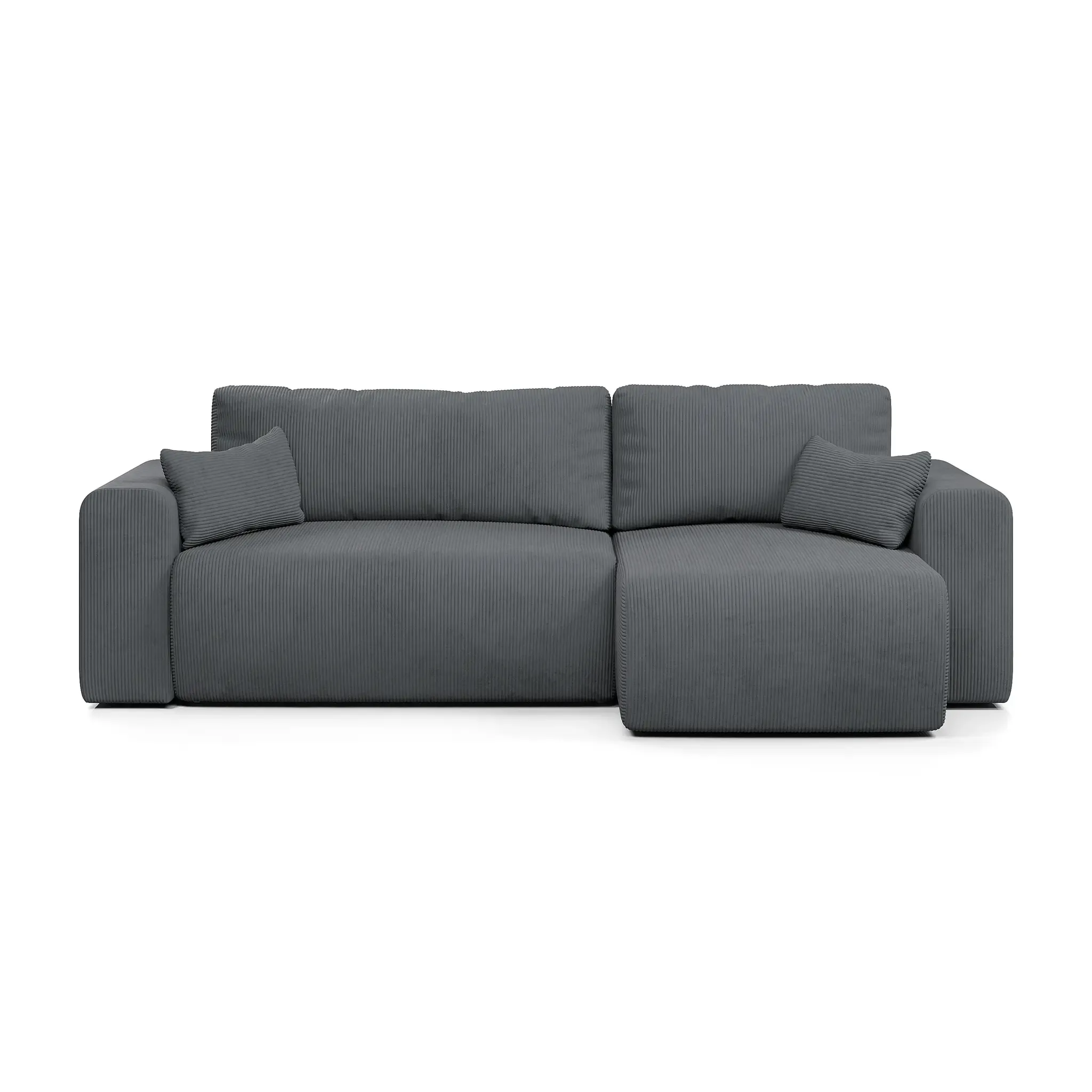 Универсальный угол дивана позволяет адаптировать его под любую планировку комнаты, а мягкий велюр CILIUM с рельефной фактурой добавляет интерьеру уюта и изысканности. Базовая обивка спинки делает диван универсальным элементом зонирования, создавая уютные уголки для отдыха или общения. В комплекте с диваном вы получаете набор стильных декоративных подушек.