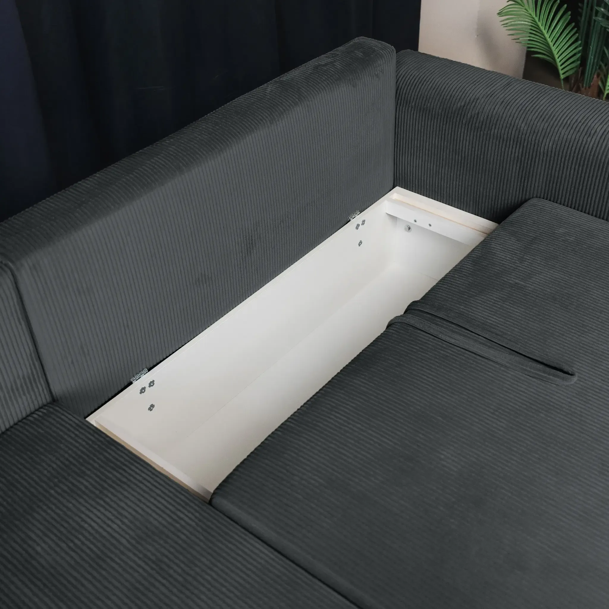 Всего два движения — и диван превращается в просторное спальное место размером 140х200 см, готовое принять вас или ваших гостей. Вместительный бельевой короб под сиденьем предоставляет дополнительное место для хранения подушек, одеял и других мелочей, помогая поддерживать порядок.