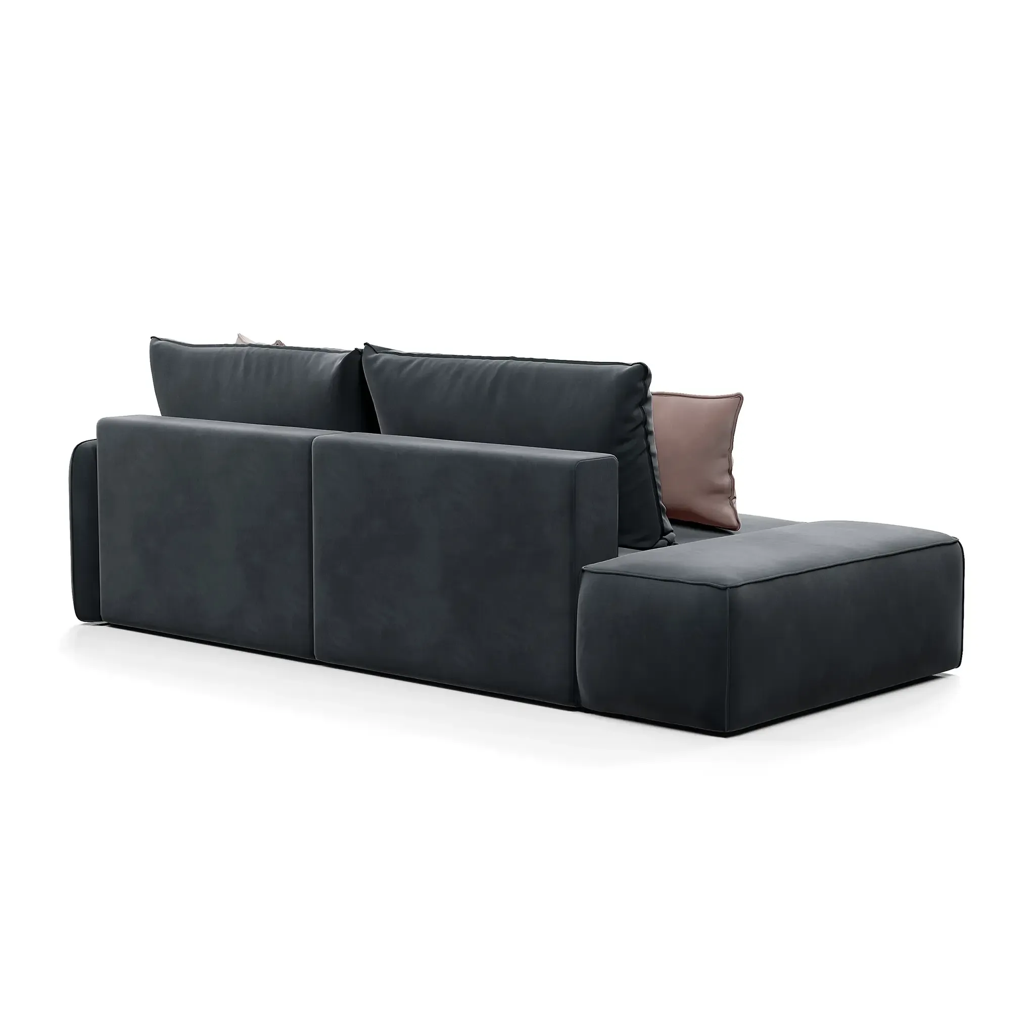 Обивка дивана - мягкий бархатистый премиальный велюр. Тонкая динамика узора обивки создаёт в пространстве ощущение лёгкости и движения. Технология Waterproof делает ткань устойчивой к влаге, и благодаря этому обивка долговечна и проста в уходе.