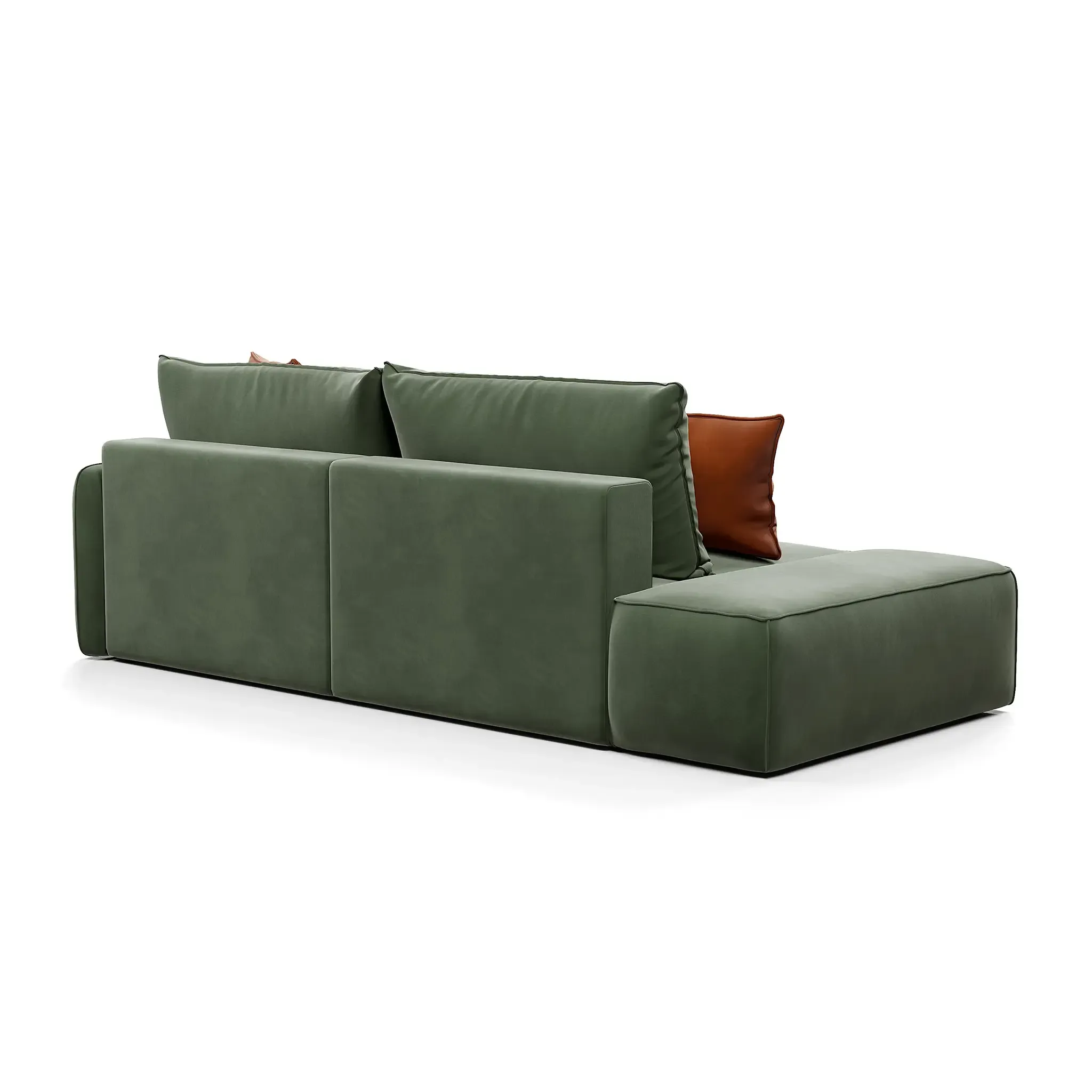 Обивка дивана - мягкий бархатистый премиальный велюр. Тонкая динамика узора обивки создаёт в пространстве ощущение лёгкости и движения. Технология Waterproof делает ткань устойчивой к влаге, и благодаря этому обивка долговечна и проста в уходе.