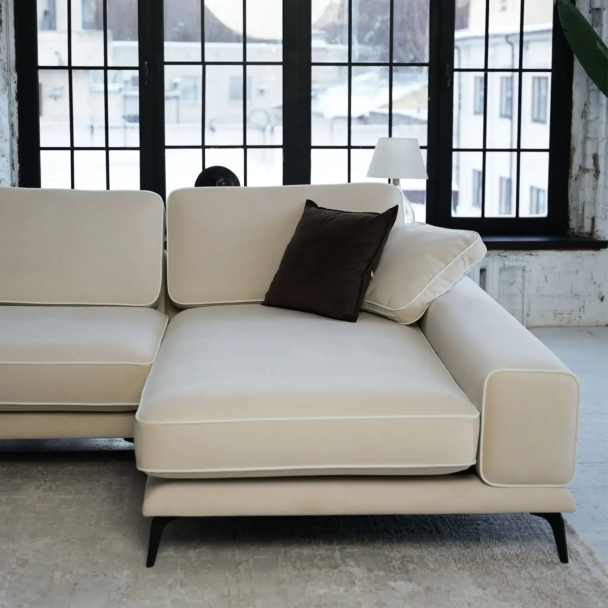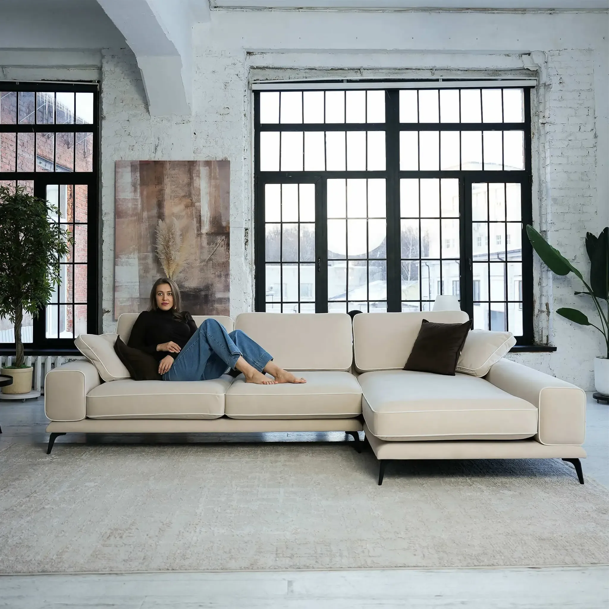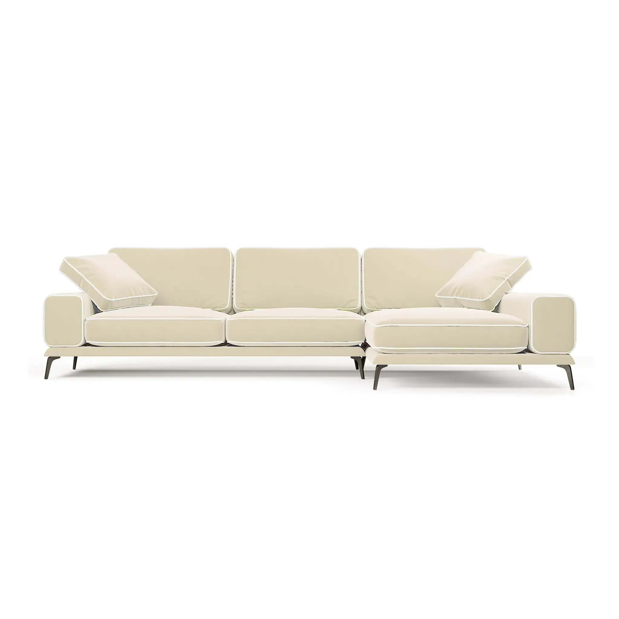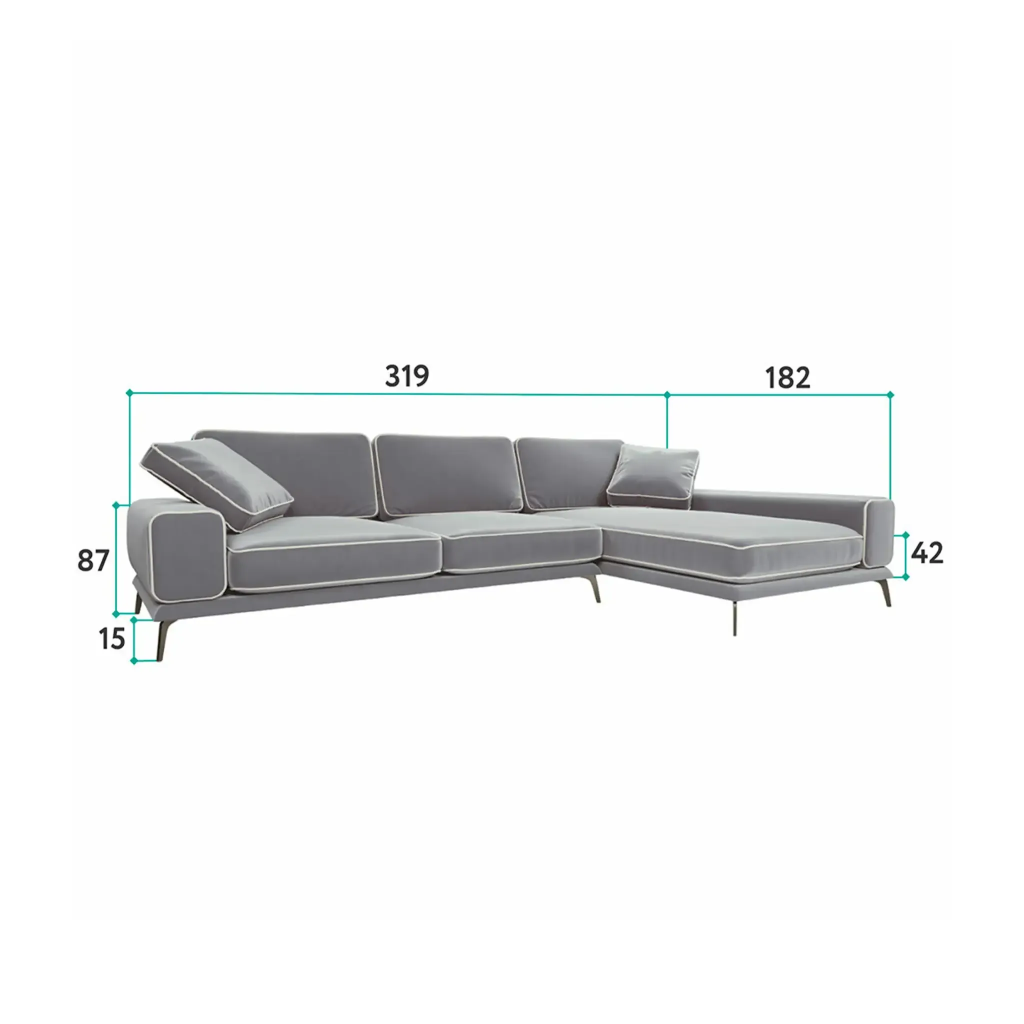 Диван Солнечное побережье отличается легкостью и воздушностью благодаря высоким ножкам, которые меняют визуальное восприятие объемов, создавая современный и стильный образ. Сбалансированный дизайн с широкими подлокотниками и пышными подушками создает ощущение комфорта и уюта. Почему вам понравится диван «Солнечное побережье»:  Гарантия 18 месяцев: мы уверены в качестве своей продукции. Внутри дивана находится гипоаллергенный высокоэластичный наполнитель «Аселекс», который сохраняет заданную форму годами. Обивка велюр Novus от Chistetika: технология Waterproof делает ткань устойчивой к влаге и, благодаря этому, обивка долговечна и проста в уходе. Универсальный угол: вы можете установить его на правую или левую сторону. Высокие ножки облегчают уборку под диваном. Подушки в комплекте: мягкость и уют для максимального комфорта.  Ширина дивана делает его идеальным выбором для владельцев малогабаритных квартир, желающих добавить комфорт и уют в свое пространство. Мягкие подушки обеспечивают тепло и уют, а разнообразие обивочных тканей помогает подобрать идеальный вариант для вашего интерьера. Спинка и сиденье выполнены из высокоэластичного полиуретана, а прочные металлические ножки обеспечивают дополнительную устойчивость. Характеристики  Габариты: 319x182x87 см Высота сиденья: 42 см Максимальная нагрузка: 220 кг Нераскладной интерьерный диван Прочный каркас из высококачественной фанеры  Фабрика D1 является российским производителем мебели. Мы осуществляем полный производственный цикл всего представленного ассортимента. Все используемые материалы и комплектующие сертифицированы и соответствуют САНПиН. На всю нашу продукцию мы даём гарантию 18 месяцев.
