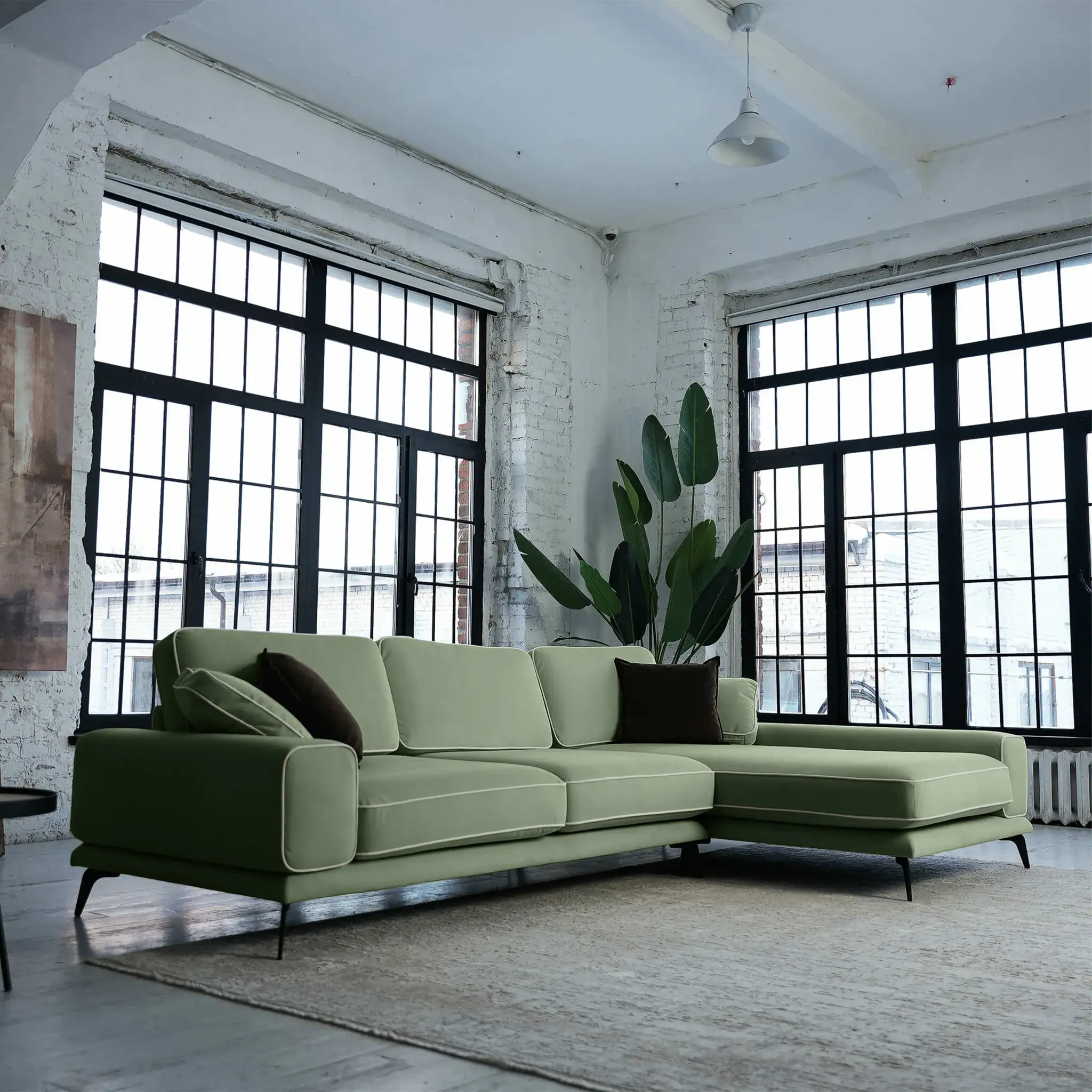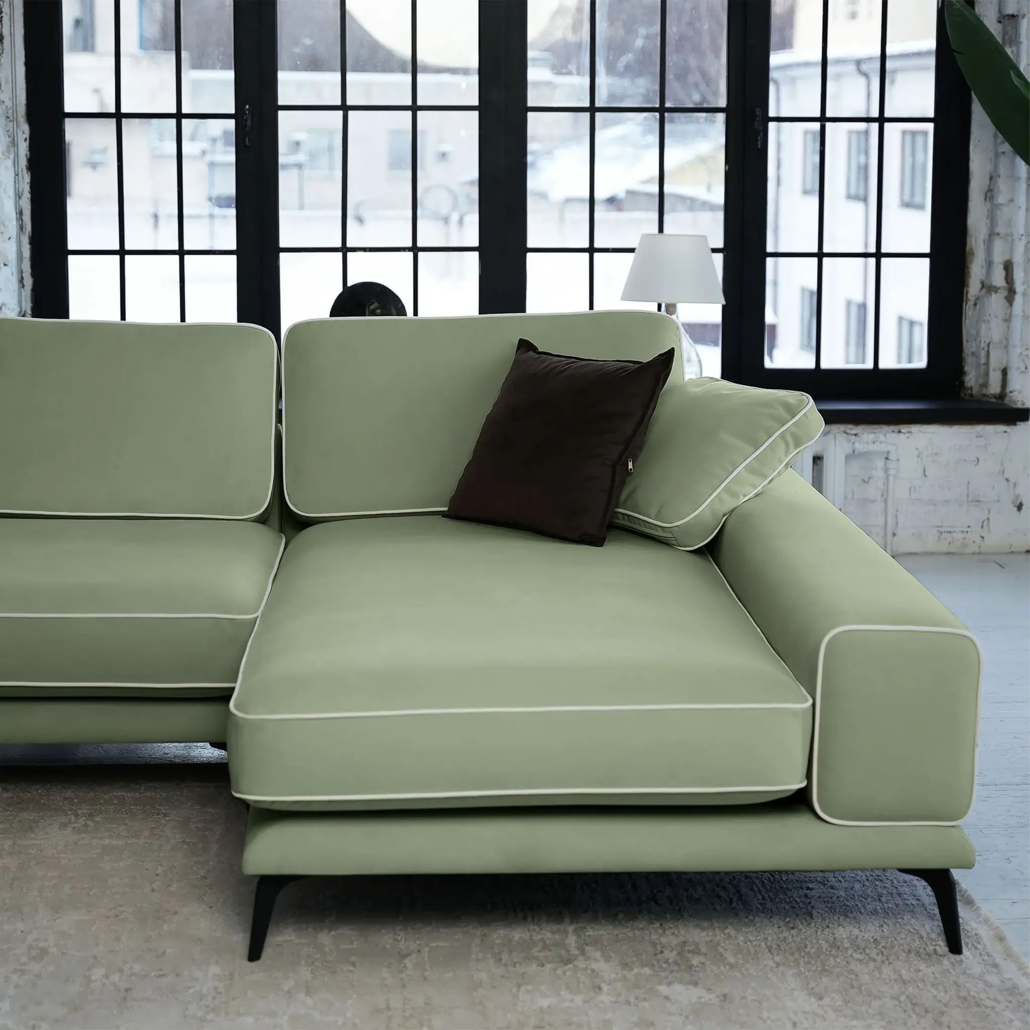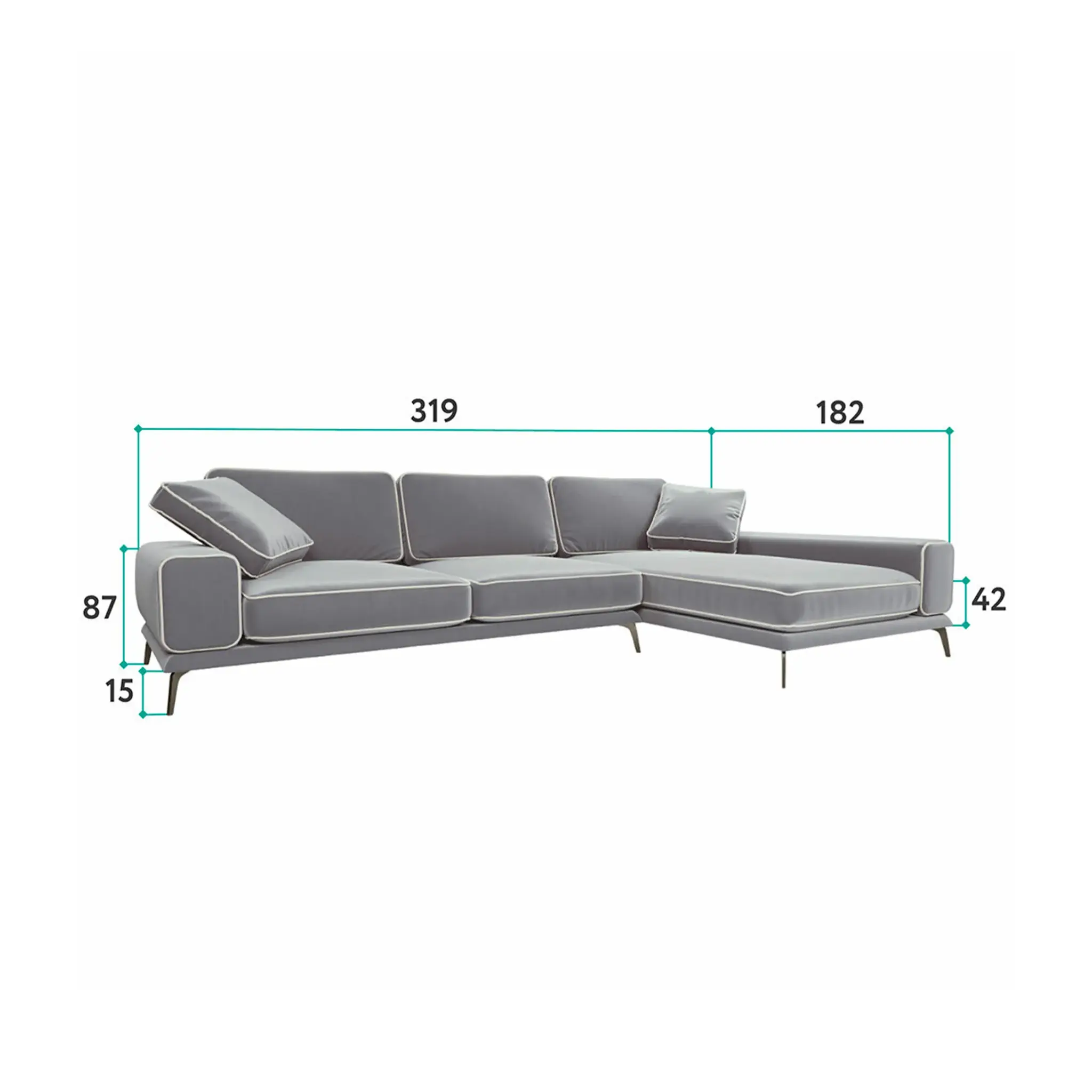 Диван Солнечное побережье отличается легкостью и воздушностью благодаря высоким ножкам, которые меняют визуальное восприятие объемов, создавая современный и стильный образ. Сбалансированный дизайн с широкими подлокотниками и пышными подушками создает ощущение комфорта и уюта. Почему вам понравится диван «Солнечное побережье»:  Гарантия 18 месяцев: мы уверены в качестве своей продукции. Внутри дивана находится гипоаллергенный высокоэластичный наполнитель «Аселекс», который сохраняет заданную форму годами. Обивка велюр Novus от Chistetika: технология Waterproof делает ткань устойчивой к влаге и, благодаря этому, обивка долговечна и проста в уходе. Универсальный угол: вы можете установить его на правую или левую сторону. Высокие ножки облегчают уборку под диваном. Подушки в комплекте: мягкость и уют для максимального комфорта.  Ширина дивана делает его идеальным выбором для владельцев малогабаритных квартир, желающих добавить комфорт и уют в свое пространство. Мягкие подушки обеспечивают тепло и уют, а разнообразие обивочных тканей помогает подобрать идеальный вариант для вашего интерьера. Спинка и сиденье выполнены из высокоэластичного полиуретана, а прочные металлические ножки обеспечивают дополнительную устойчивость. Характеристики  Габариты: 319x182x87 см Высота сиденья: 42 см Максимальная нагрузка: 220 кг Нераскладной интерьерный диван Прочный каркас из высококачественной фанеры  Фабрика D1 является российским производителем мебели. Мы осуществляем полный производственный цикл всего представленного ассортимента. Все используемые материалы и комплектующие сертифицированы и соответствуют САНПиН. На всю нашу продукцию мы даём гарантию 18 месяцев.