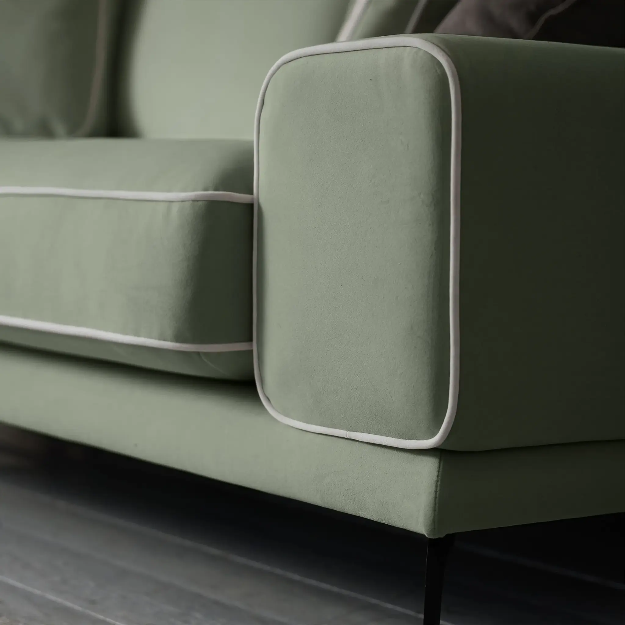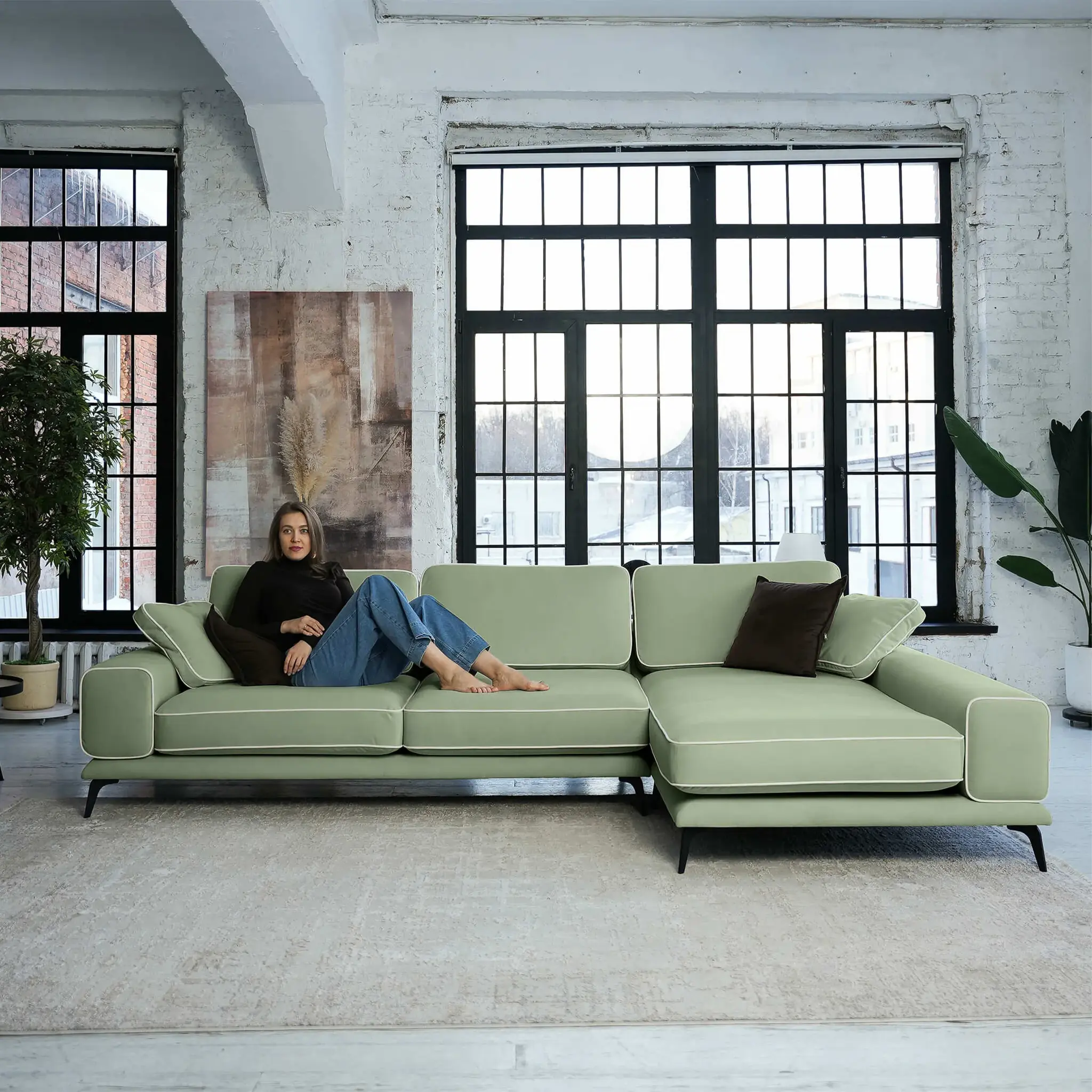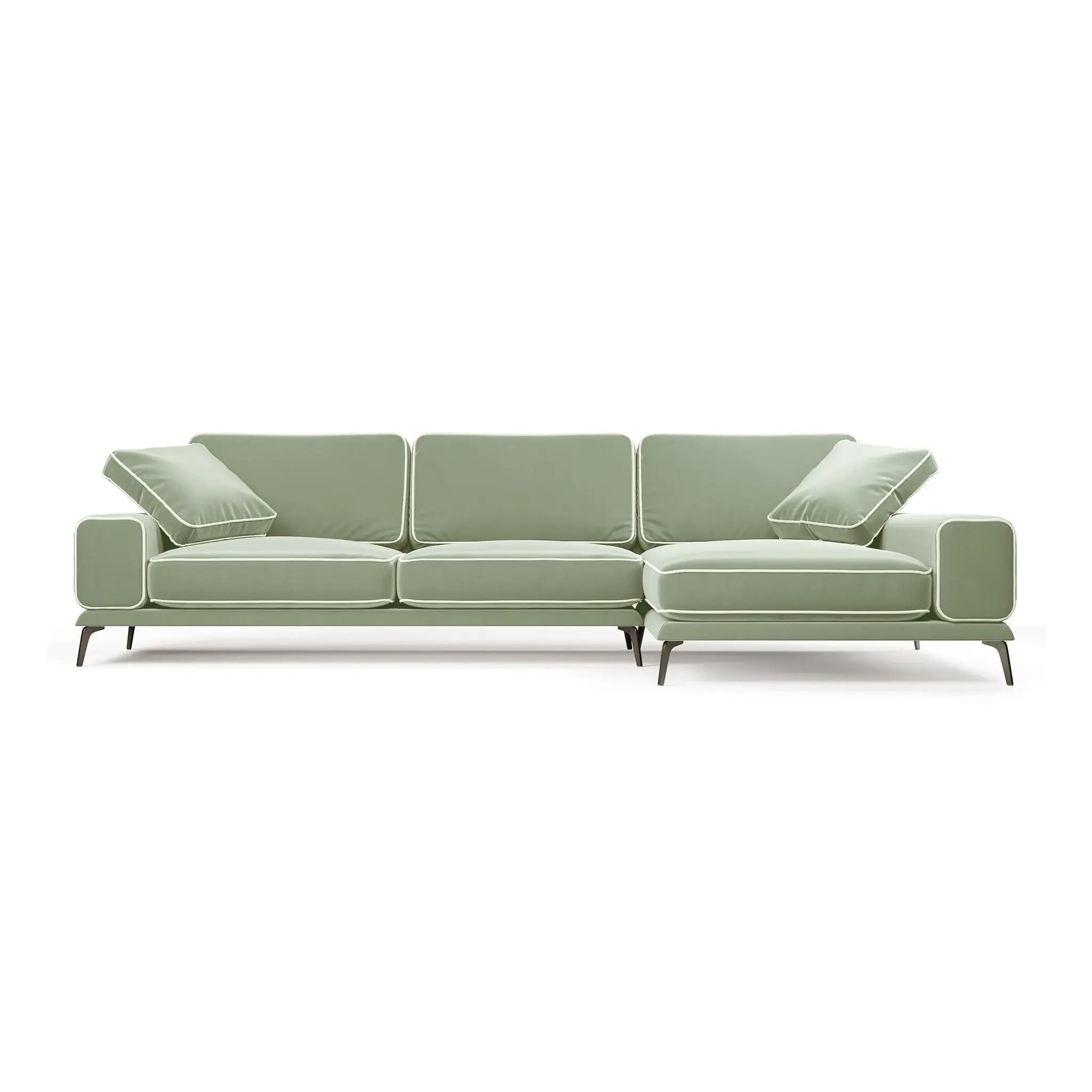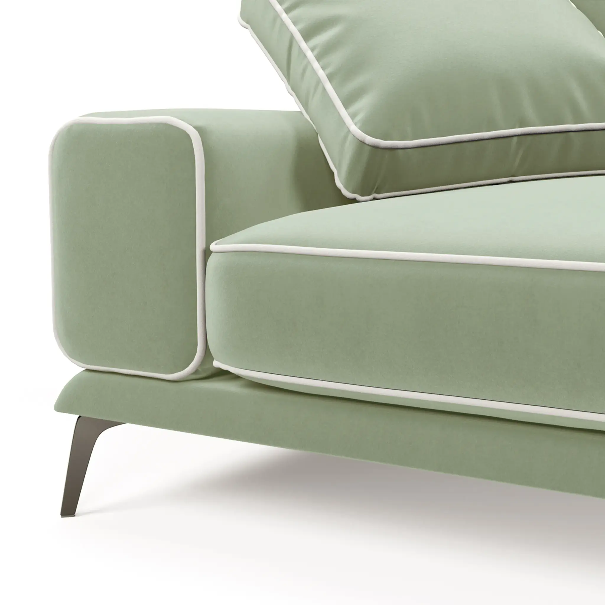 Диван Солнечное побережье отличается легкостью и воздушностью благодаря высоким ножкам, которые меняют визуальное восприятие объемов, создавая современный и стильный образ. Сбалансированный дизайн с широкими подлокотниками и пышными подушками создает ощущение комфорта и уюта. Почему вам понравится диван «Солнечное побережье»:  Гарантия 18 месяцев: мы уверены в качестве своей продукции. Внутри дивана находится гипоаллергенный высокоэластичный наполнитель «Аселекс», который сохраняет заданную форму годами. Обивка велюр Novus от Chistetika: технология Waterproof делает ткань устойчивой к влаге и, благодаря этому, обивка долговечна и проста в уходе. Универсальный угол: вы можете установить его на правую или левую сторону. Высокие ножки облегчают уборку под диваном. Подушки в комплекте: мягкость и уют для максимального комфорта.  Ширина дивана делает его идеальным выбором для владельцев малогабаритных квартир, желающих добавить комфорт и уют в свое пространство. Мягкие подушки обеспечивают тепло и уют, а разнообразие обивочных тканей помогает подобрать идеальный вариант для вашего интерьера. Спинка и сиденье выполнены из высокоэластичного полиуретана, а прочные металлические ножки обеспечивают дополнительную устойчивость. Характеристики  Габариты: 319x182x87 см Высота сиденья: 42 см Максимальная нагрузка: 220 кг Нераскладной интерьерный диван Прочный каркас из высококачественной фанеры  Фабрика D1 является российским производителем мебели. Мы осуществляем полный производственный цикл всего представленного ассортимента. Все используемые материалы и комплектующие сертифицированы и соответствуют САНПиН. На всю нашу продукцию мы даём гарантию 18 месяцев.
