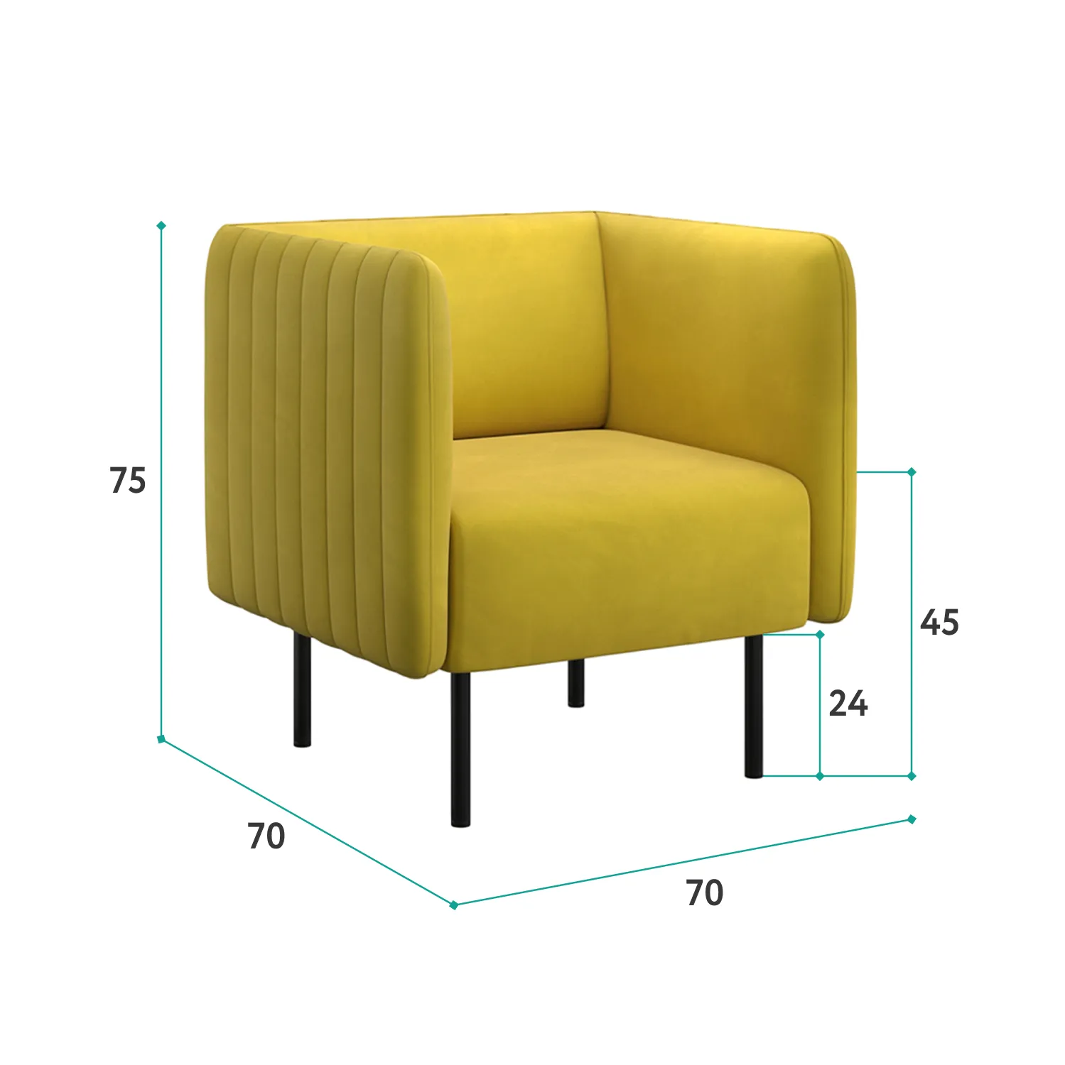 Ультрасовременное кресло РИО станет украшением дома, дачи, ресторана или офиса. Актуальный дизайн сочетается с удобством модели. Комфортное сиденье располагается на минималистичных ножках. Кресло смотрится легко и воздушно! Доступны яркие и нейтральные цвета обивки. ОБИВКА Обивка кресла - мягкий бархатистый велюр. Это тактильно приятная и очень практичная ткань.· Обивка имеет повышенный уровень износоустойчивости 60 000 циклов (по тесту Мартиндейла).· Ткань рекомендована для владельцев домашних животных.· Для велюра пригодна профессиональная химчистка, сухая чистка и чистка влажной губкой. ОСНОВАНИЕ Высокоплотный ППУ-матрас располагается на основании из пружинных змеек. Это гарантирует удобство и комфорт при отдыхе на кресле. КАРКАС В конструкции кресла используются сертифицированные материалы из натурального дерева и экологичная фанера. Каркас надежный, прочный, долговечный и безопасный! Характеристики:  Габариты (см): 70х70х75 Высота посадочного места (см): 45 Каркас: Фанера / ДСП Высота ножек (см): 22 Вес (кг): 17  Фабрика D1 является российским производителем мебели. Мы осуществляем полный производственный цикл всего представленного ассортимента. Все используемые материалы и комплектующие сертифицированы и соответствуют САНПиН. На всю нашу продукцию мы даём гарантию 18 месяцев.