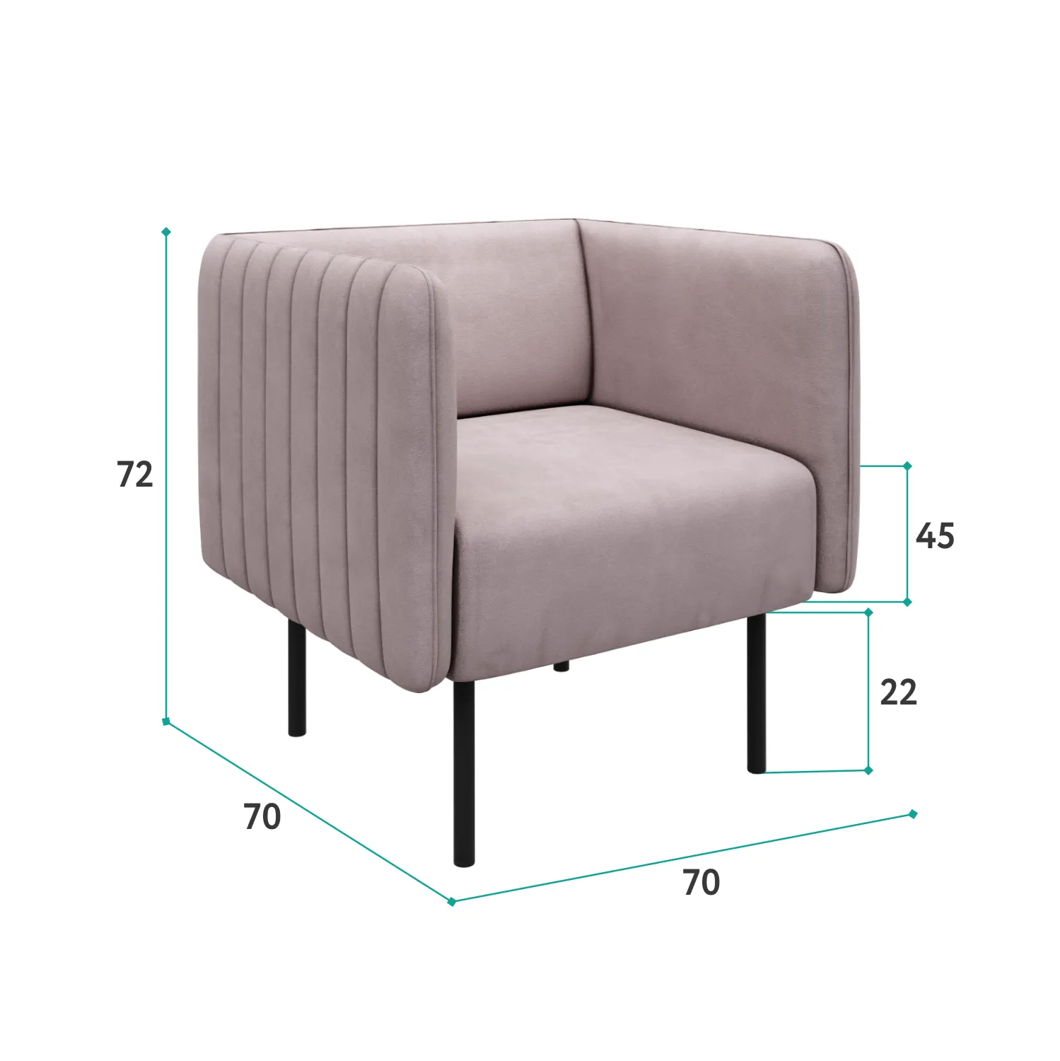 Ультрасовременное кресло РИО станет украшением дома, дачи, ресторана или офиса. Актуальный дизайн сочетается с удобством модели. Комфортное сиденье располагается на минималистичных ножках. Кресло смотрится легко и воздушно! Доступны яркие и нейтральные цвета обивки. ОБИВКА Обивка кресла - мягкий бархатистый велюр. Это тактильно приятная и очень практичная ткань.· Обивка имеет повышенный уровень износоустойчивости 60 000 циклов (по тесту Мартиндейла).· Ткань рекомендована для владельцев домашних животных.· Для велюра пригодна профессиональная химчистка, сухая чистка и чистка влажной губкой. ОСНОВАНИЕ Высокоплотный ППУ-матрас располагается на основании из пружинных змеек. Это гарантирует удобство и комфорт при отдыхе на кресле. КАРКАС В конструкции кресла используются сертифицированные материалы из натурального дерева и экологичная фанера. Каркас надежный, прочный, долговечный и безопасный! Характеристики:  Габариты (см): 70х70х75 Высота посадочного места (см): 45 Каркас: Фанера / ДСП Высота ножек (см): 22 Вес (кг): 17  Фабрика D1 является российским производителем мебели. Мы осуществляем полный производственный цикл всего представленного ассортимента. Все используемые материалы и комплектующие сертифицированы и соответствуют САНПиН. На всю нашу продукцию мы даём гарантию 18 месяцев.