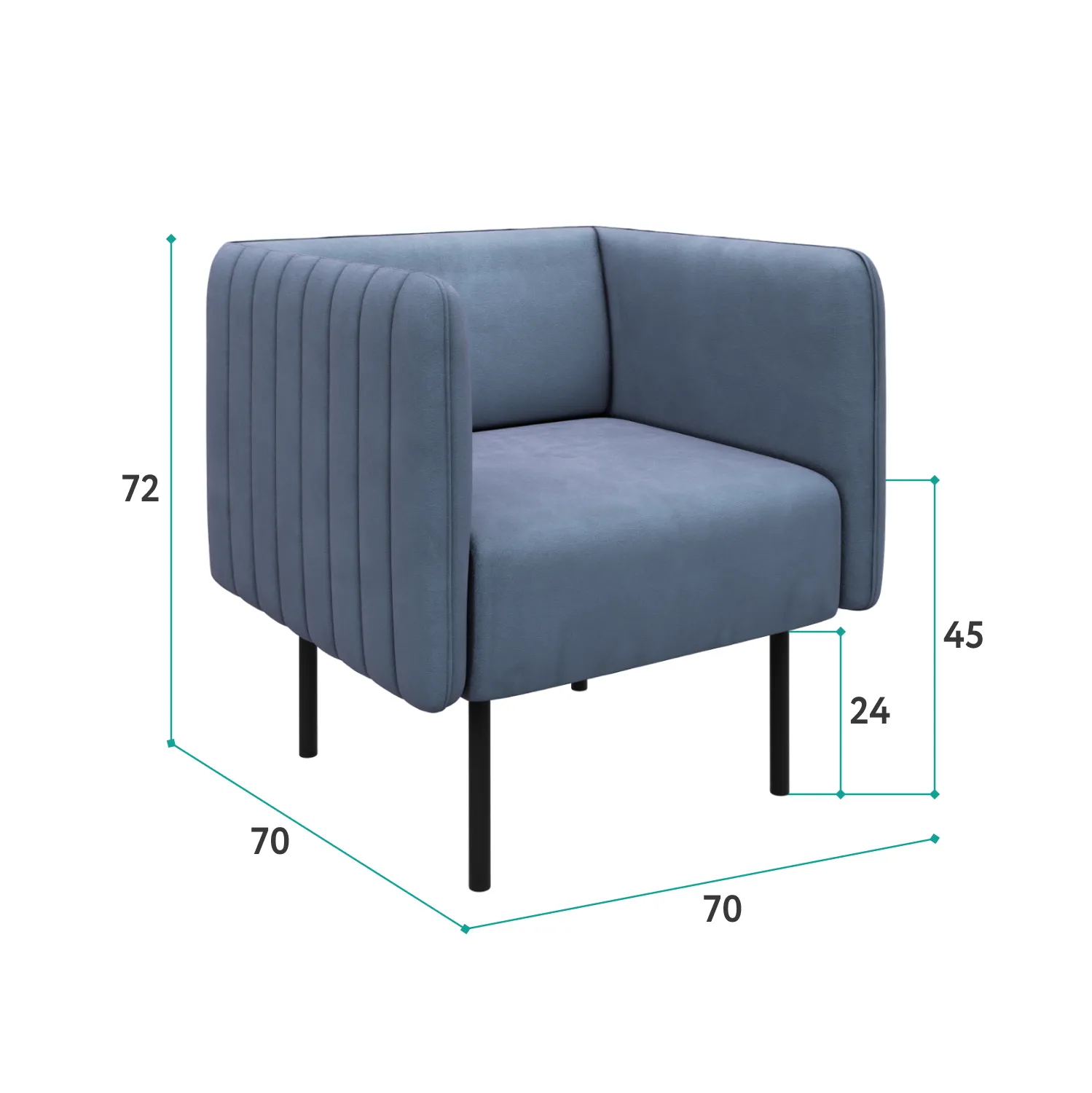 Ультрасовременное кресло РИО станет украшением дома, дачи, ресторана или офиса. Актуальный дизайн сочетается с удобством модели. Комфортное сиденье располагается на минималистичных ножках. Кресло смотрится легко и воздушно! Доступны яркие и нейтральные цвета обивки. ОБИВКА Обивка кресла - мягкий бархатистый велюр. Это тактильно приятная и очень практичная ткань.· Обивка имеет повышенный уровень износоустойчивости 60 000 циклов (по тесту Мартиндейла).· Ткань рекомендована для владельцев домашних животных.· Для велюра пригодна профессиональная химчистка, сухая чистка и чистка влажной губкой. ОСНОВАНИЕ Высокоплотный ППУ-матрас располагается на основании из пружинных змеек. Это гарантирует удобство и комфорт при отдыхе на кресле. КАРКАС В конструкции кресла используются сертифицированные материалы из натурального дерева и экологичная фанера. Каркас надежный, прочный, долговечный и безопасный! Характеристики:  Габариты (см): 70х70х75 Высота посадочного места (см): 45 Каркас: Фанера / ДСП Высота ножек (см): 22 Вес (кг): 17  Фабрика D1 является российским производителем мебели. Мы осуществляем полный производственный цикл всего представленного ассортимента. Все используемые материалы и комплектующие сертифицированы и соответствуют САНПиН. На всю нашу продукцию мы даём гарантию 18 месяцев.
