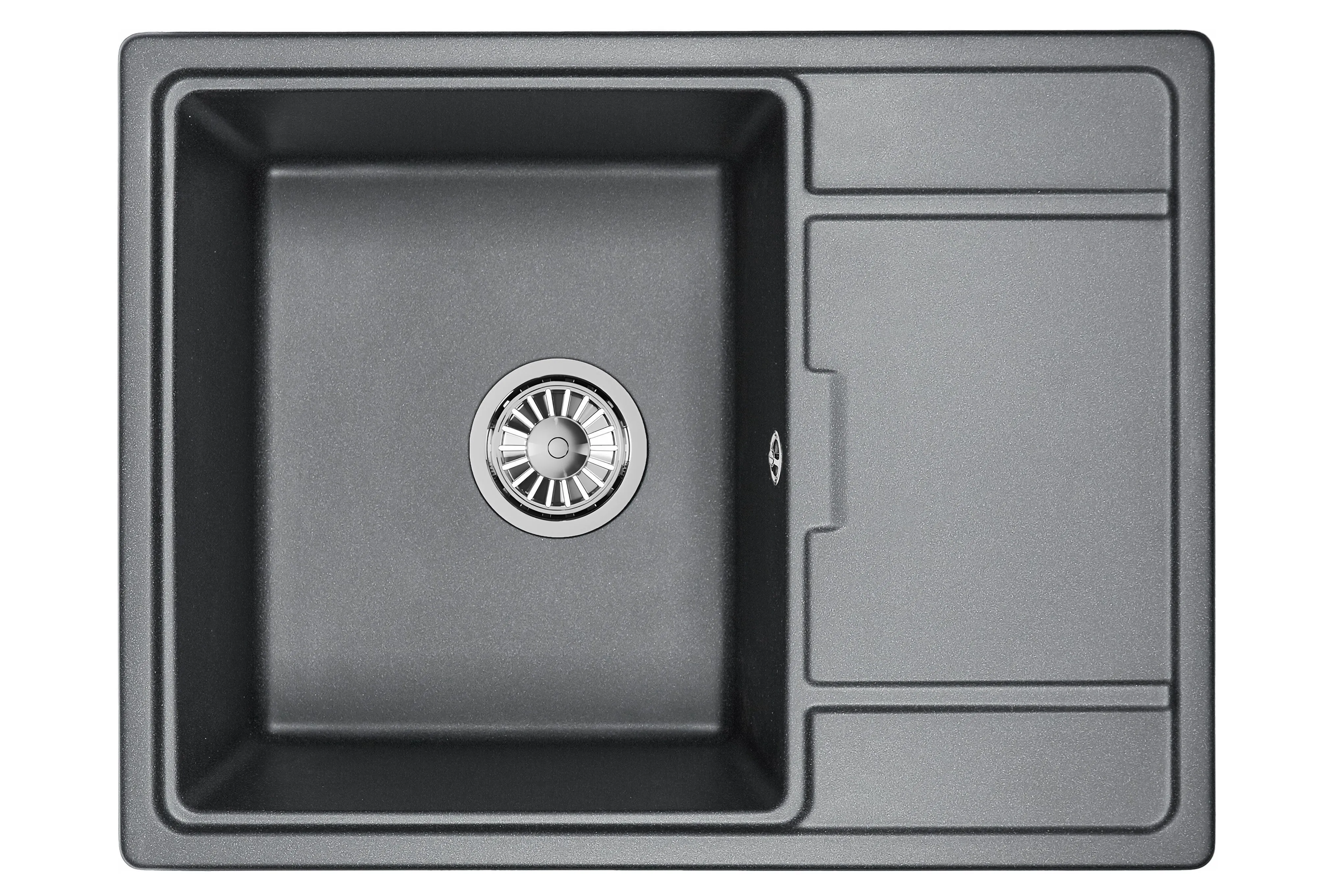 6002, ШВАРЦ (чёрный металлик), кухонная мойка, кварц