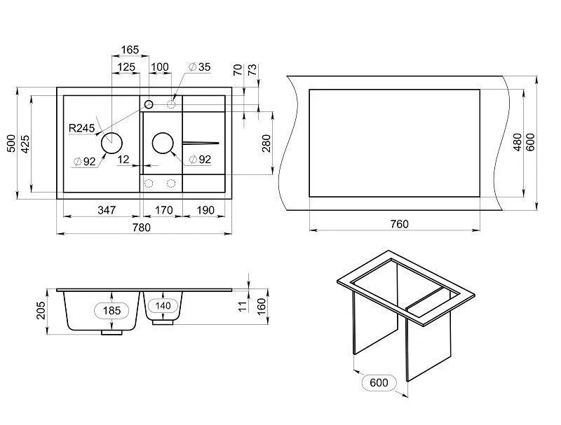 Эргономичная мойка, традиционной прямоугольной формы, с основной и дополнительной малой чашей. Удачное сочетание рационально спроектированных двух чаш и крыла, обеспечит идеальную рабочую атмосферу на кухне. Модель представлена в 10-и цветах.