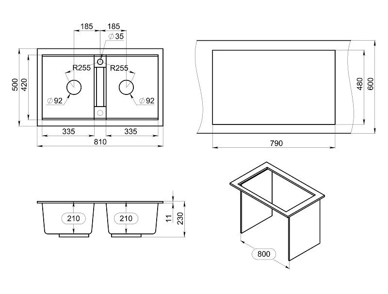 7802, ГРАФИТ (ЧЁРНО-СЕРЫЙ), кухонная мойка, кварц