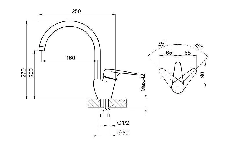 Отверстие под смеситель, мм