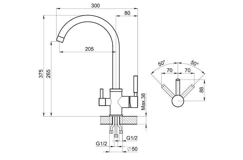 2088, ХРОМ, СМЕСИТЕЛЬ КУХОННЫЙ