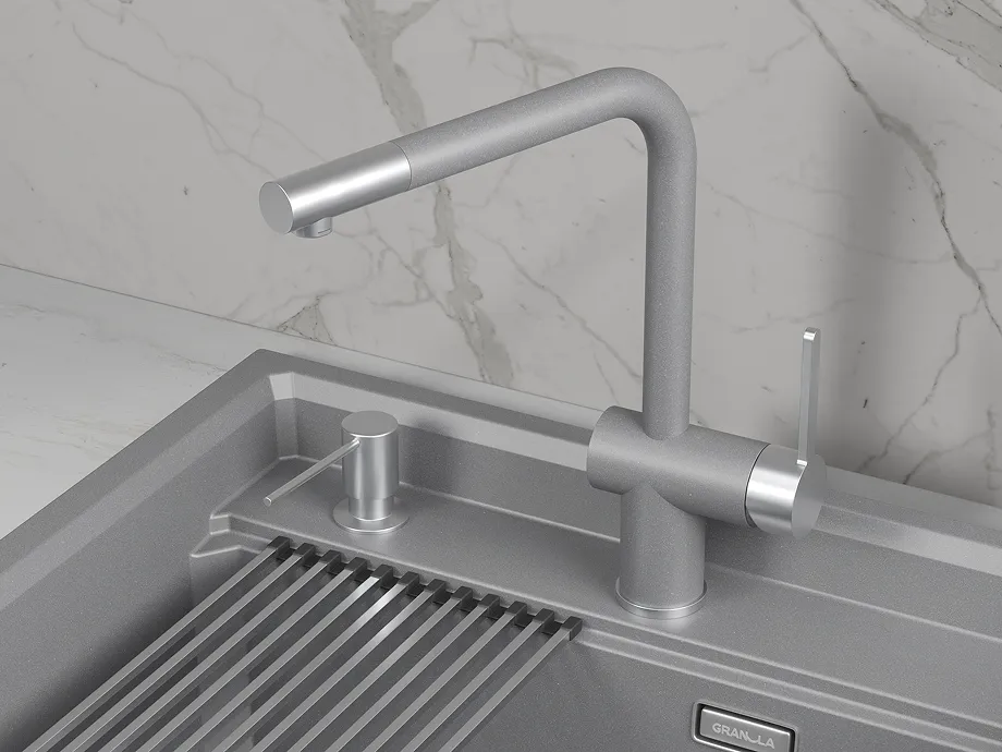 GR-8172, АЛЮМИНИУМ, СМЕСИТЕЛЬ КУХОННЫЙ С ВЫДВИЖНЫМ ИЗЛИВОМ