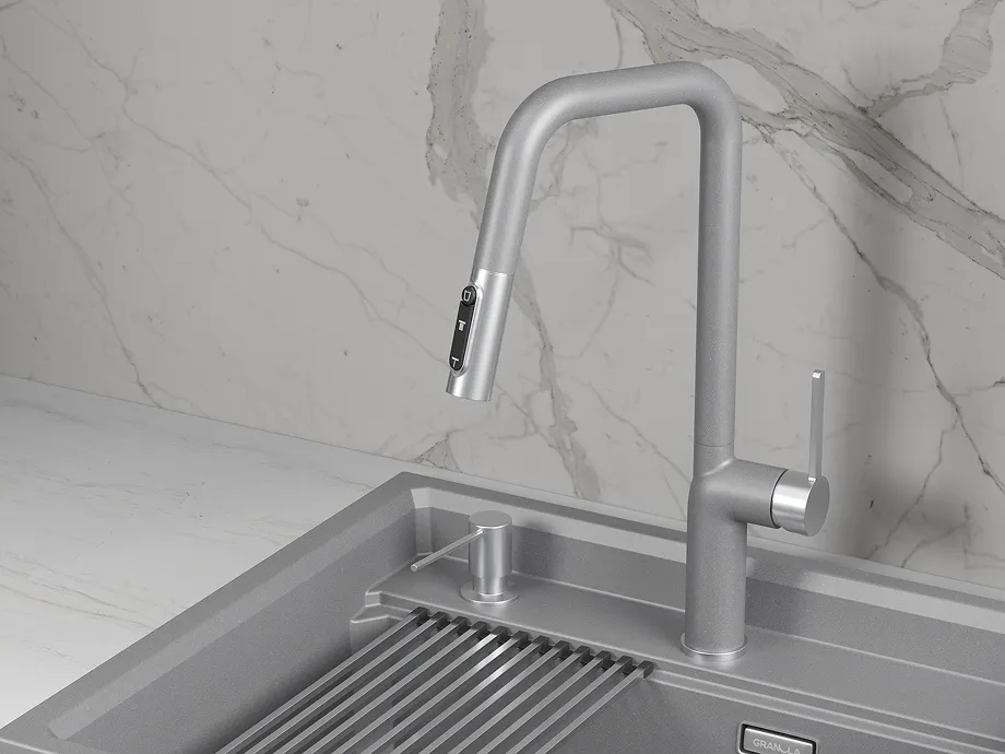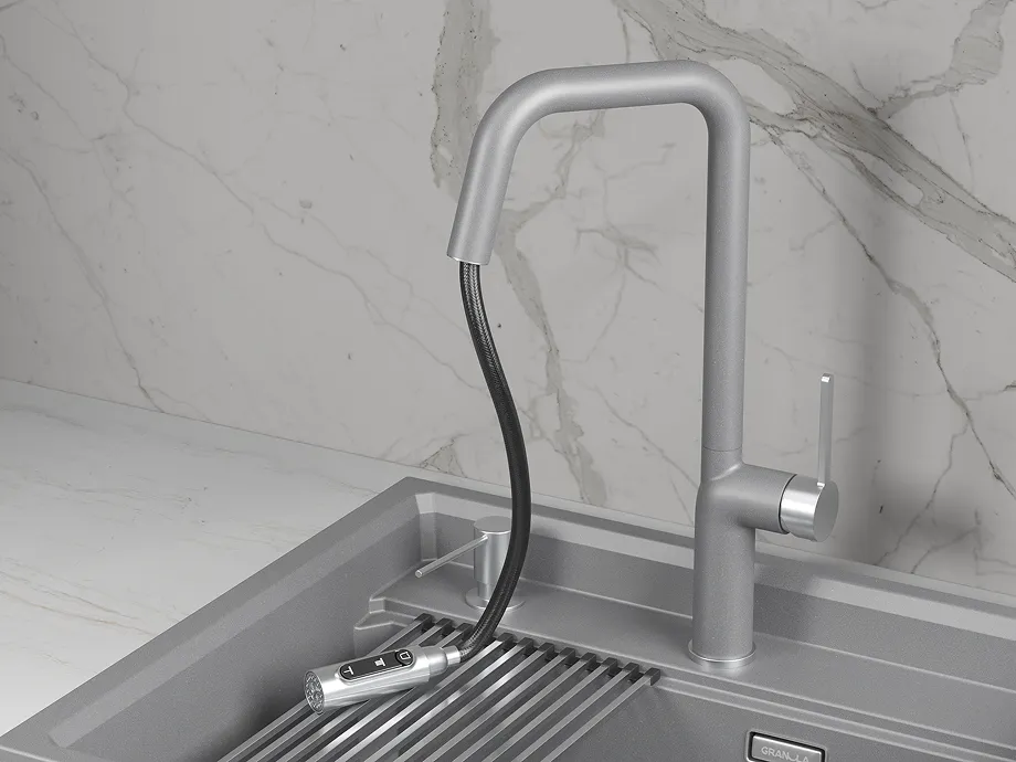 GR-8172, АЛЮМИНИУМ, СМЕСИТЕЛЬ КУХОННЫЙ С ВЫДВИЖНЫМ ИЗЛИВОМ