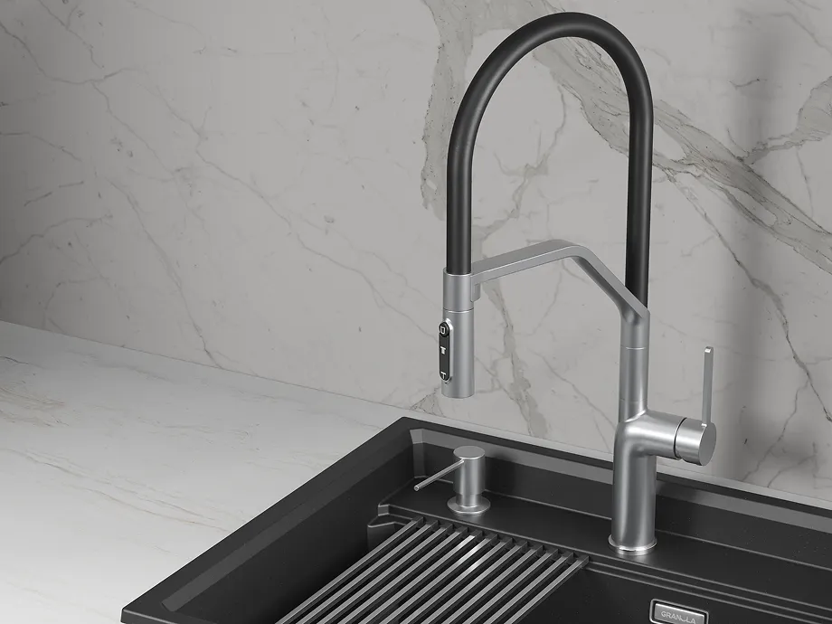 GR-8168, ЧЕРНЫЙ, СМЕСИТЕЛЬ КУХОННЫЙ С ВЫДВИЖНЫМ ИЗЛИВОМ