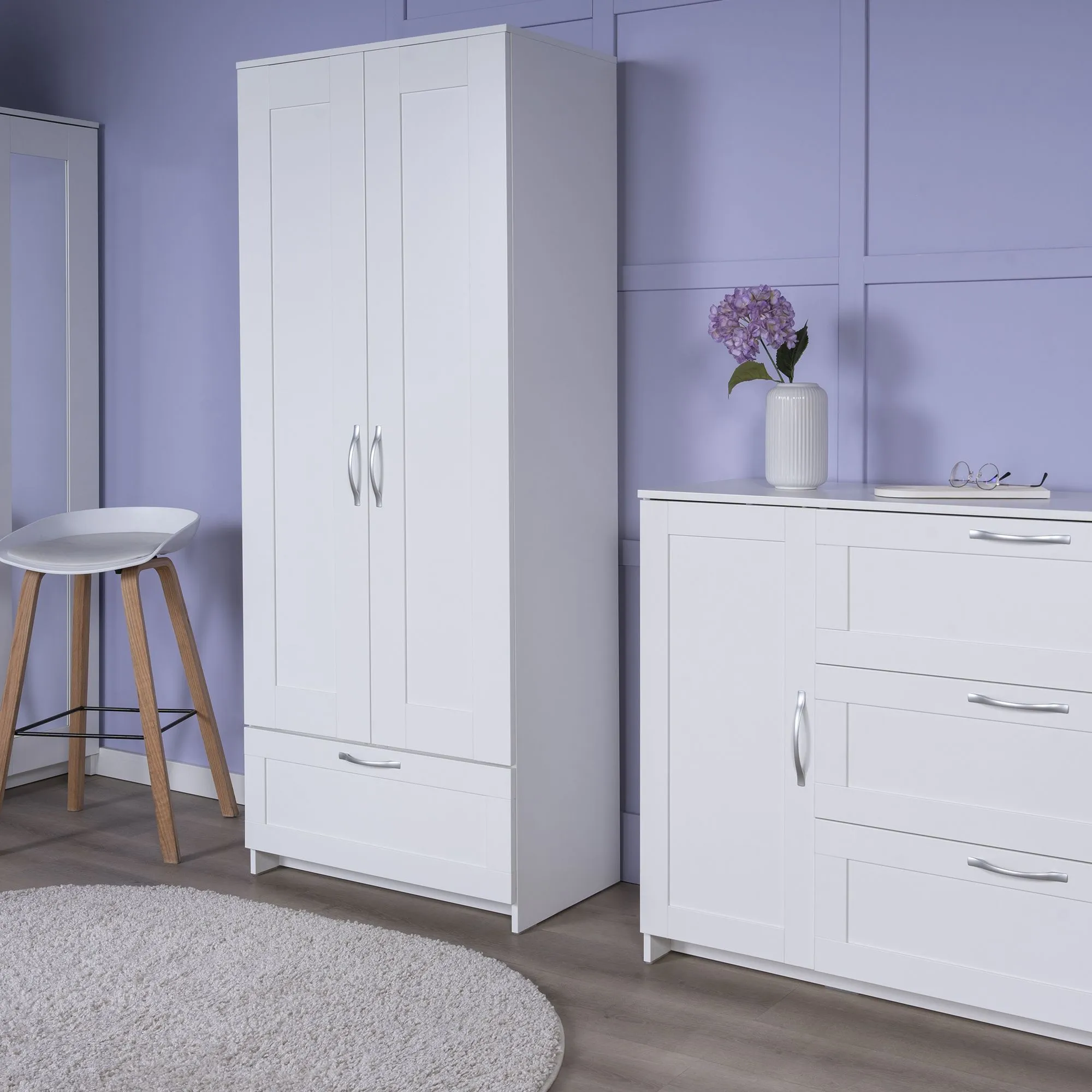 —2.02.01.240.1 СИРИУС шкаф для одежды 2 двери и 1 ящик белый RU