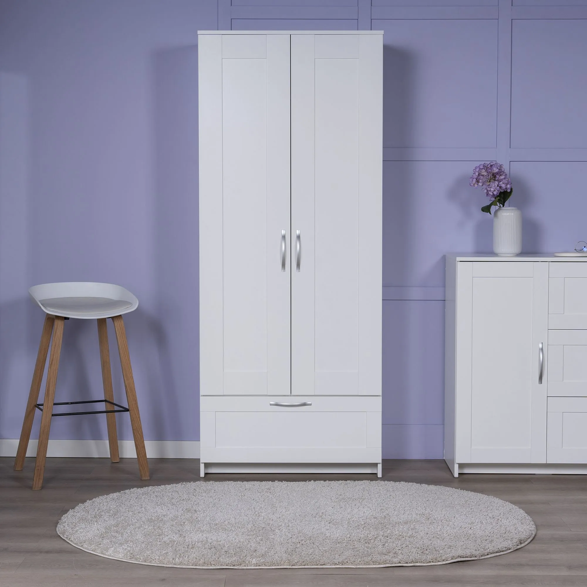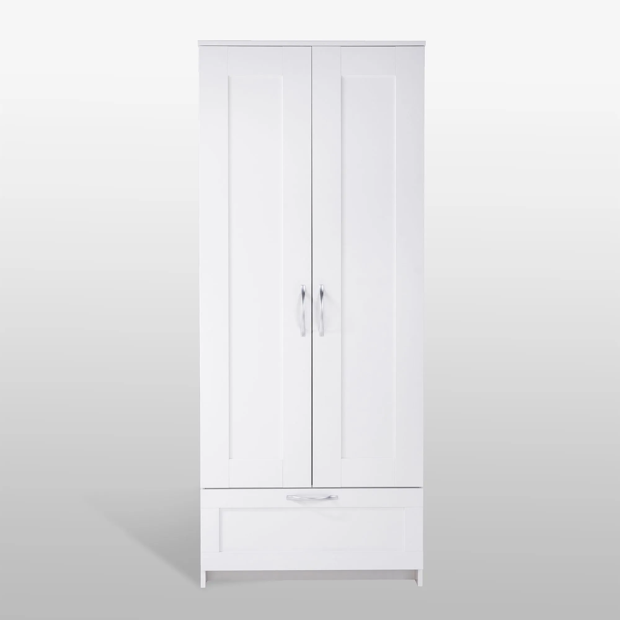 Шкаф СИРИУС для одежды двухдверный, с выдвижным ящиком, 782х412х1900, цвет Белый. Изготовлен из кашированного ДСП толщиной 16 мм. Крепится к стене. Гарантийный срок для жилых помещений 24 месяца, для общественных помещений - 18 месяцев.