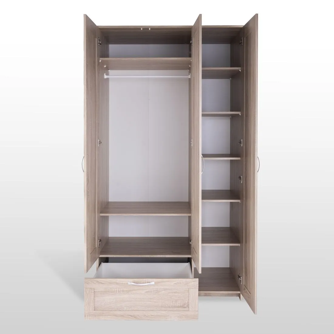 Шкаф СИРИУС комбинированный для одежды трехдверный, с выдвижным ящиком и одним зеркалом, 1171х585х2196, цвет Сонома. Изготовлен из кашированного ДСП толщиной 16 мм. Крепится к стене. Гарантийный срок для жилых помещений 24 месяца, для общественных помещений - 18 месяцев.