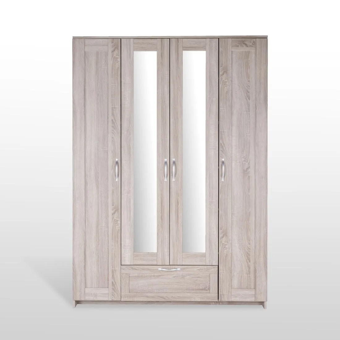 Шкаф СИРИУС комбинированный для одежды четырехдверный, с выдвижным ящиком и двумя зеркалами, 1560х585х2196, цвет Сонома. Изготовлен из кашированного ДСП толщиной 16 мм. Крепится к стене. Гарантийный срок для жилых помещений 24 месяца, для общественных помещений - 18 месяцев.
