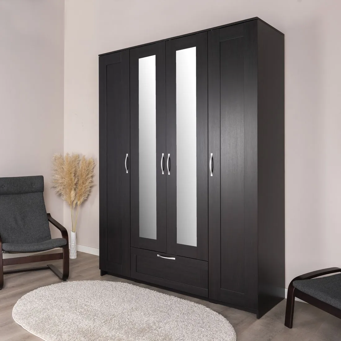 —2.02.01.520.5 СИРИУС шкаф 4 двери и 1 ящик 156х59х220 Дуб Венге RU (с 2 зеркалами)