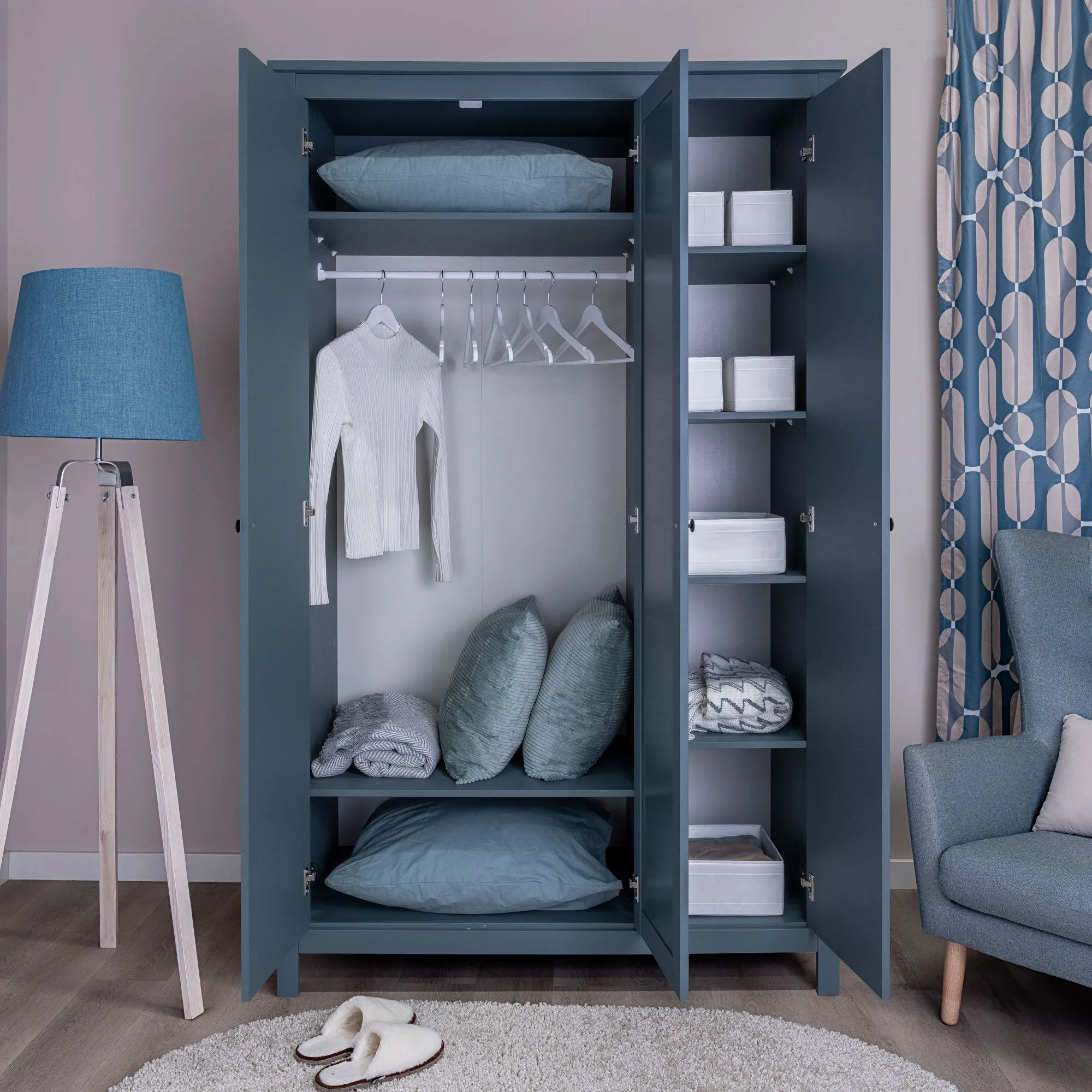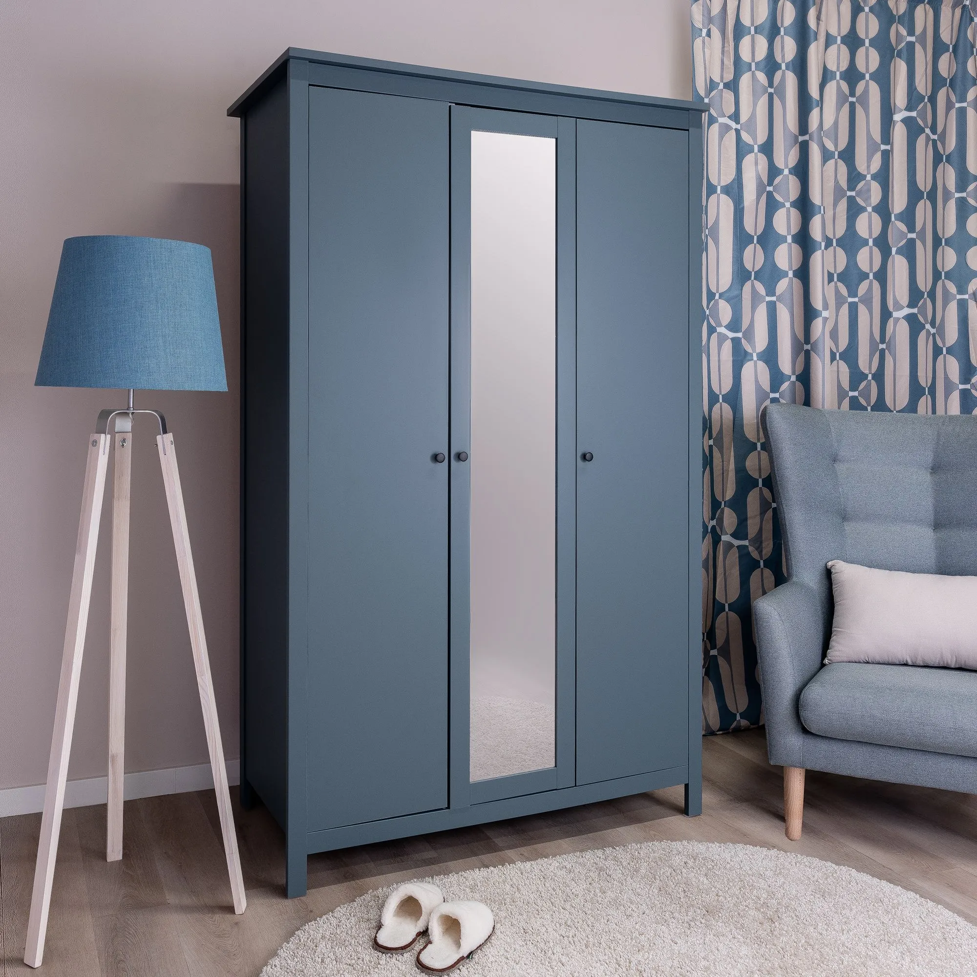 —2.08.01.040.6 САГА шкаф 3 двери с зеркалом темно-бирюзовый