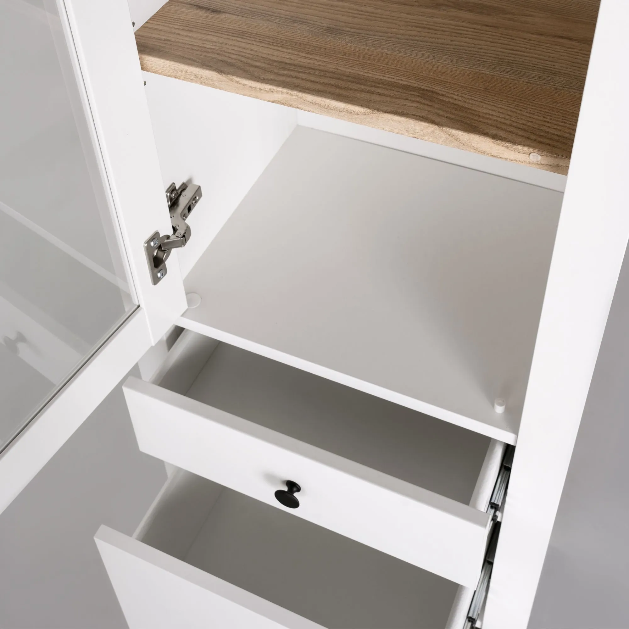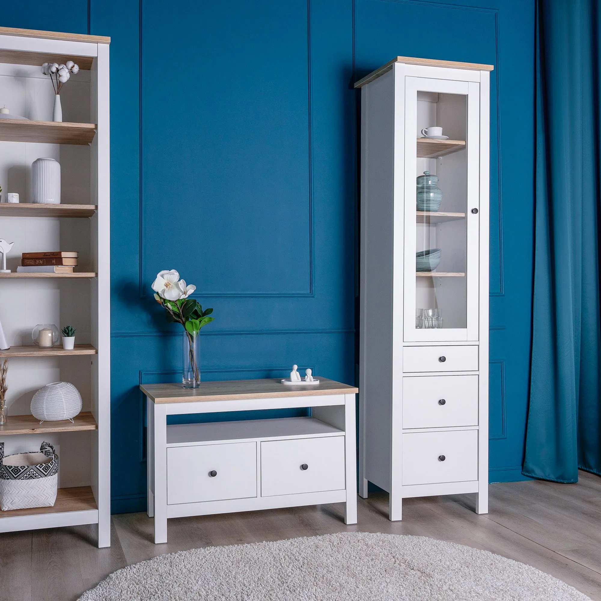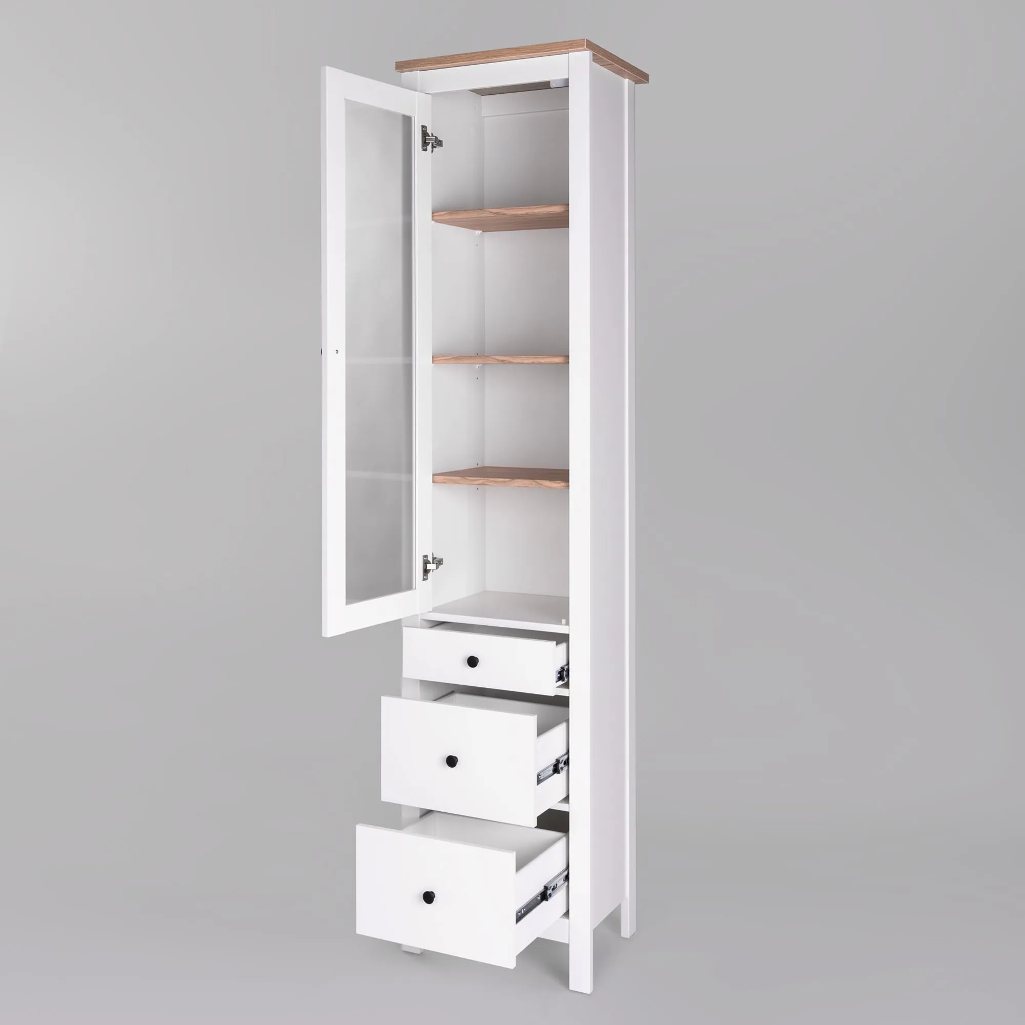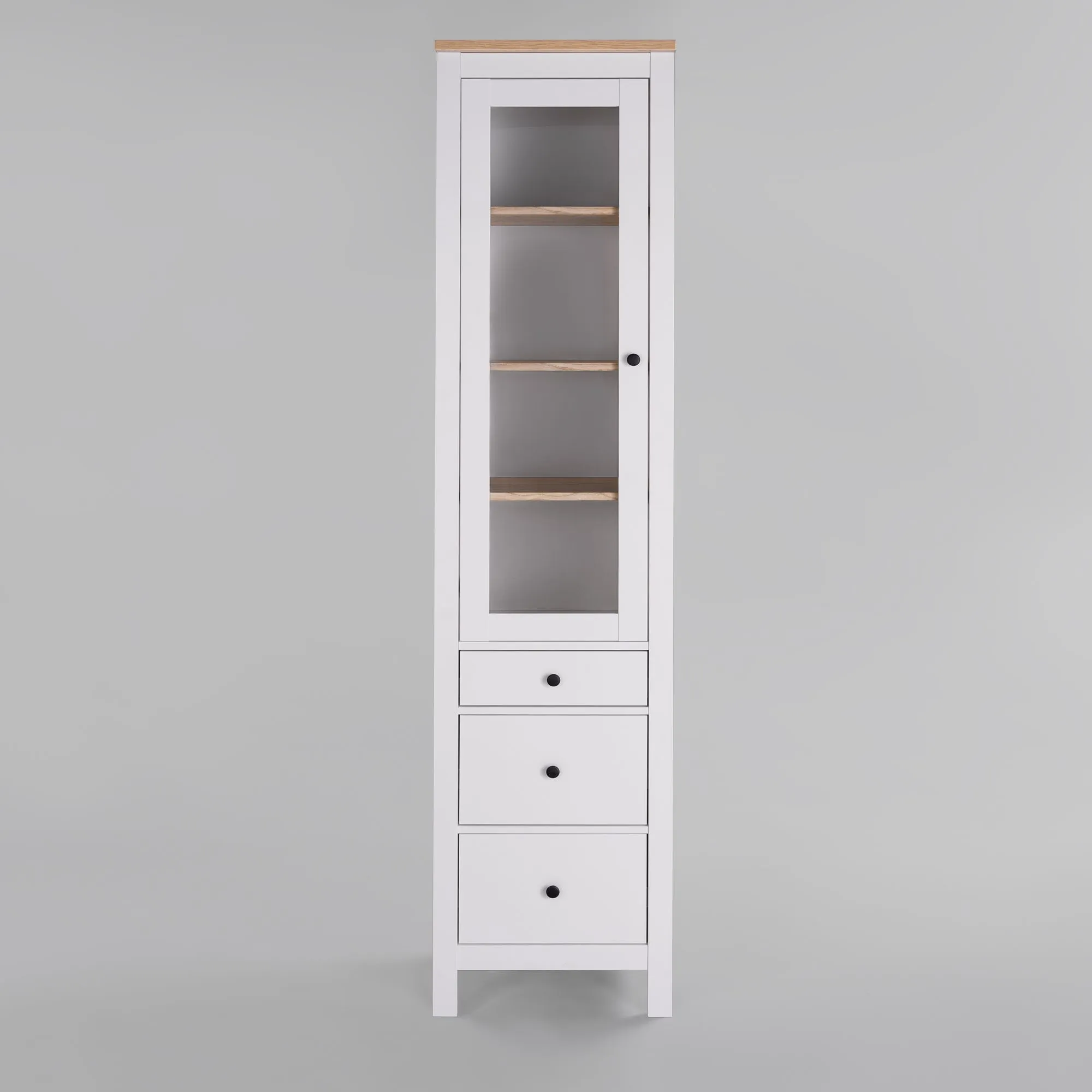 Шкаф витрина с одной стеклянной дверью и тремя выдвижными ящиками САГА, узкая
