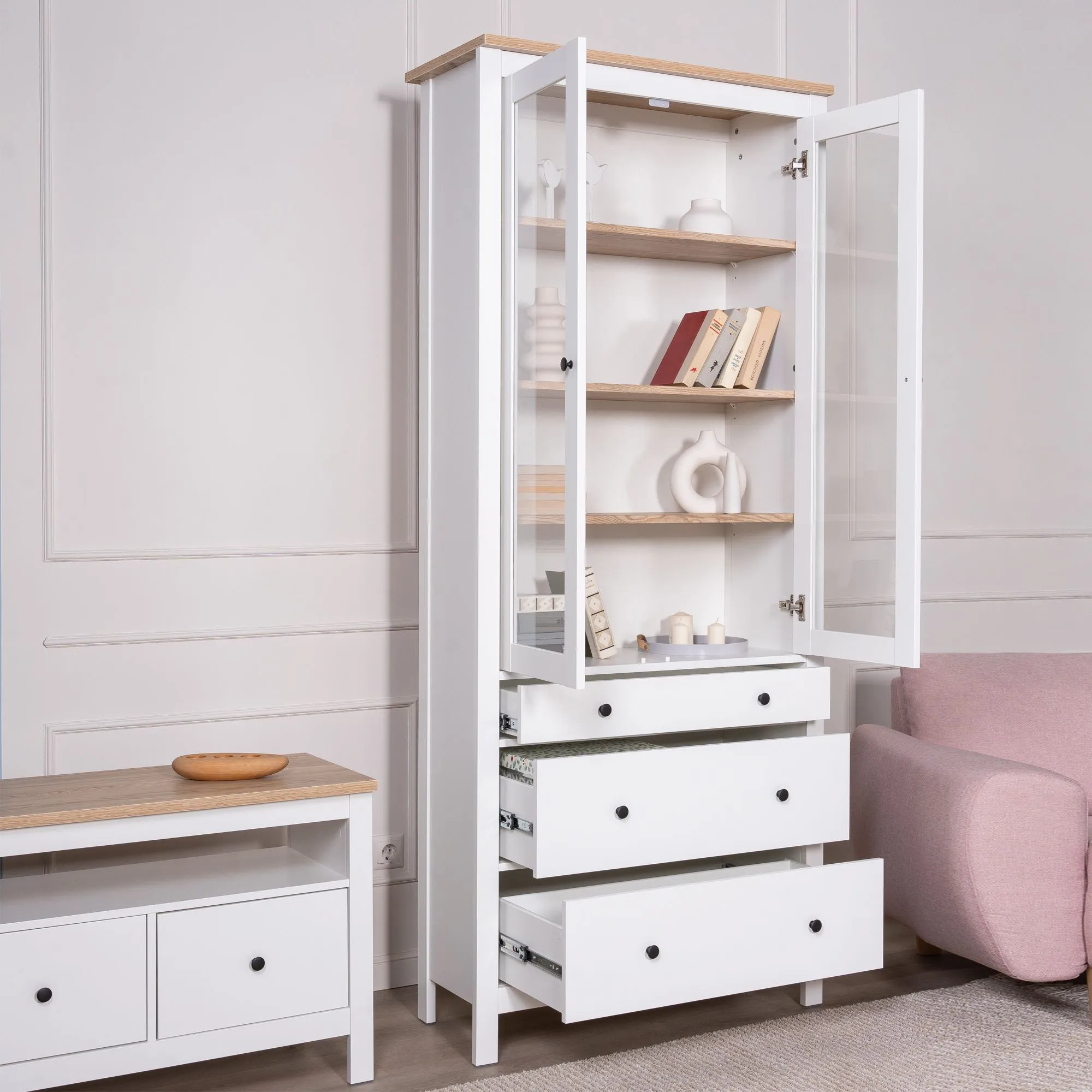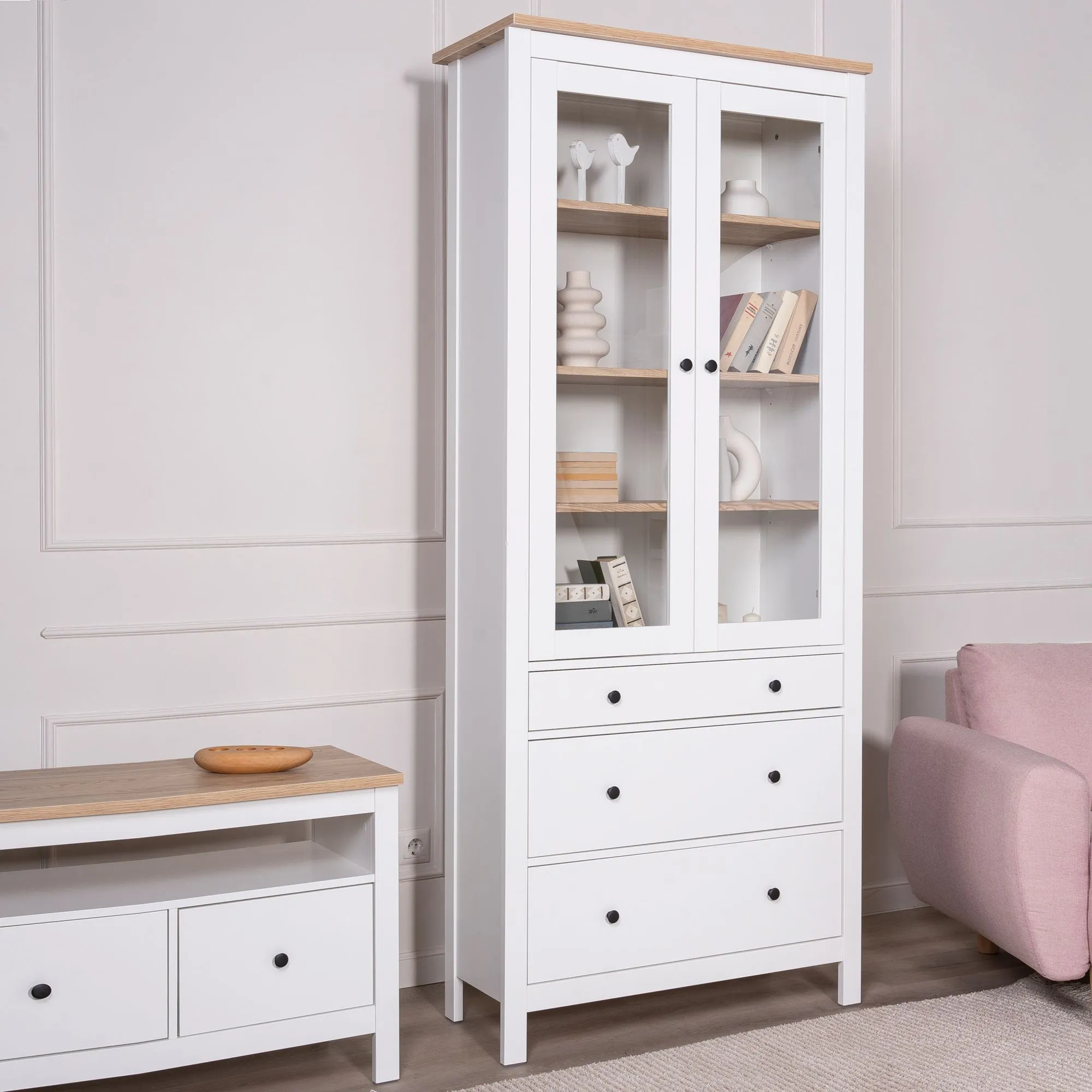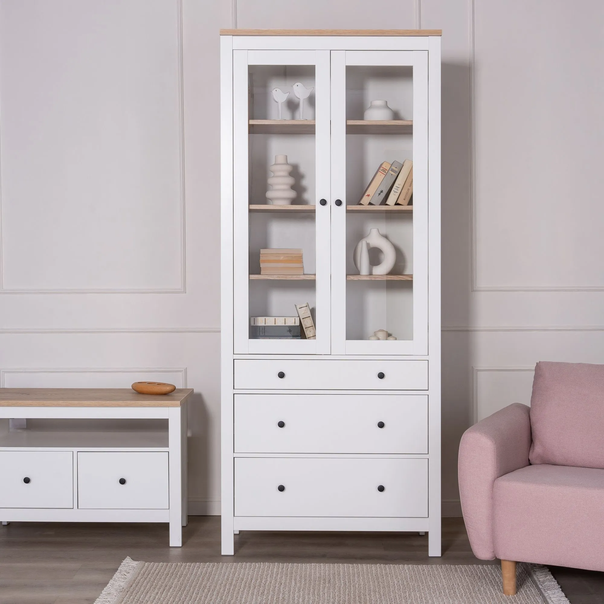 —2.08.07.130.14 САГА шкаф с витриной 90 белый/ясень RU