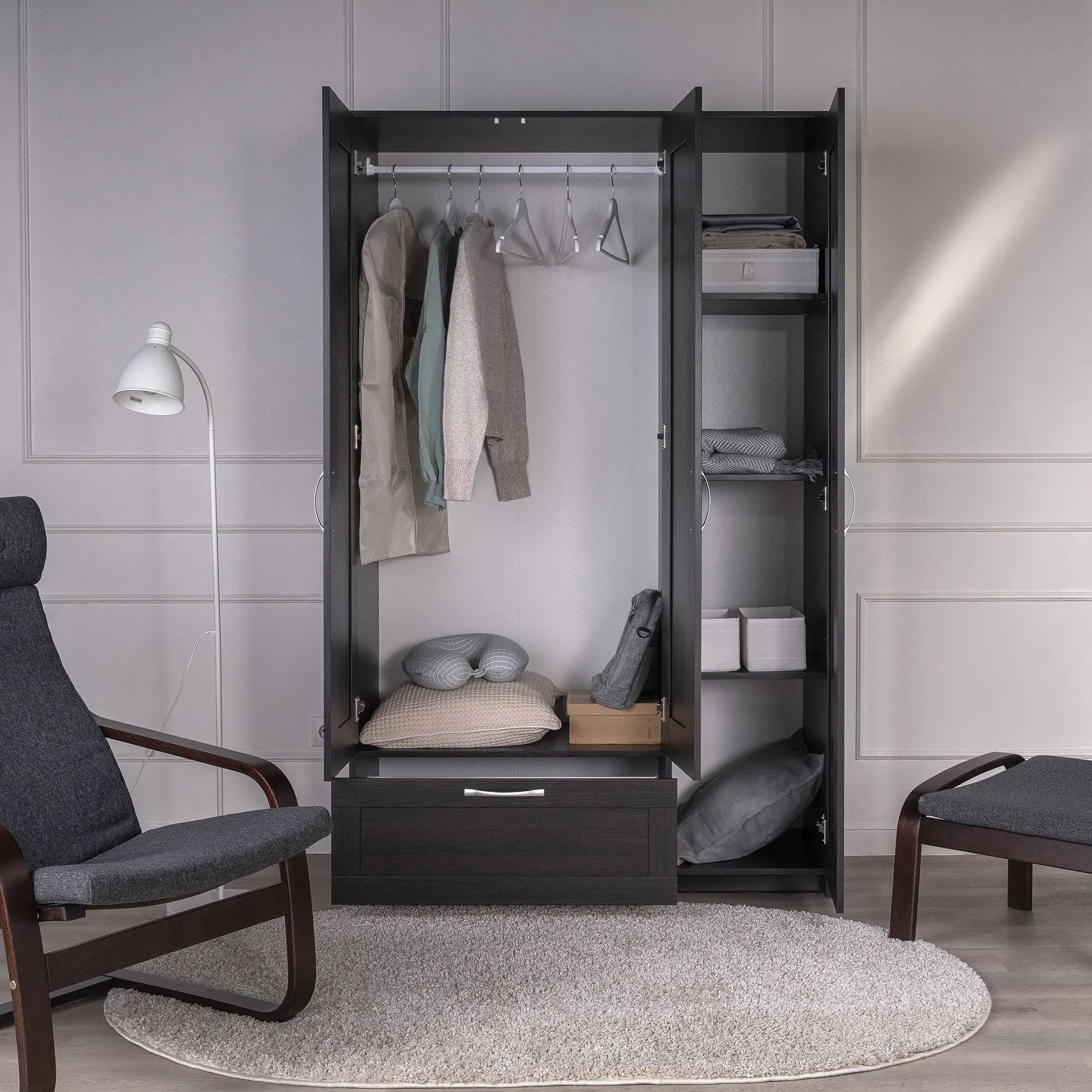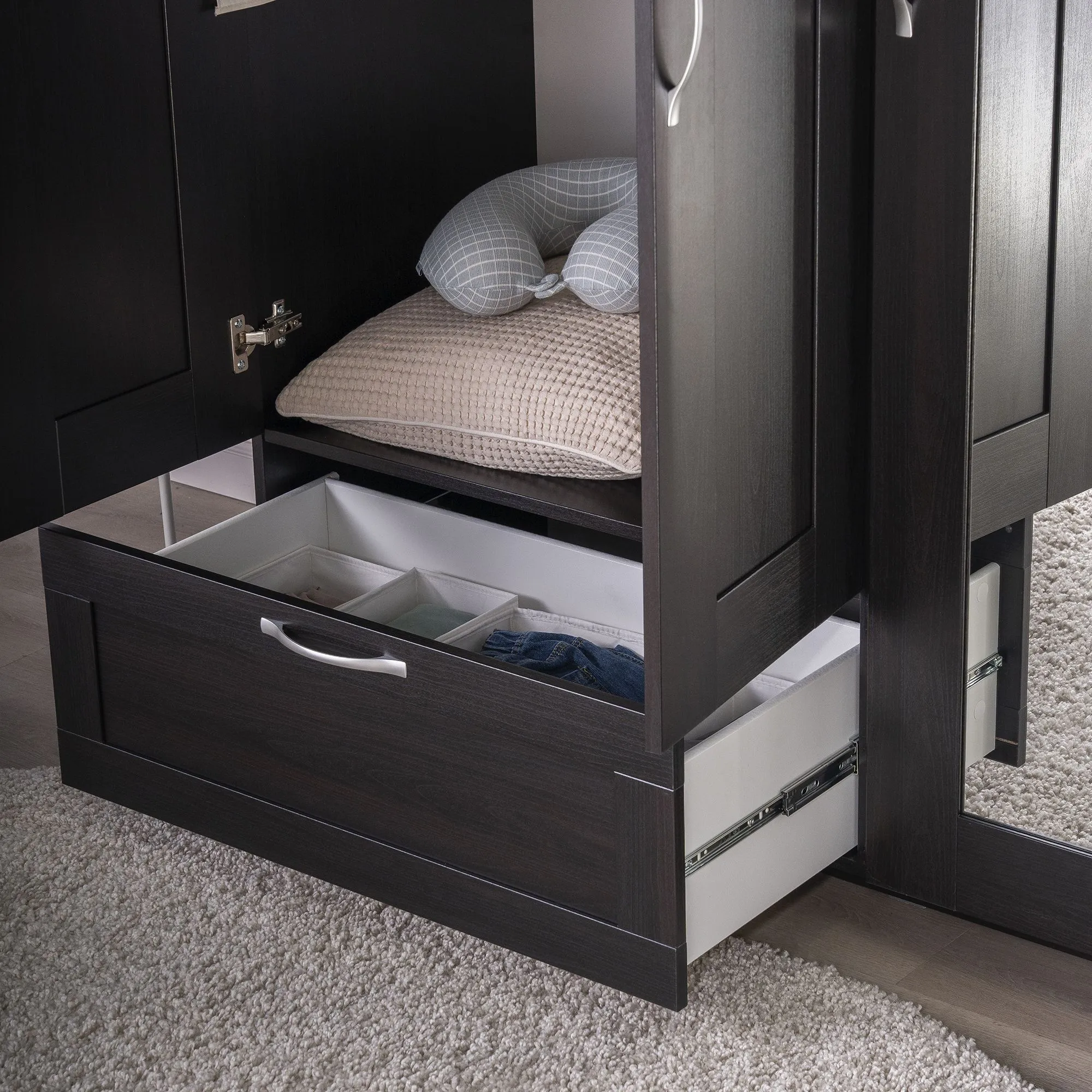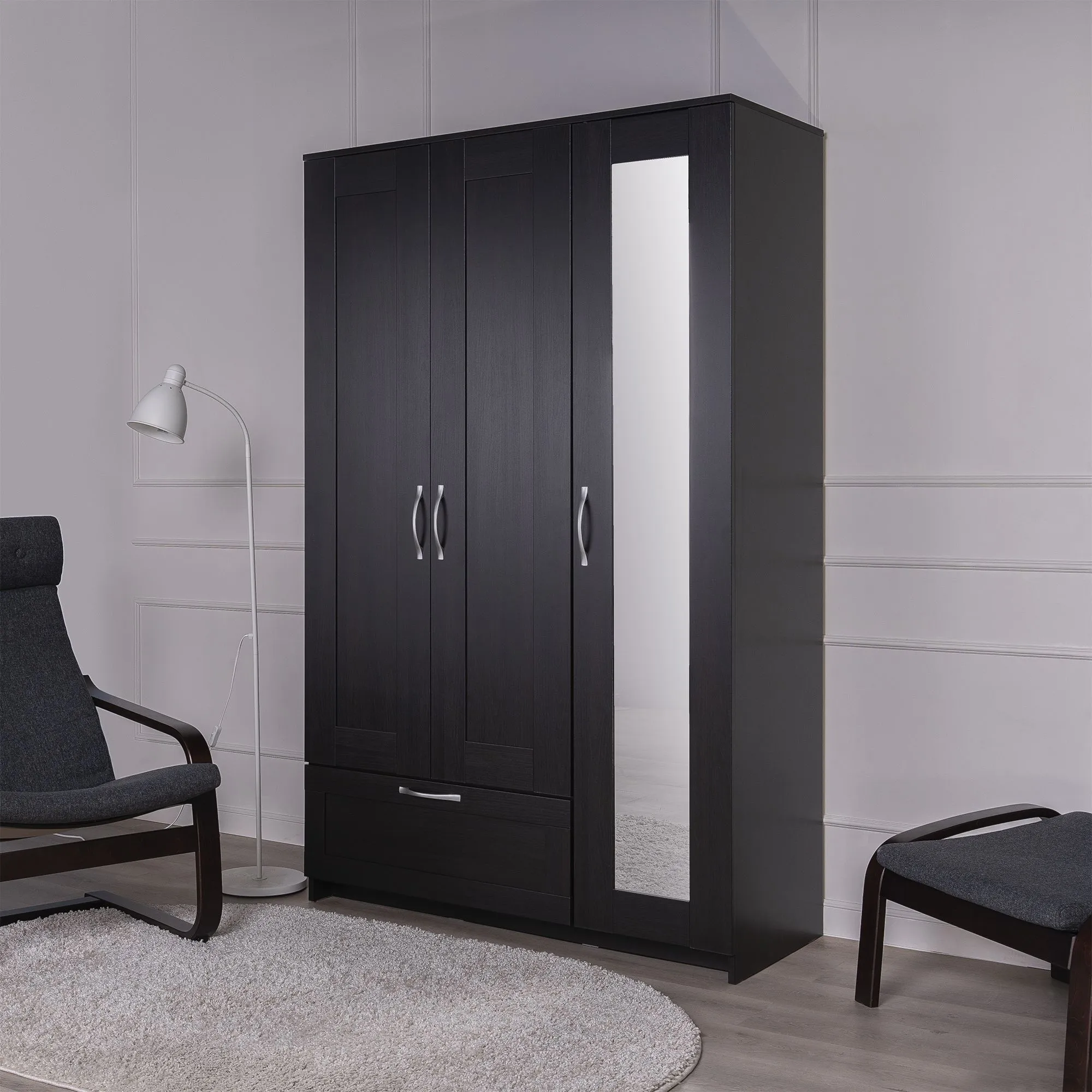 Шкаф СИРИУС комбинированный для одежды трехдверный, с выдвижным ящиком, 1171х502х1900, цвет Дуб Венге. Изготовлен из кашированного ДСП толщиной 16 мм. Крепится к стене. Гарантийный срок для жилых помещений 24 месяца, для общественных помещений - 18 месяцев.